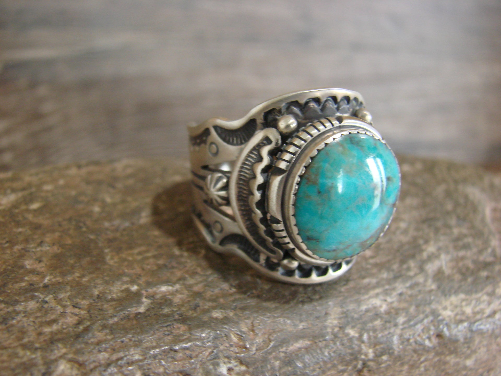 Native American Sterling Silver & Turquoise Ring - Lee - Size 13