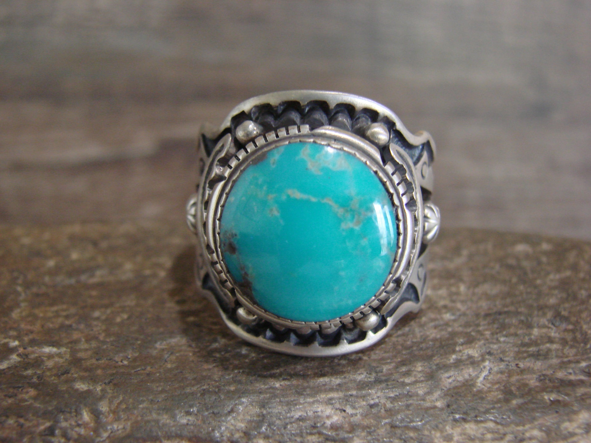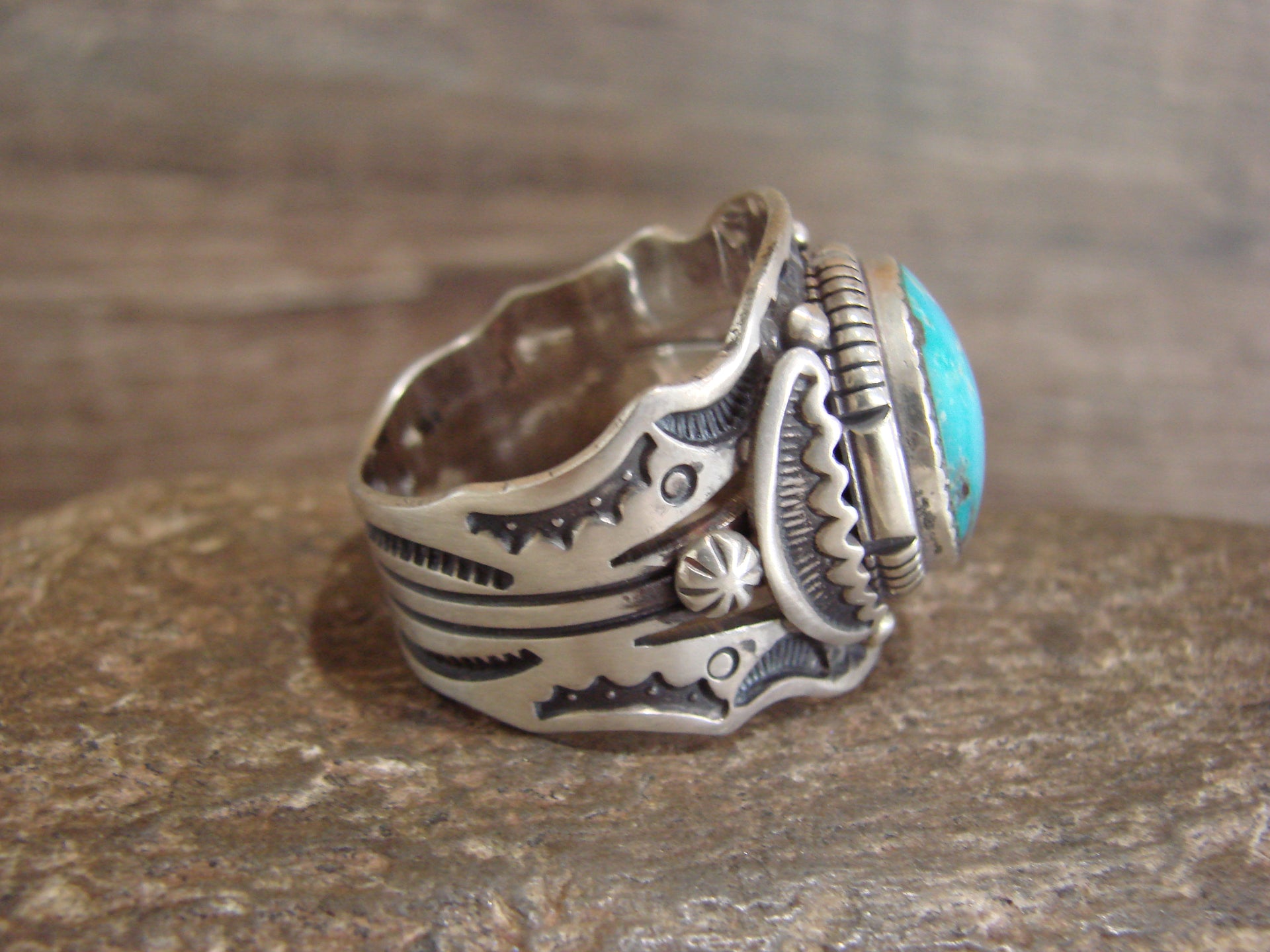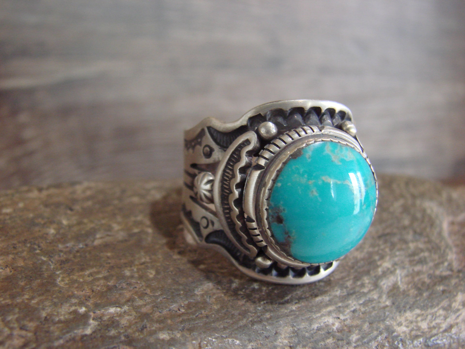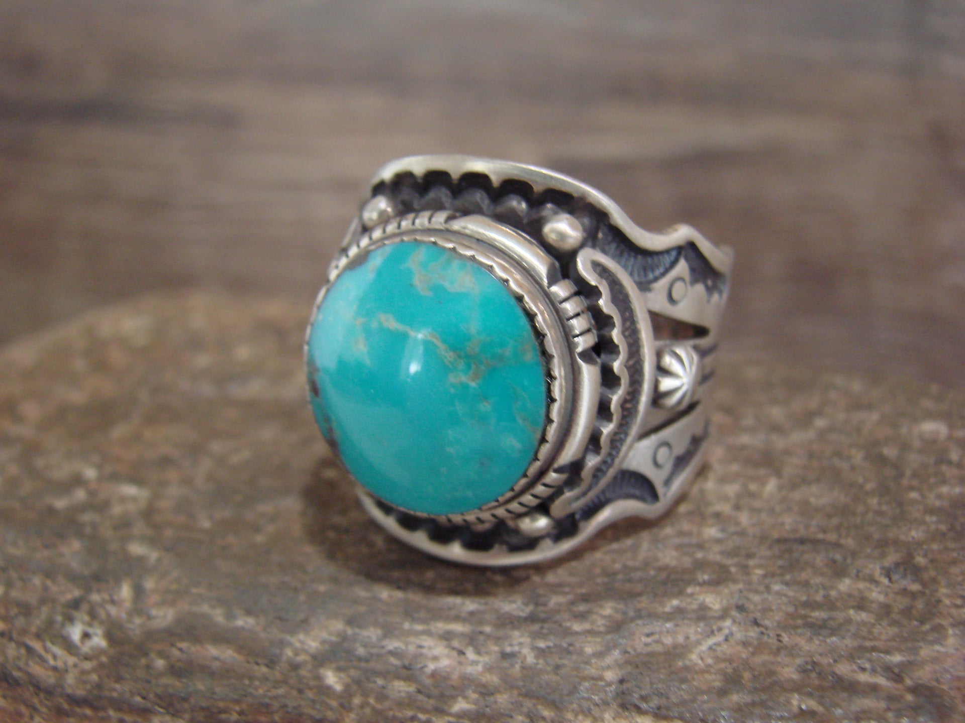 Native American Sterling Silver & Turquoise Ring - Lee - Size 14.5