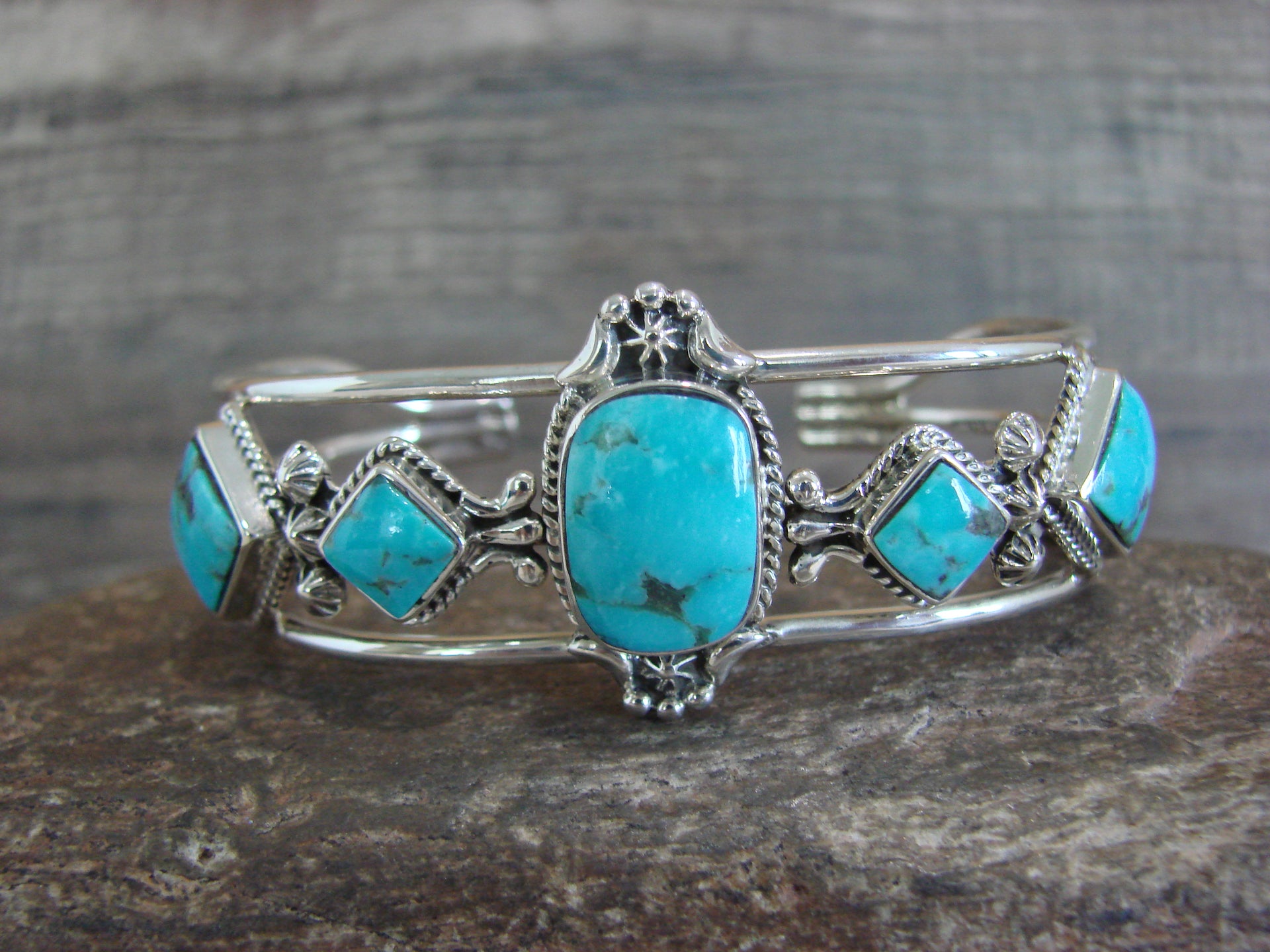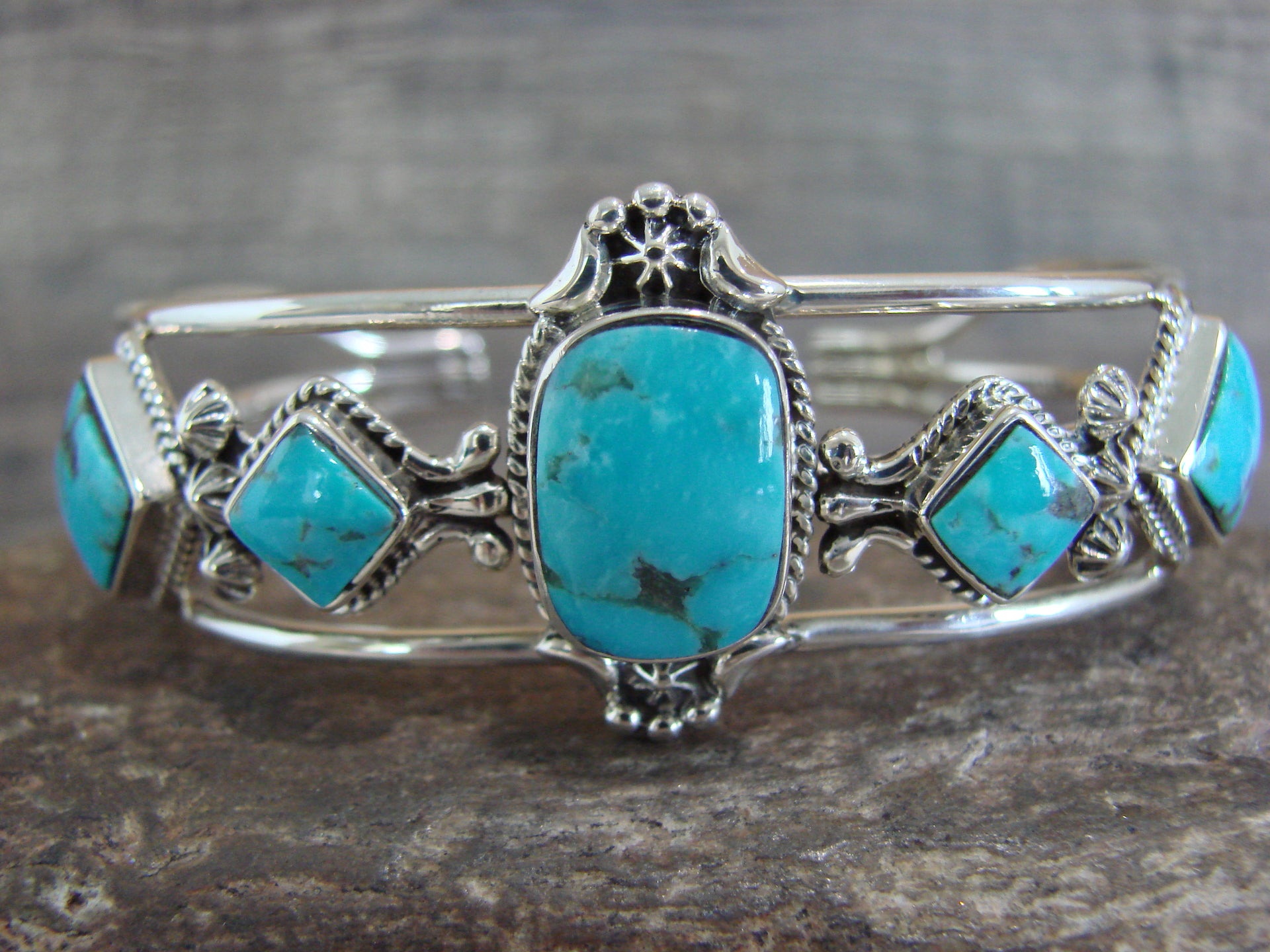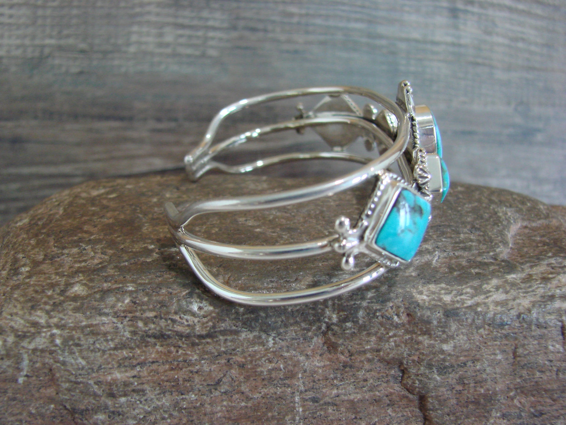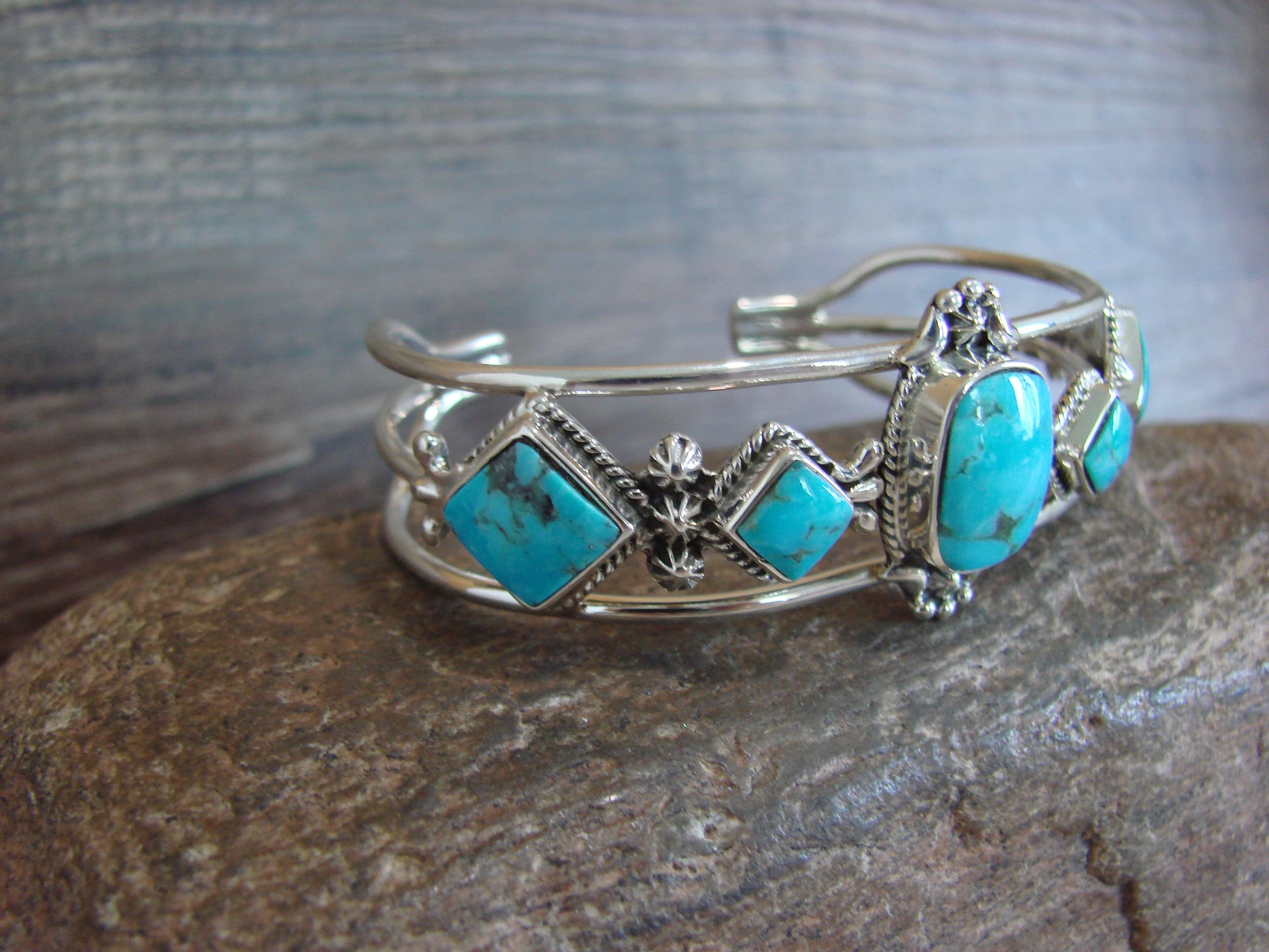 Native American Sterling Silver & Turquoise Row Bracelet by Smith