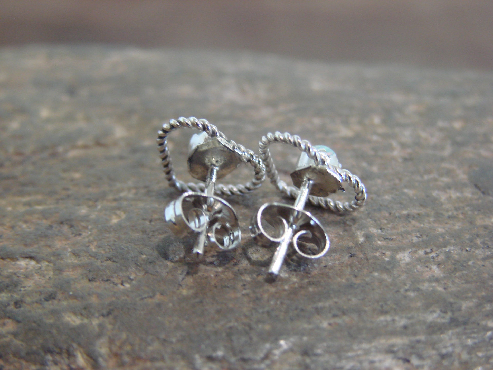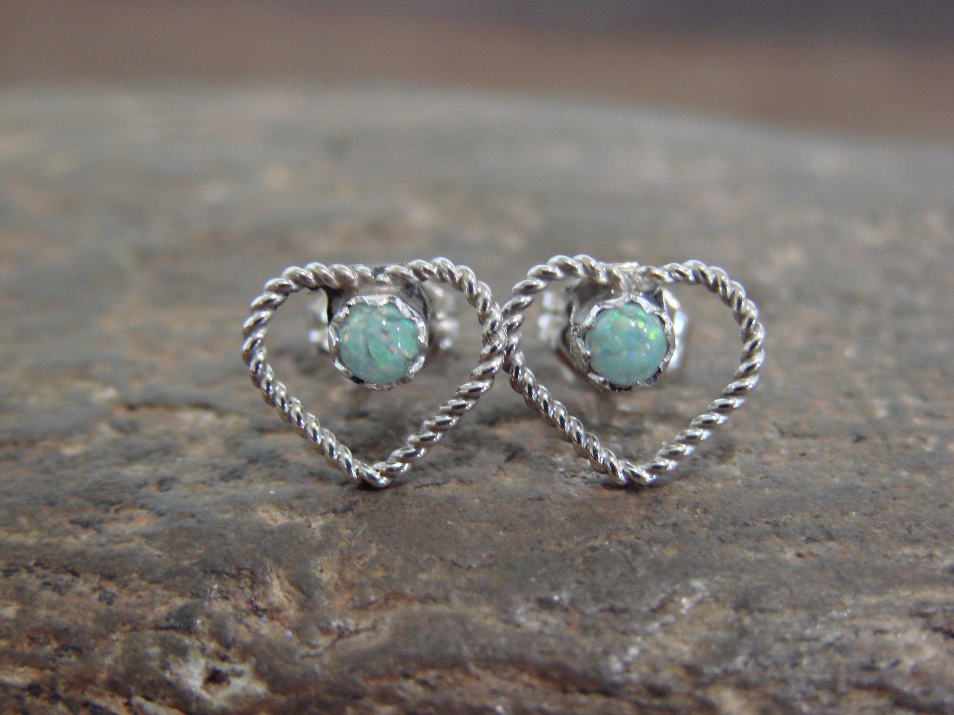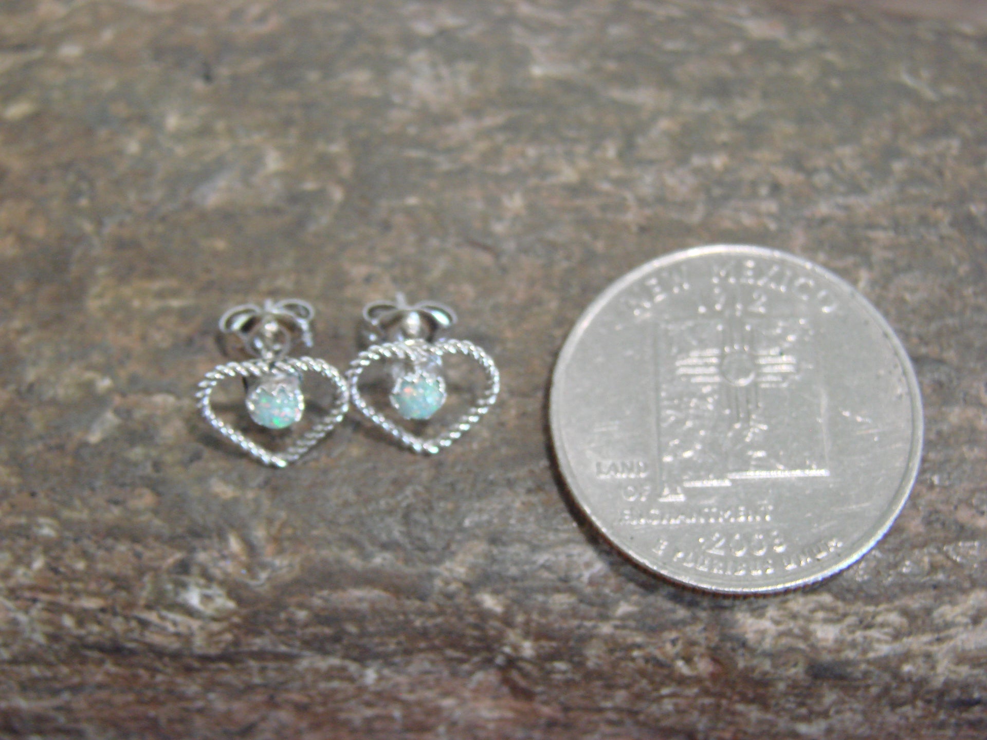 Native American Sterling Silver White Opal Heart Post Earrings - Pablito