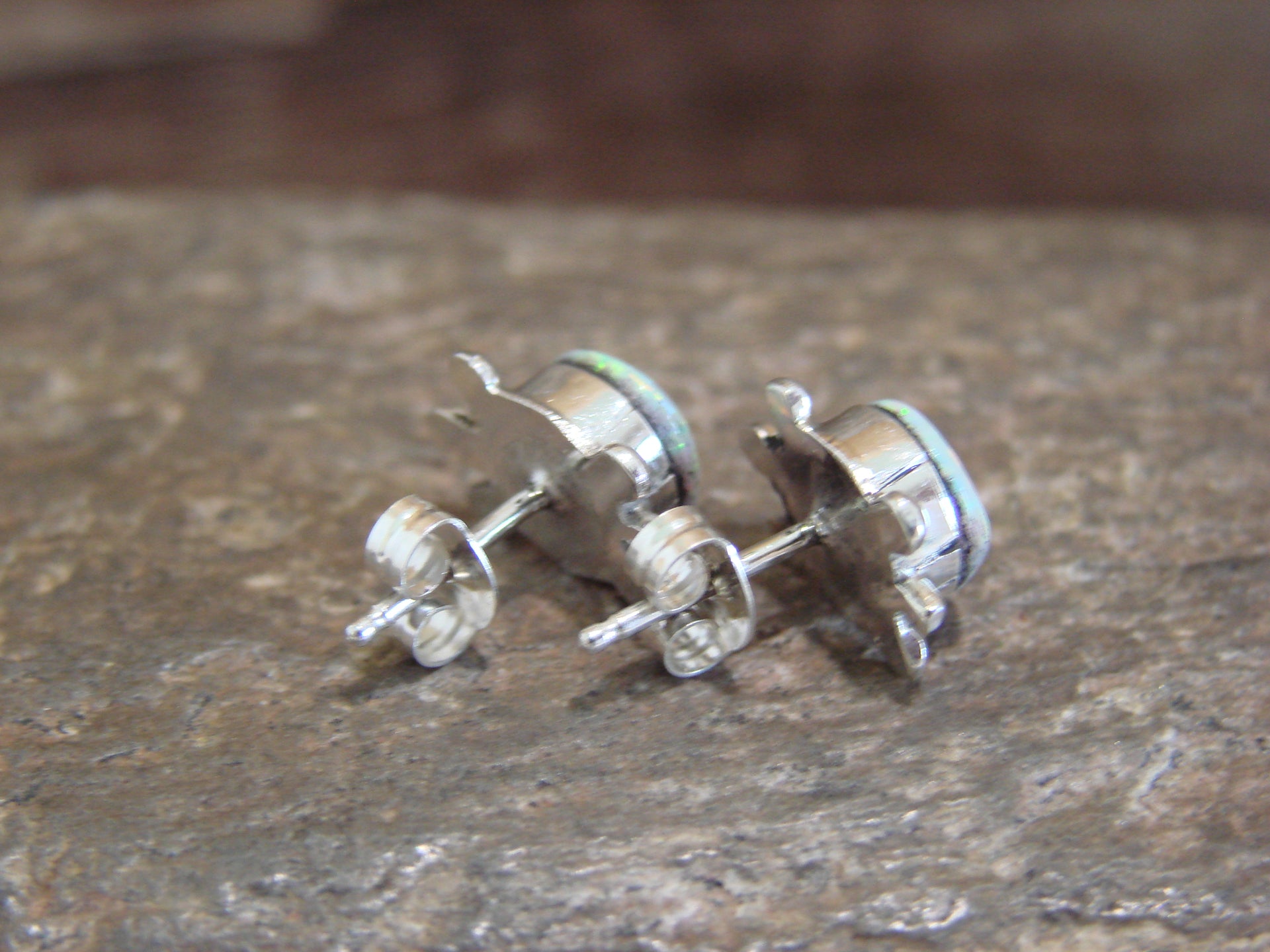 Native American Sterling Silver & White Opal Turtle Post Earrings by Siow