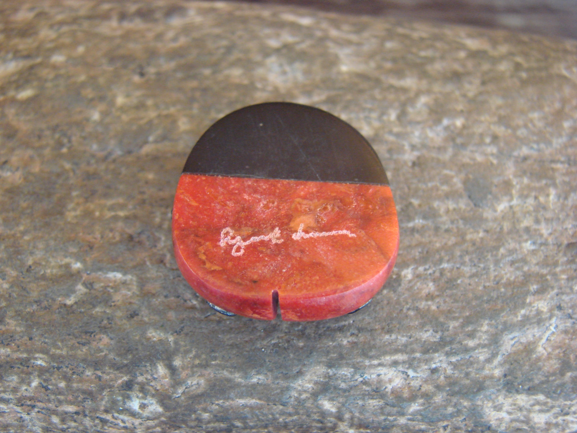 Native American Zuni Hand Carved Coral Ladybug Fetish by Lonasee