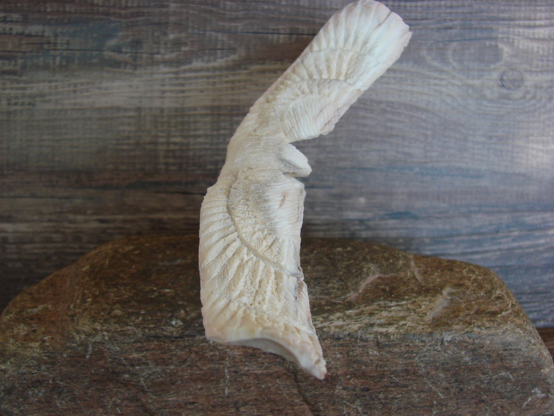 Authentic Native American Zuni Indian Hand Carved Eagle Fetish from the Zuni Pueblo in Western New Mexico. This Stunning Fetish is Hand Carved out of a beautiful piece of Antler. This is a unique and stunning piece! Handmade by the Zuni carver Lewis Malie. Signed on the bottom. Free Shipping included!