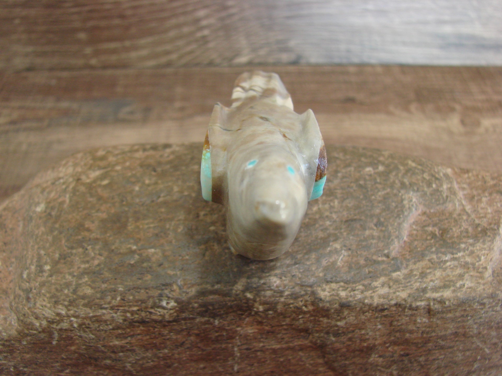 Genuine Native American Zuni Indian Hand Carved Bird Fetish from the Zuni Pueblo in Western New Mexico. This Stunning Fetish is Hand Carved out of a beautiful piece of Marble. Turquoise is used for both the eyes. This is a unique and stunning piece! Handmade by the Zuni carver Delvin Leekya. Signed on the bottom. Free Shipping included!