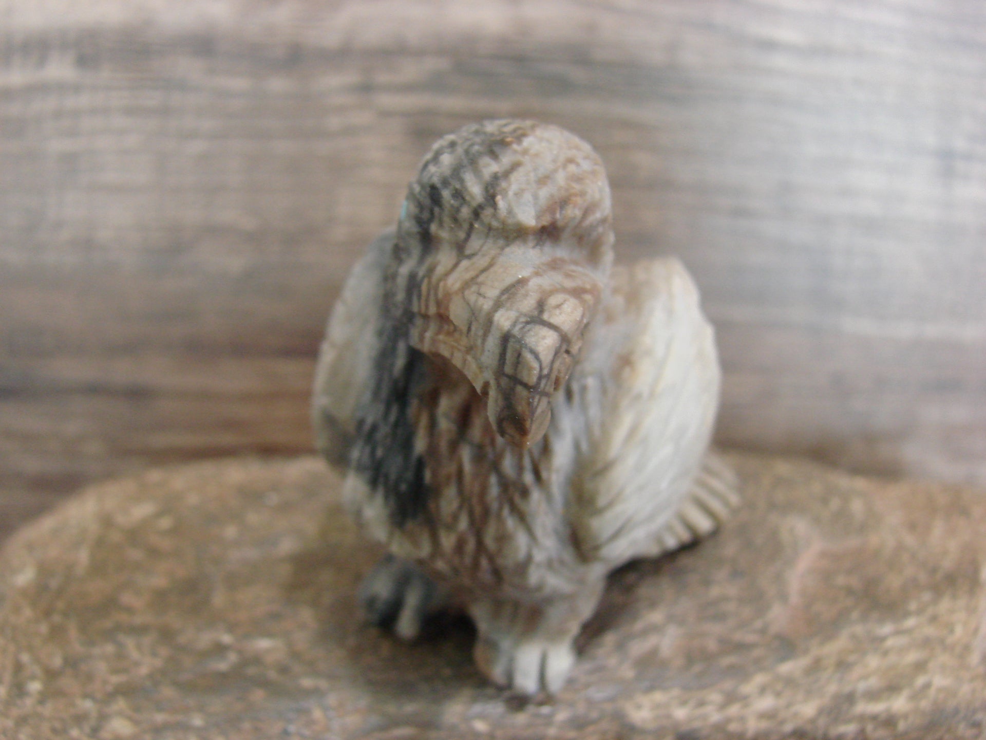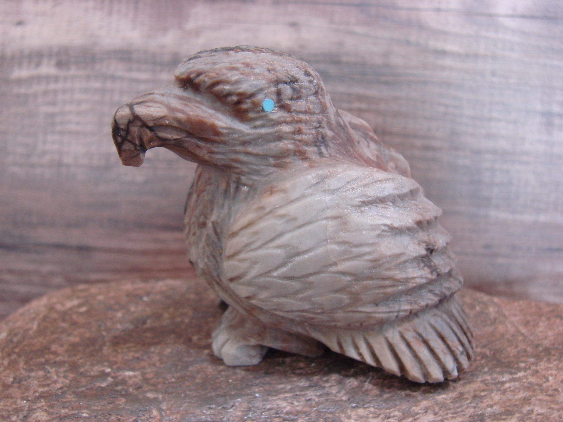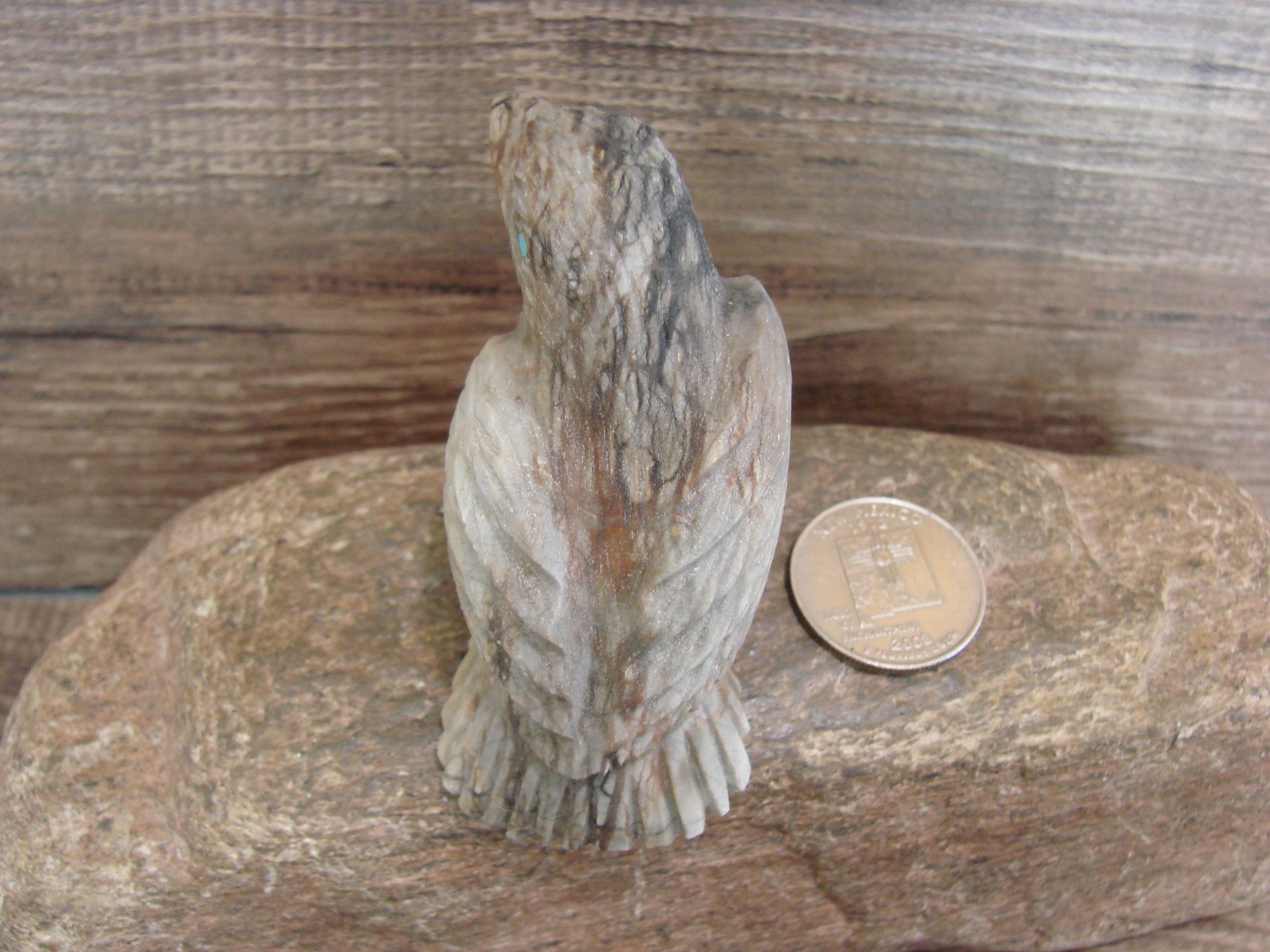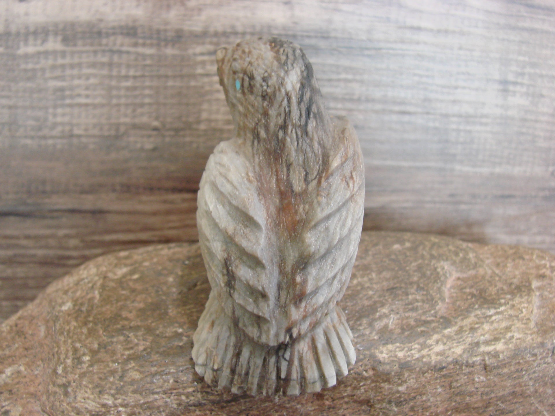 Native American Zuni Indian Hand Carved Eagle Fetish from the Zuni Pueblo in Western New Mexico. This Stunning Fetish is Hand Carved out of a beautiful piece of Picasso Marble. Turquoise is used for both the eyes. This is a unique and stunning piece! Handmade by the Zuni carver Tony Mackel. Signed on the bottom. Free Shipping included!