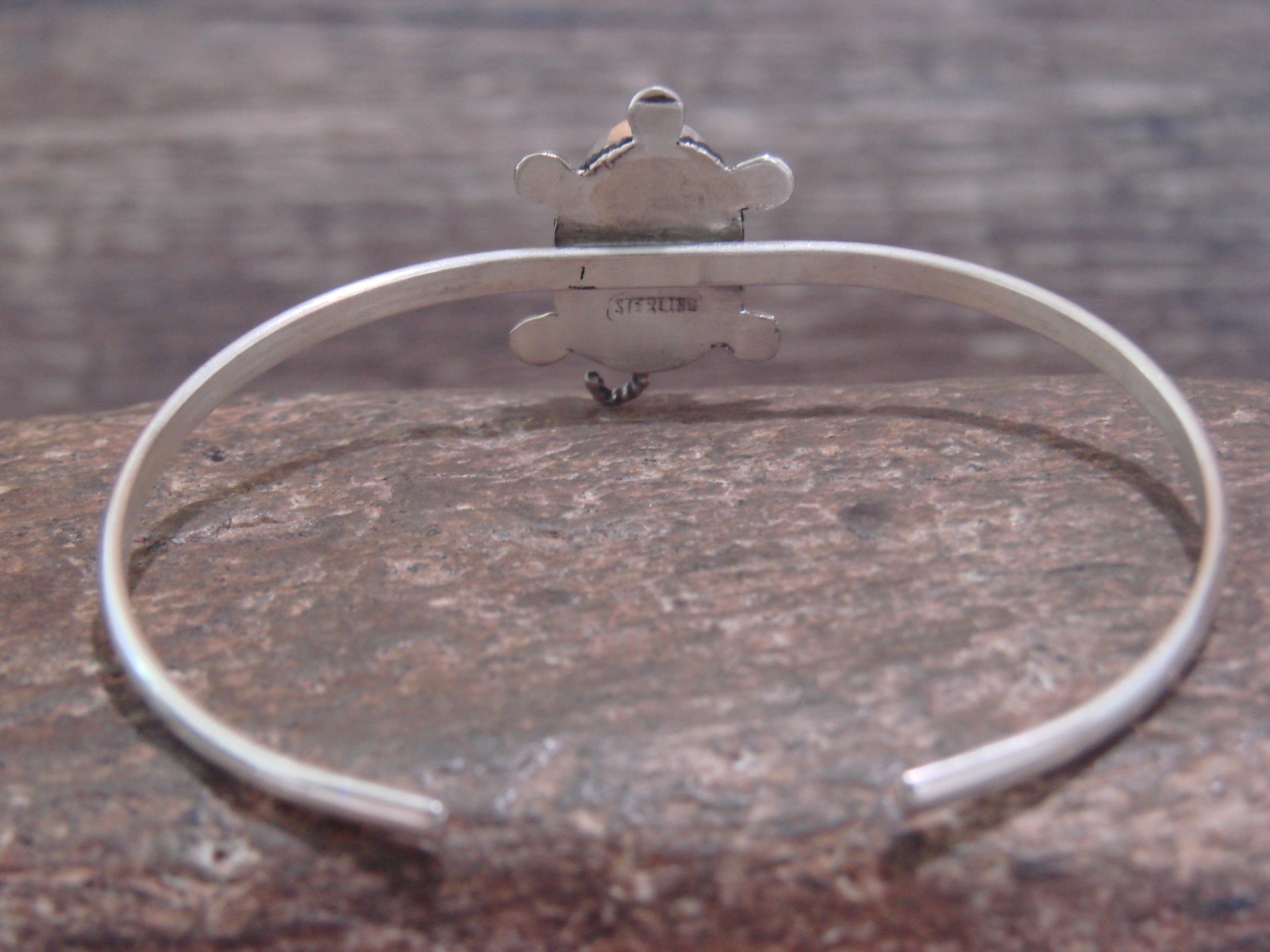 Genuine Native American Zuni Indian Sterling Silver & Green Opal Turtle Bracelet from Western New Mexico. This Bracelet feature a lab Opal stone beautifully inlayed into a crown sterling silver Turtle setting. This bracelet is Stunning! Zuni Indian hand made by Kalana Hustito. Stamped "Sterling" on the back. Free gift box and shipping included!
