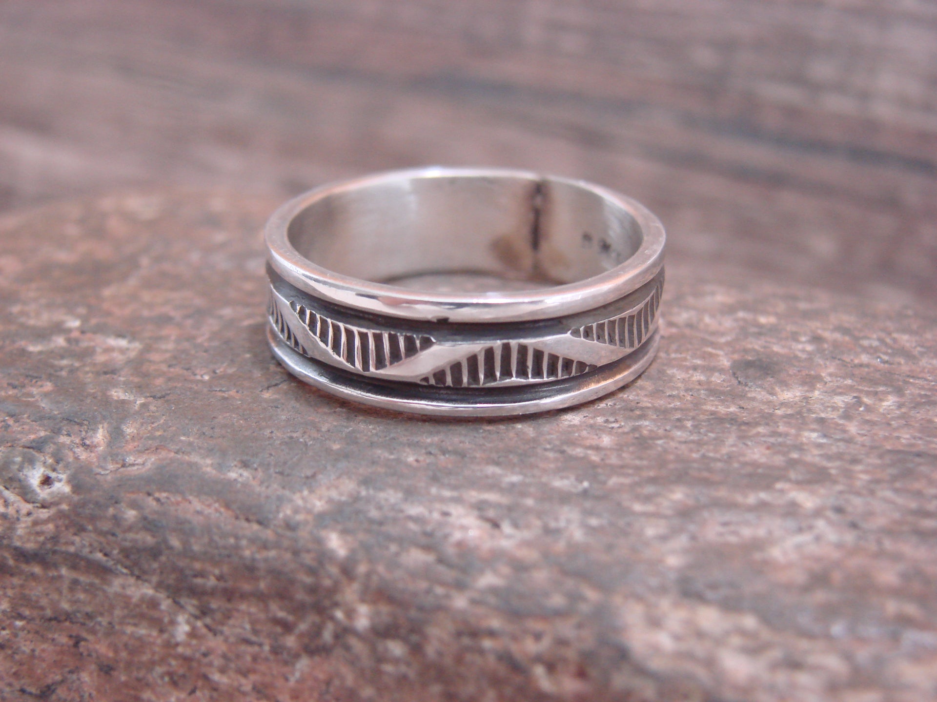 Navajo Hand Stamped Sterling Silver Ring Band - Bruce Morgan - Size 11