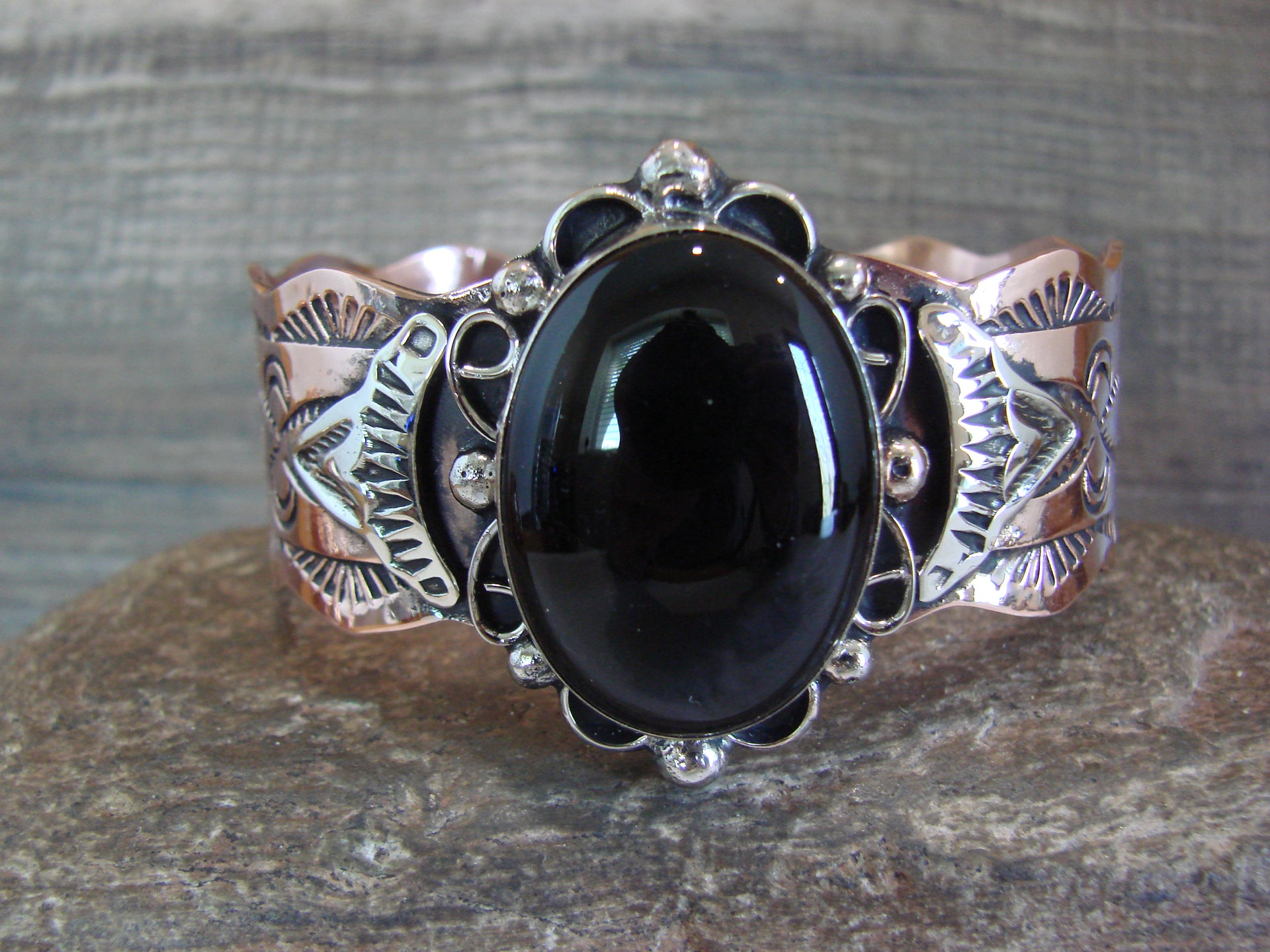Navajo Indian Copper & Onyx Bracelet by Cleveland
