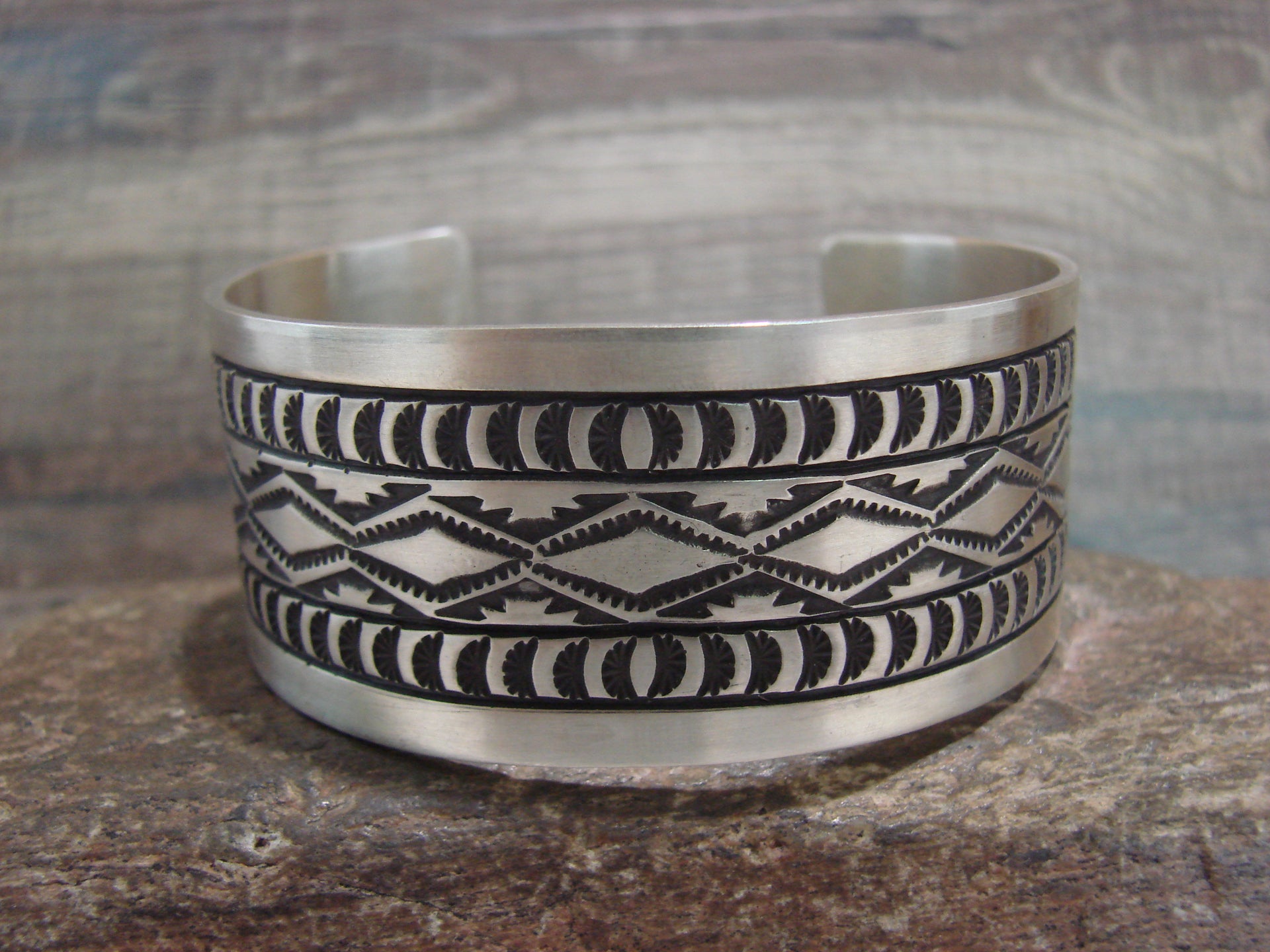 Navajo Indian Hand Stamped Sterling Silver Cuff Bracelet Signed RE