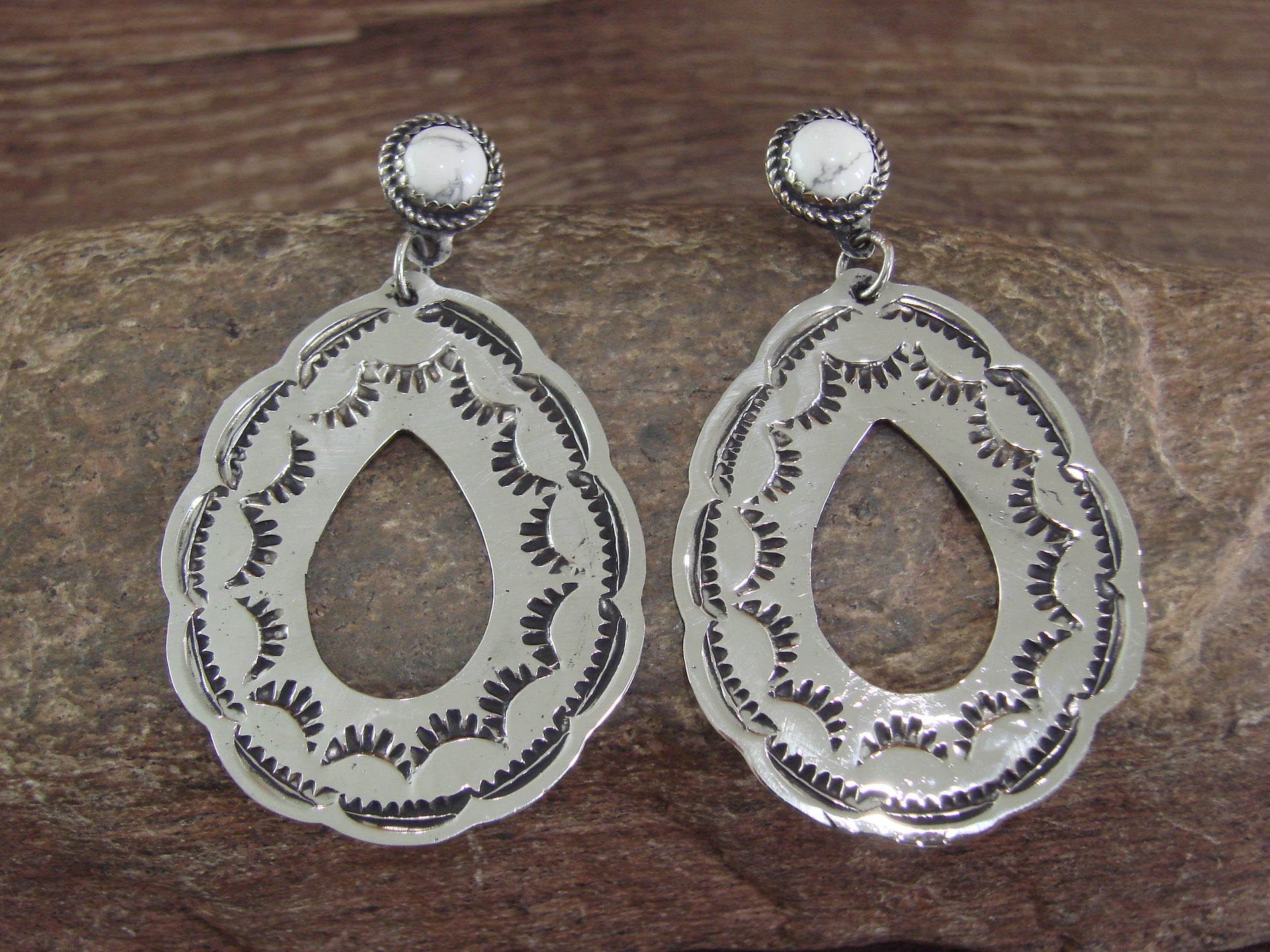 Navajo Indian Nickel Silver & Howlite Dangle Post Earrings - Cleveland