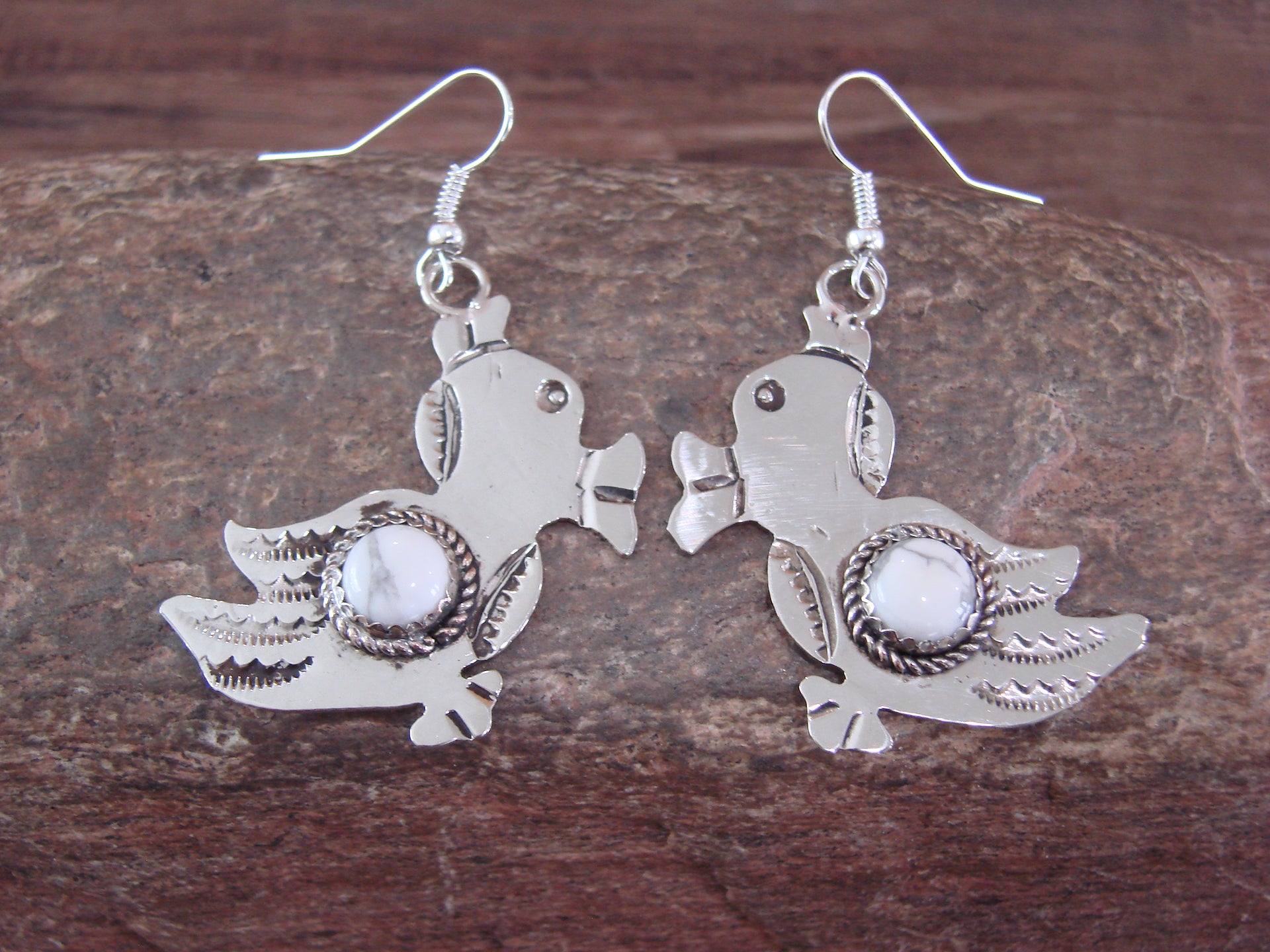 Navajo Indian Nickel Silver & Howlite Duck Dangle Earrings - Cleveland