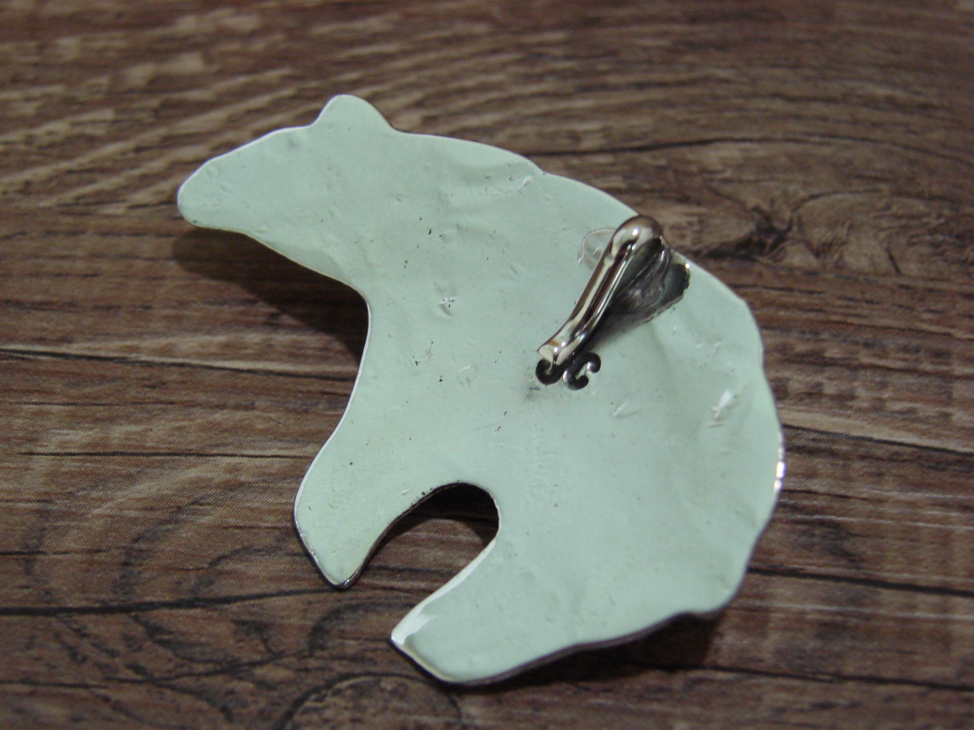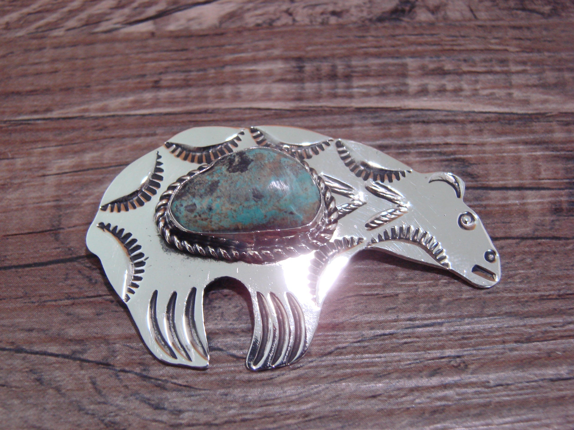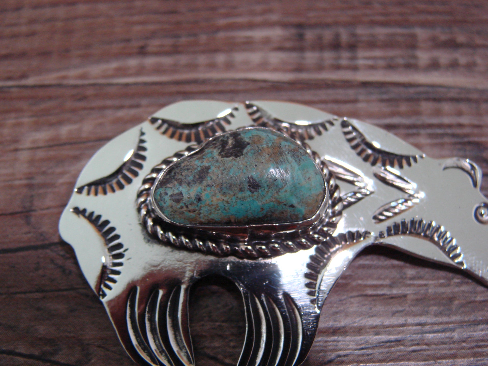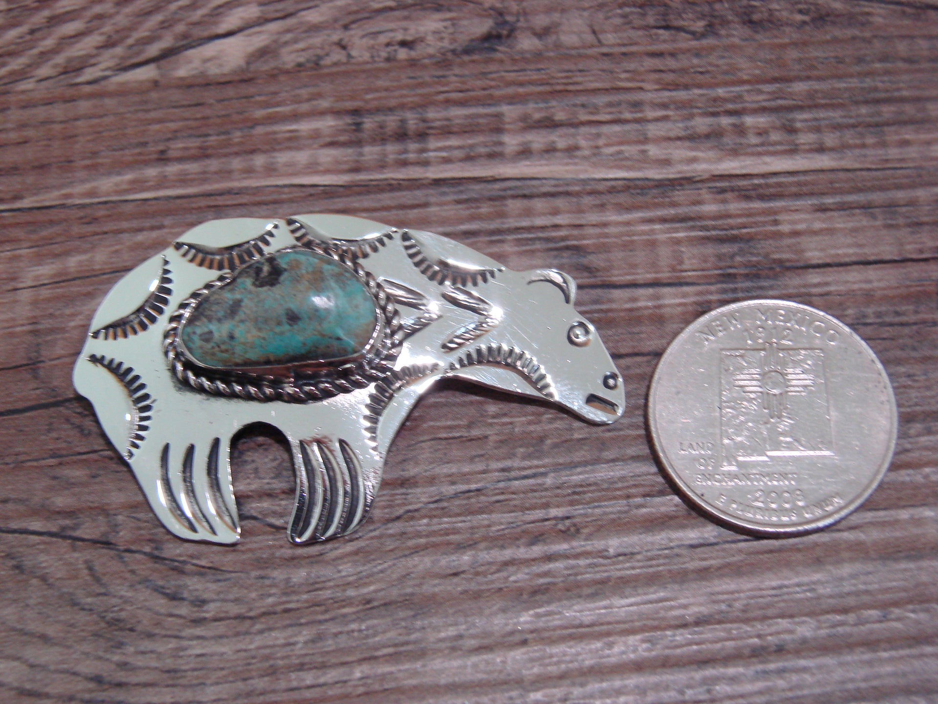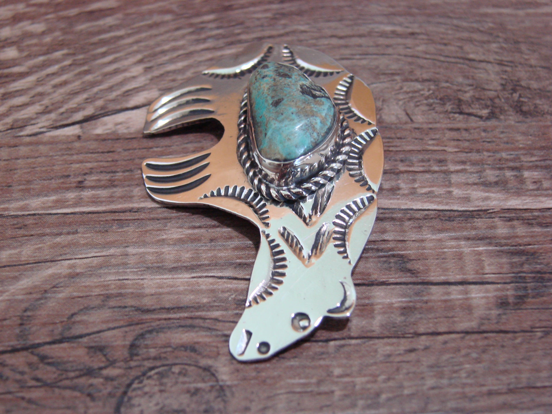 Navajo Indian Nickel Silver & Turquoise Bear Pendant - Cleveland