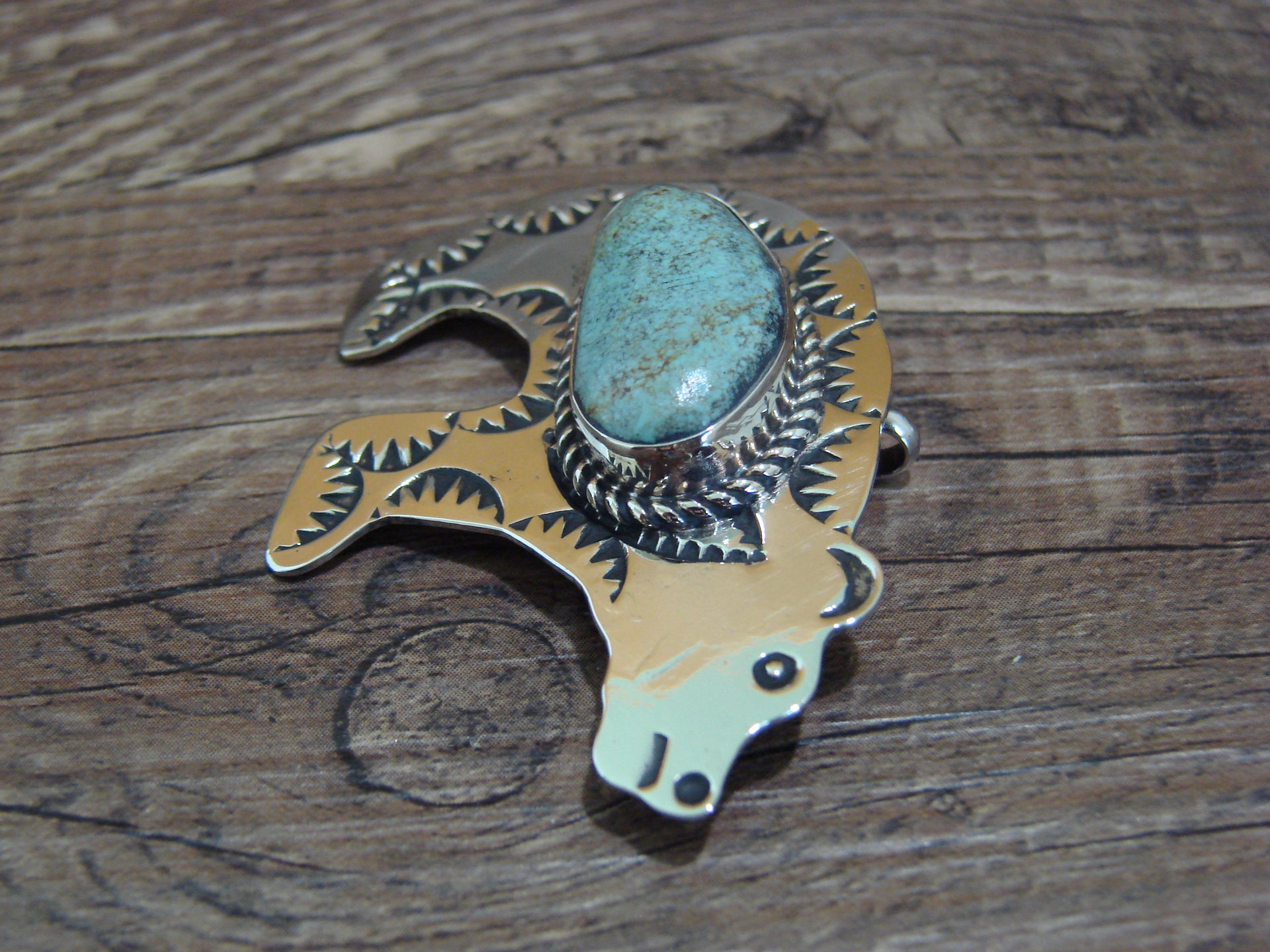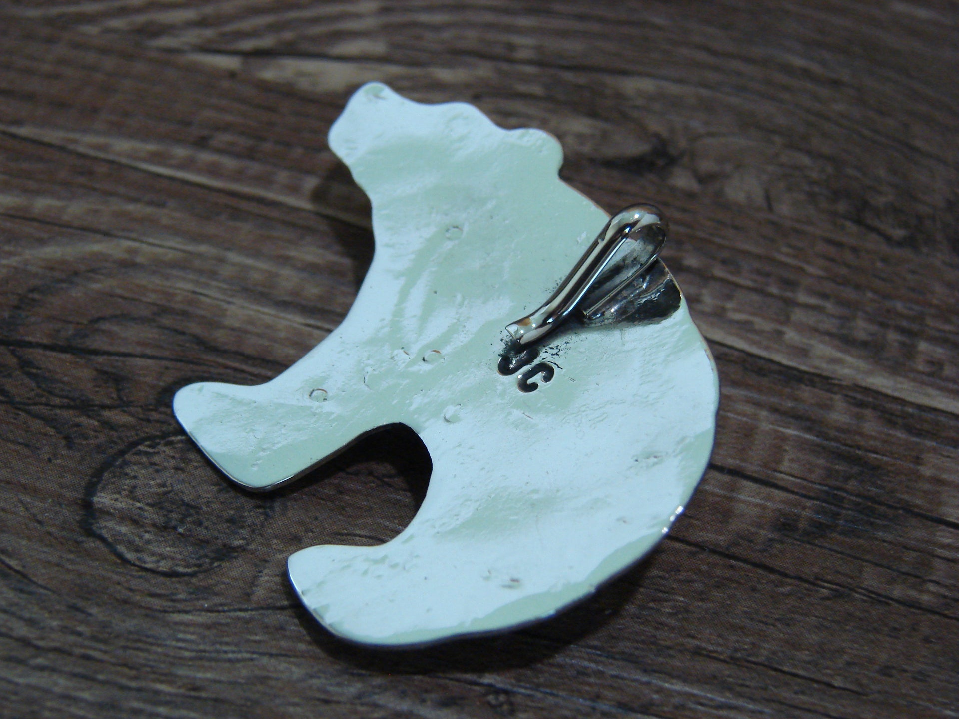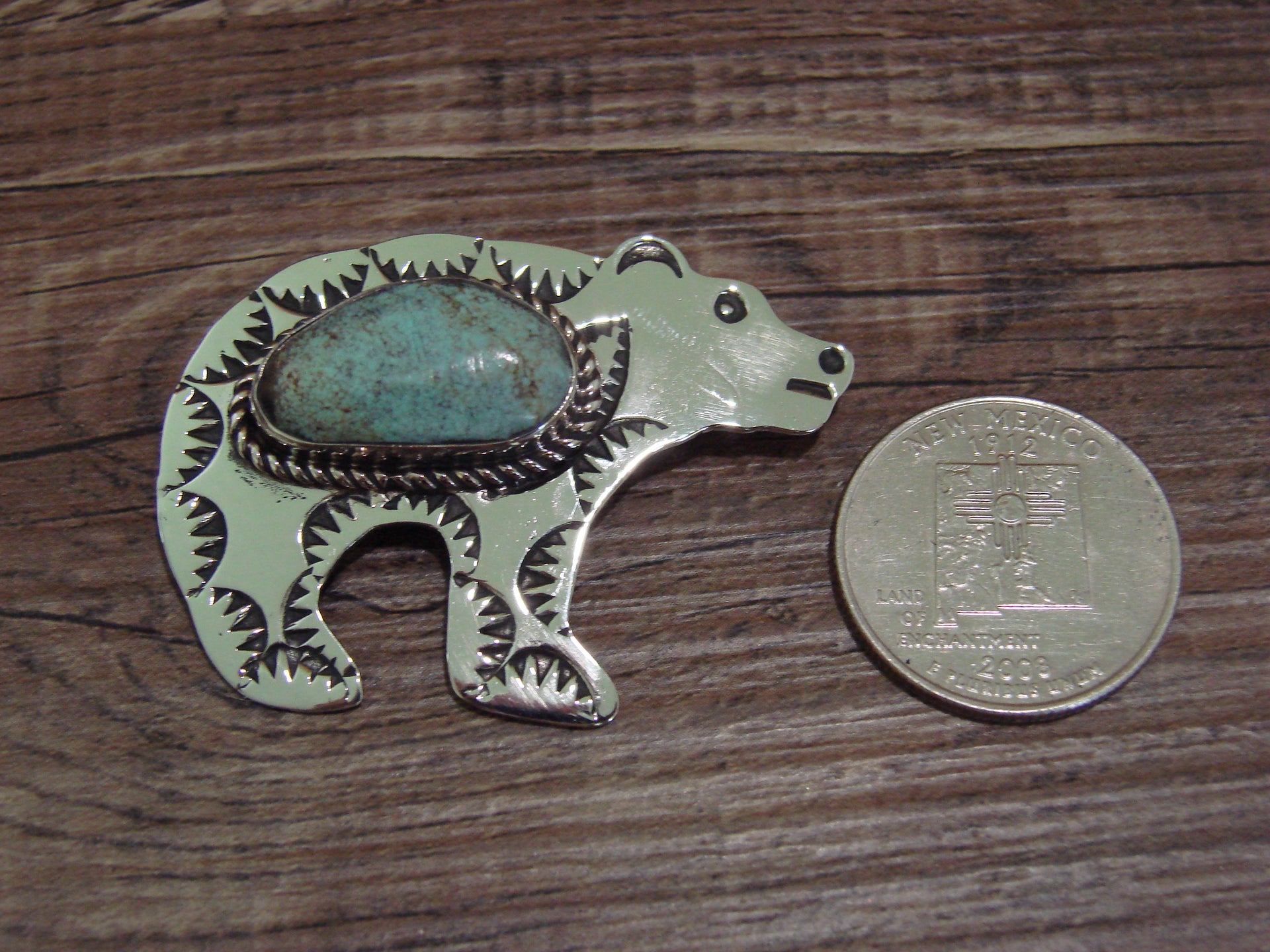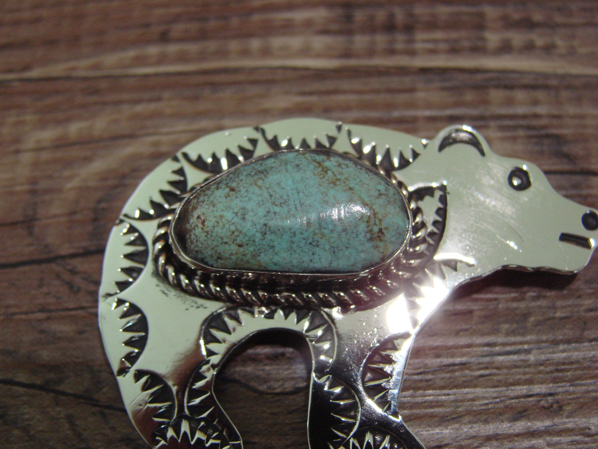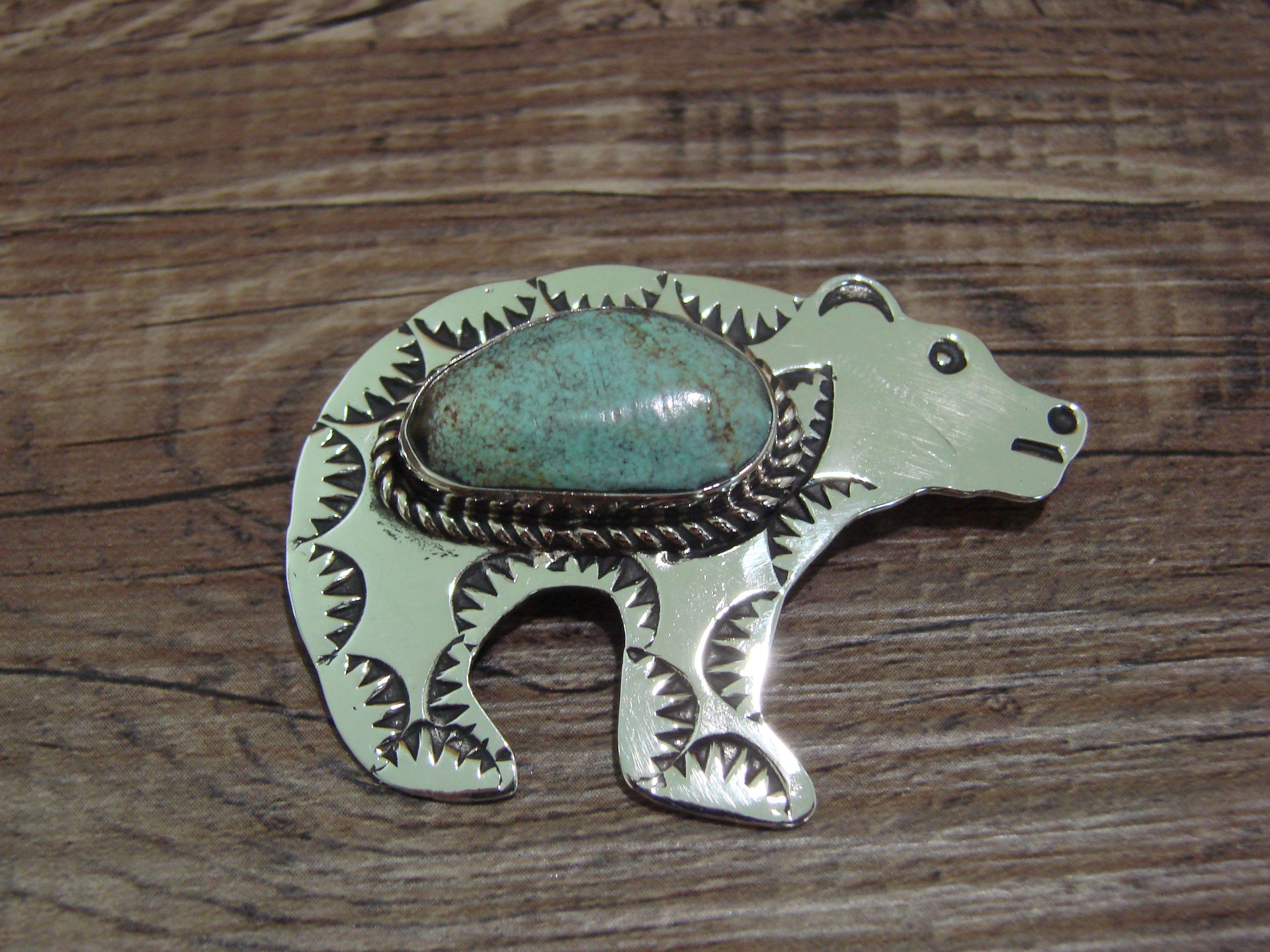 Navajo Indian Nickel Silver & Turquoise Bear Pendant - Cleveland