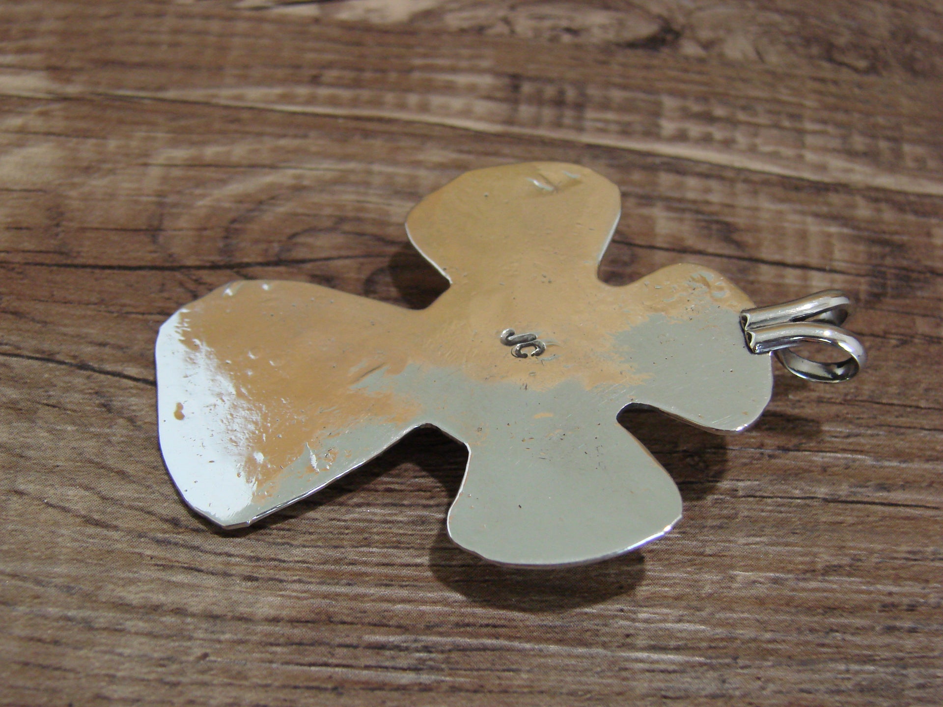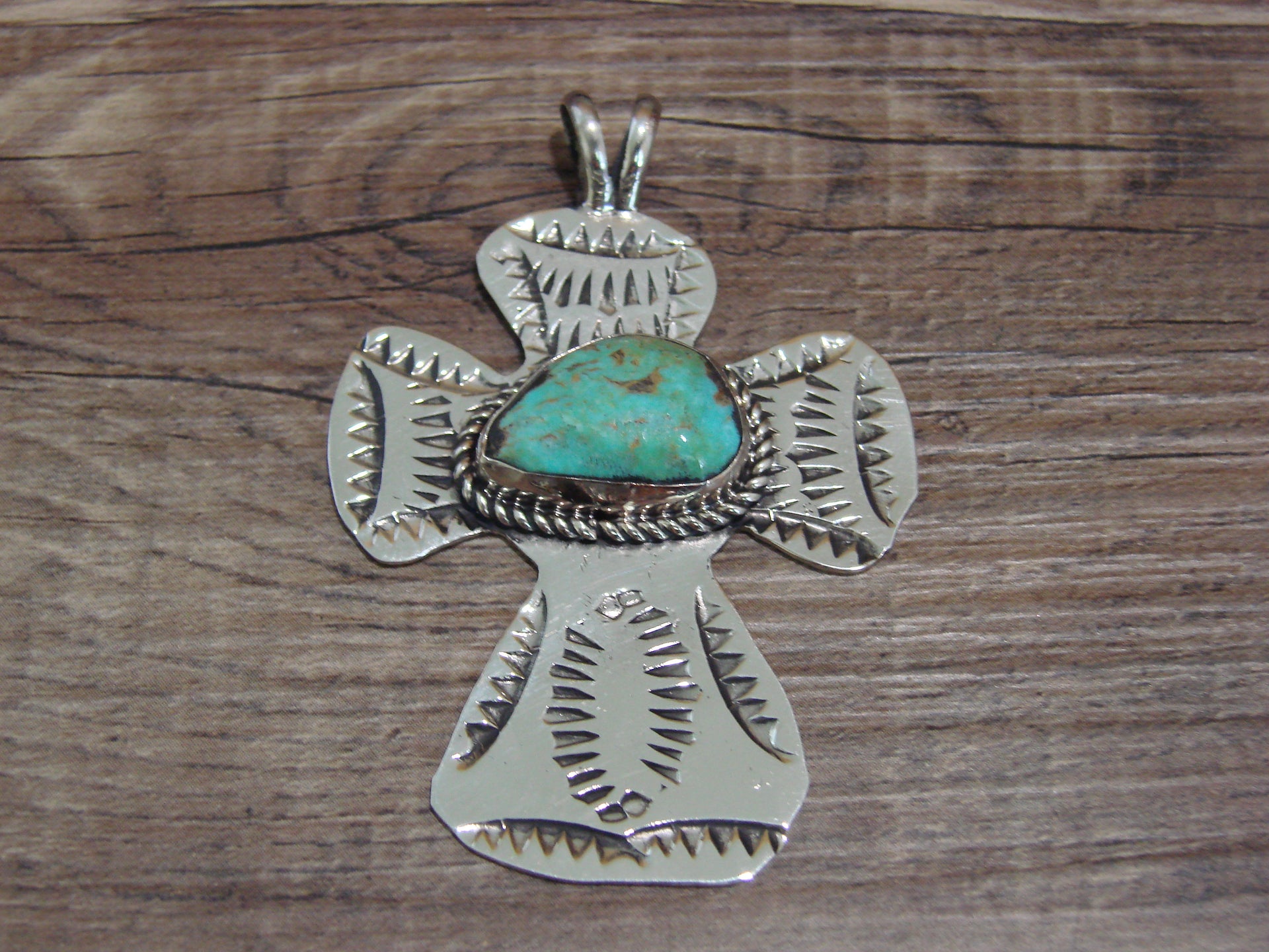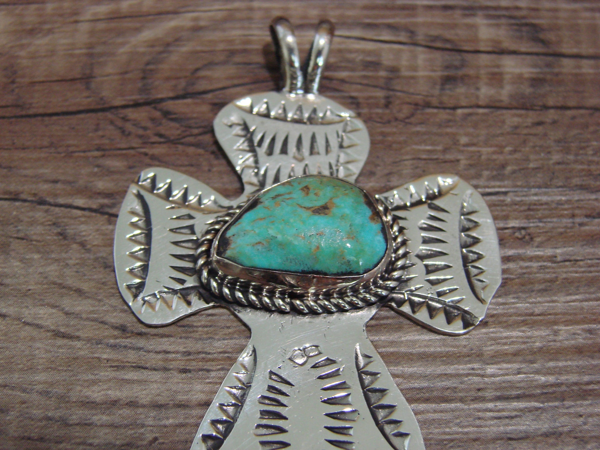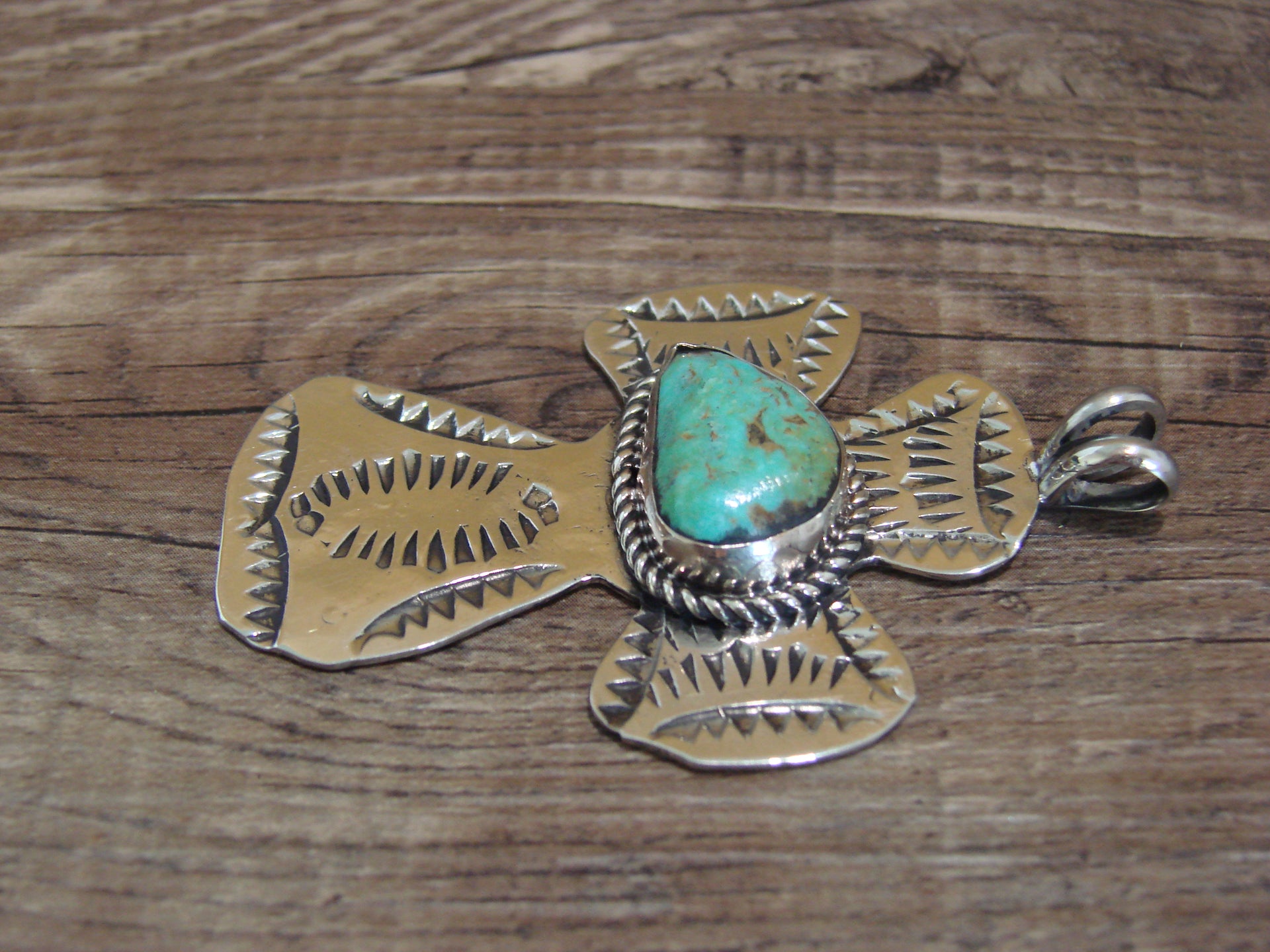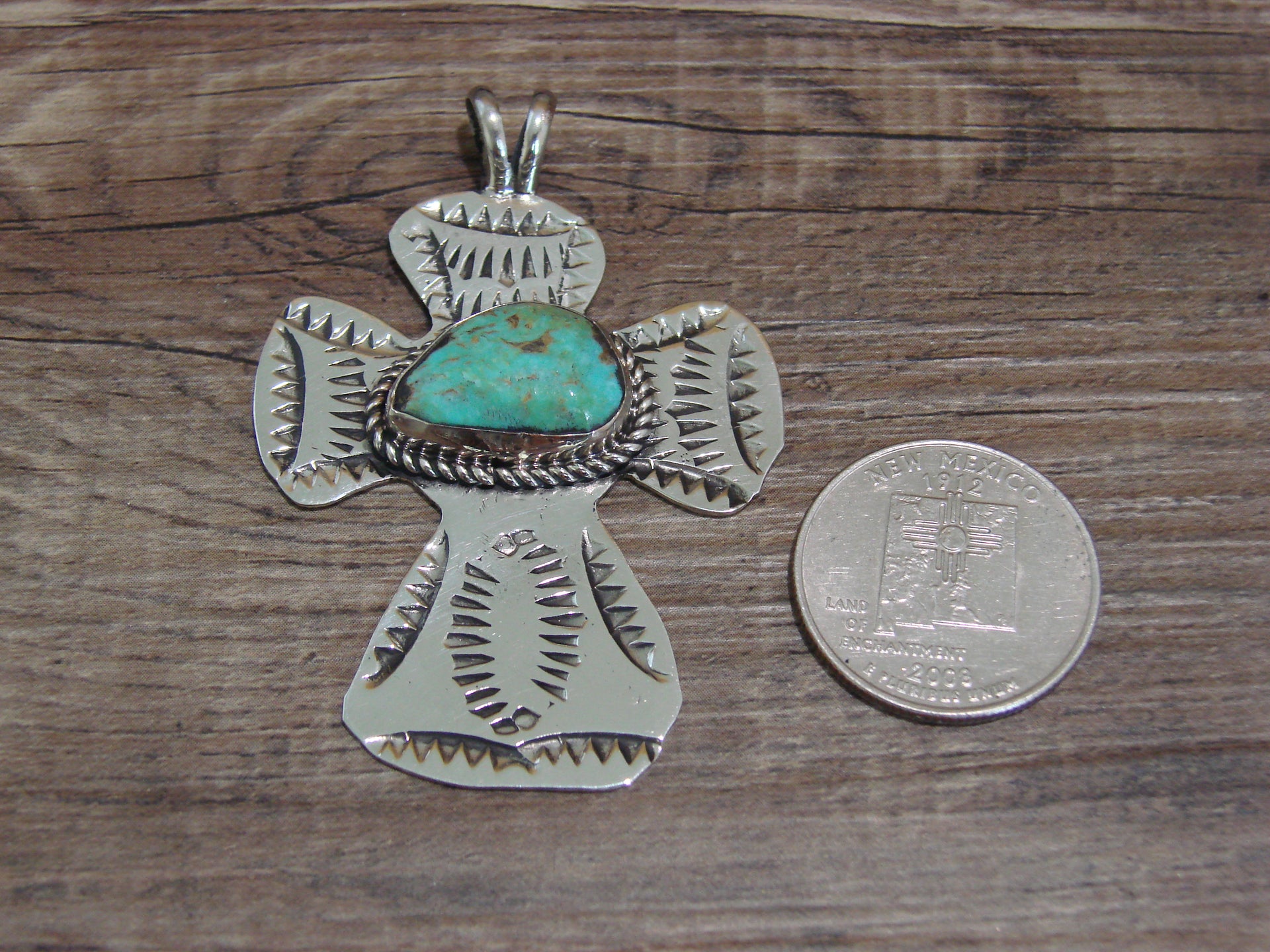 Navajo Indian Nickel Silver & Turquoise Cross Pendant - Cleveland