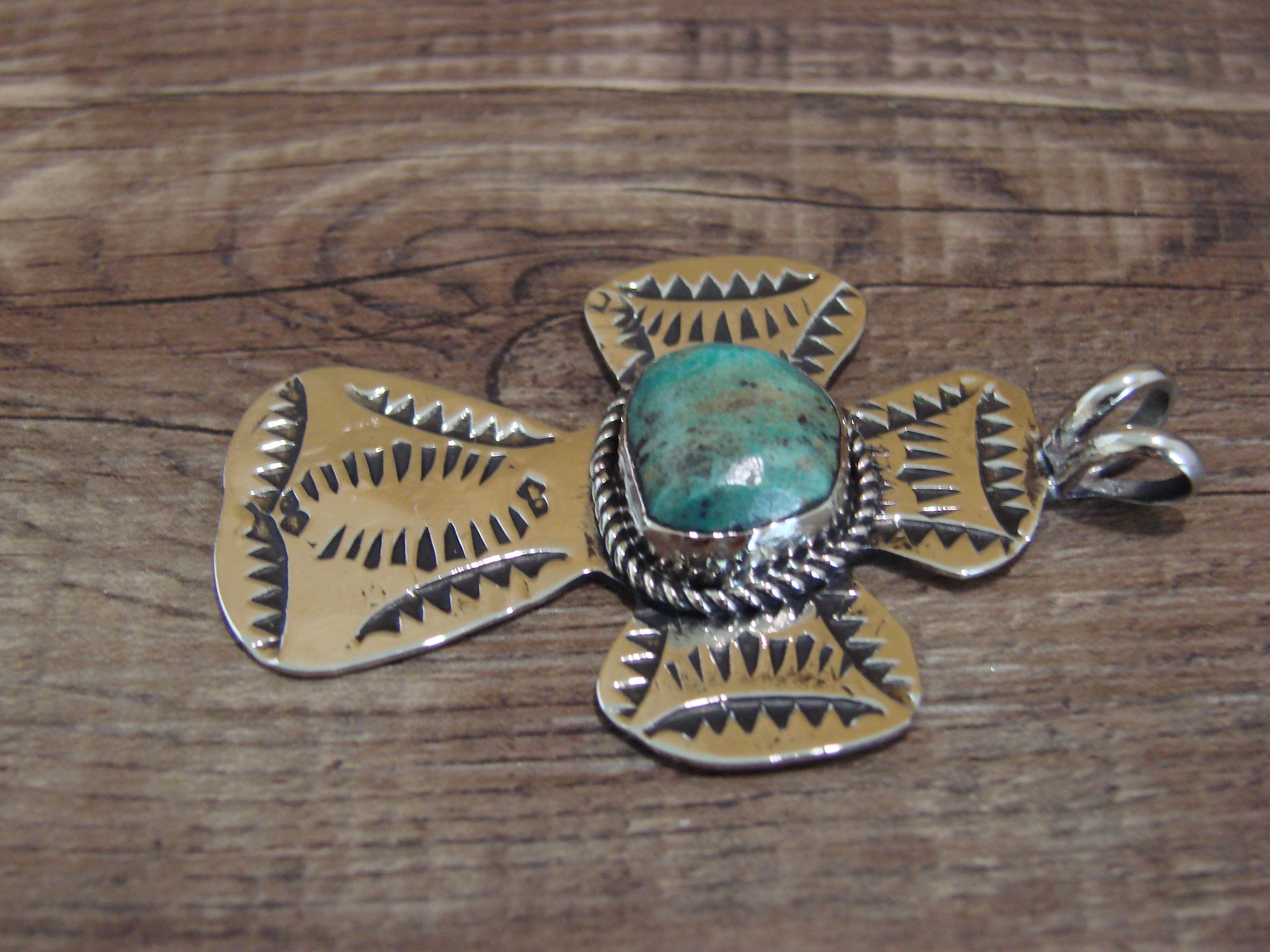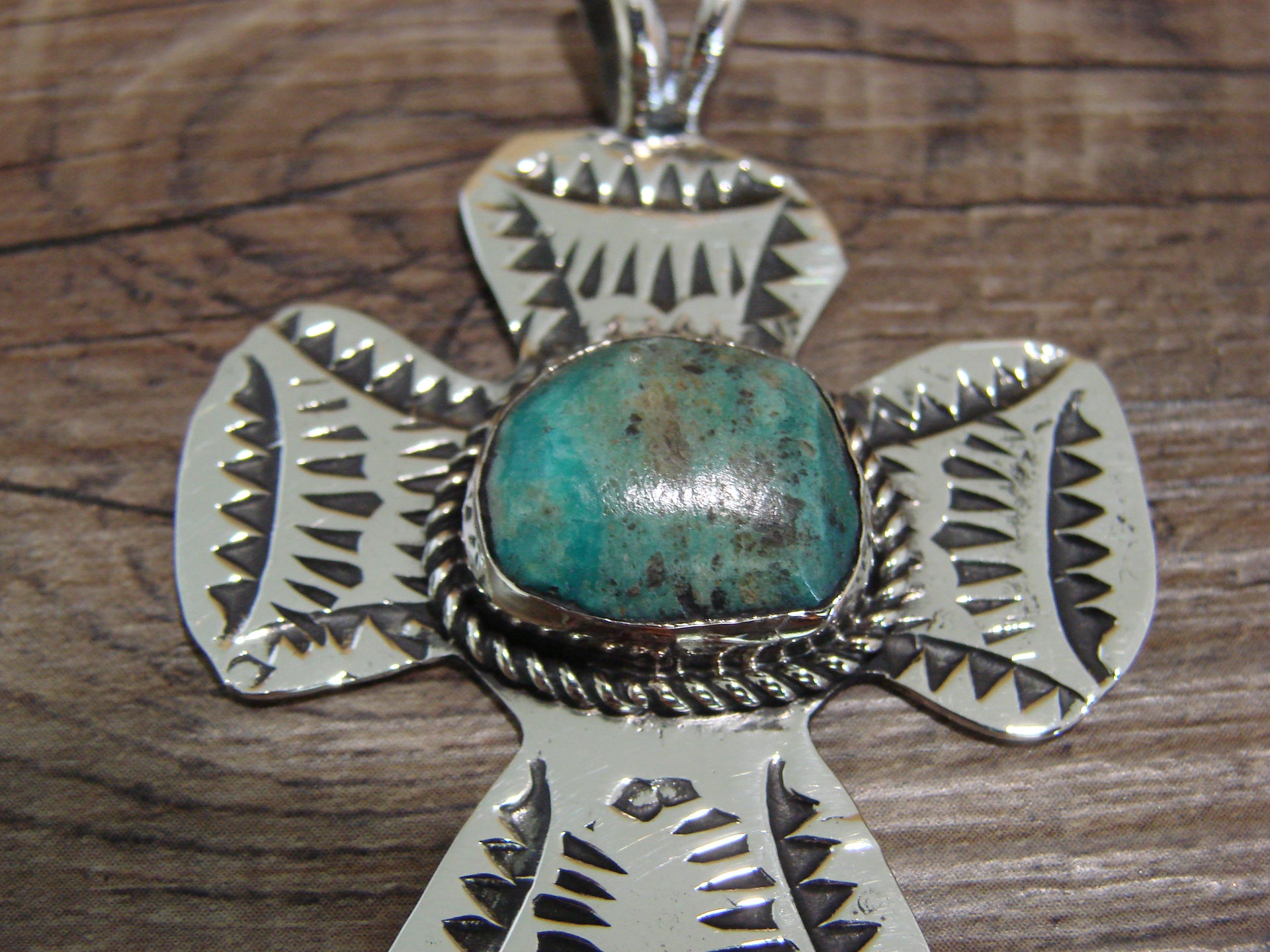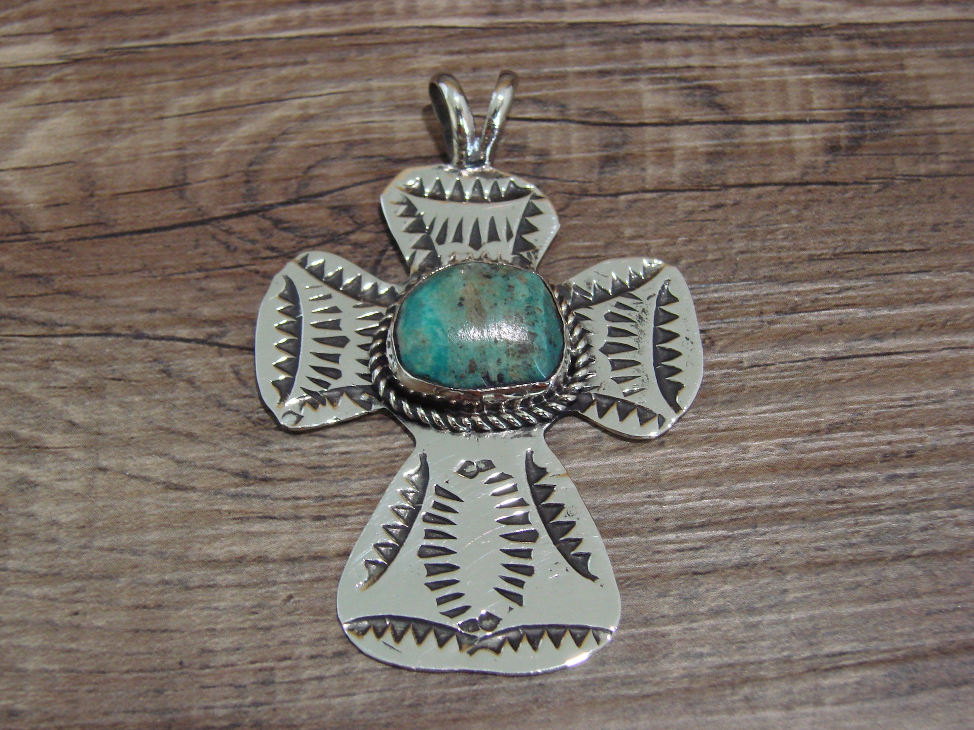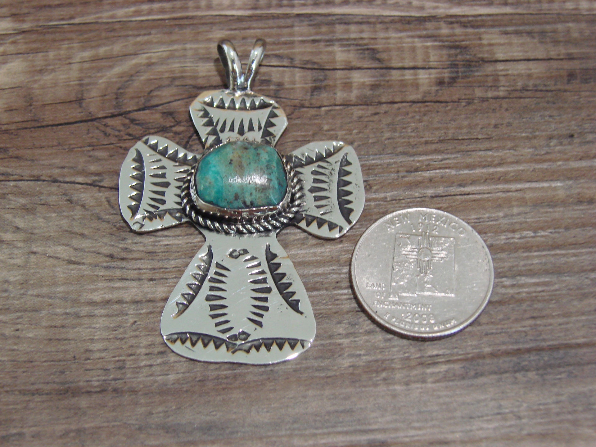 Navajo Indian Nickel Silver & Turquoise Cross Pendant - Cleveland