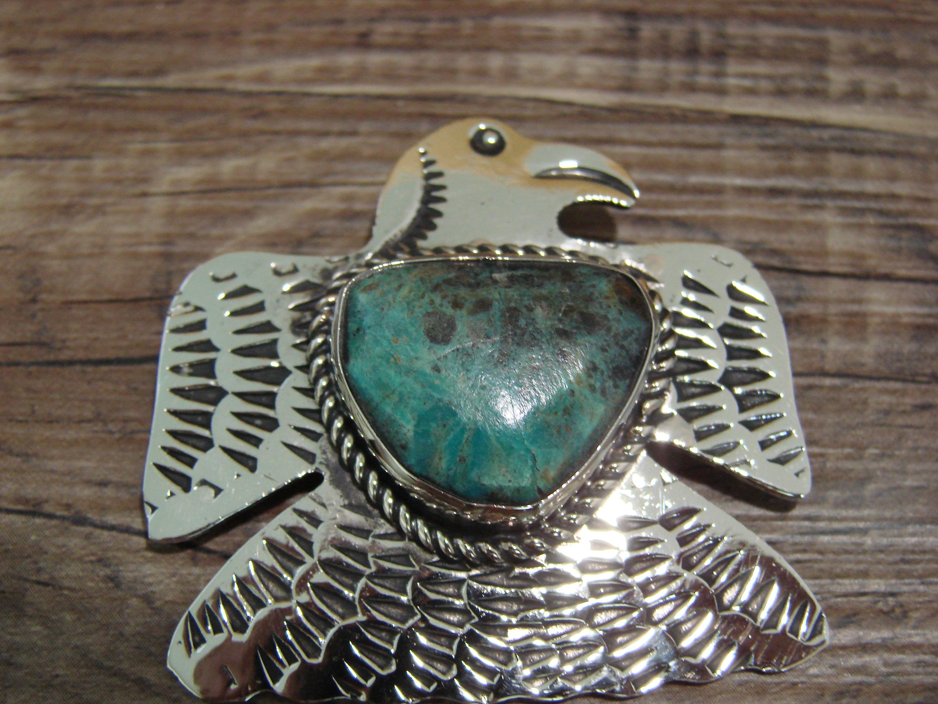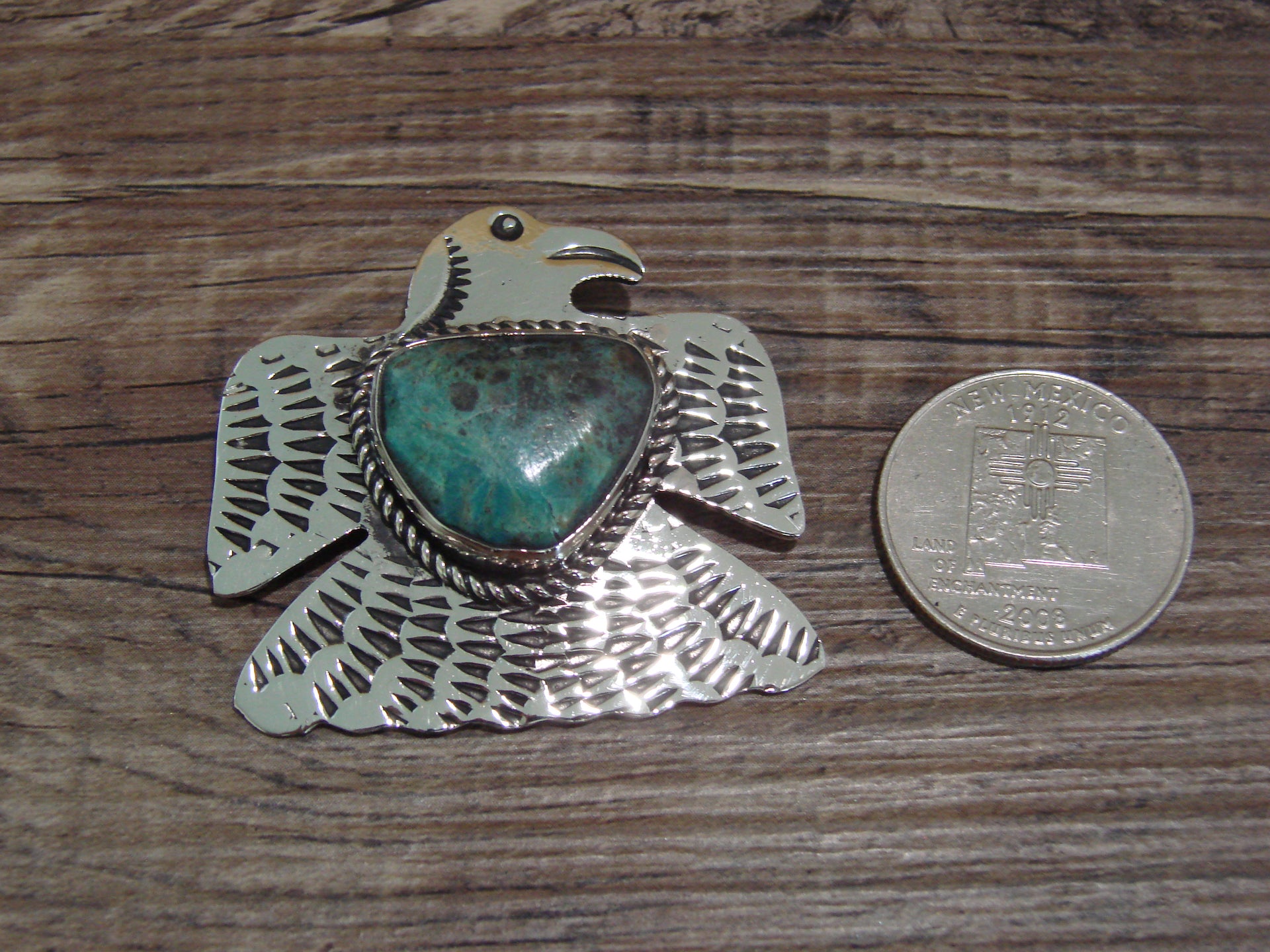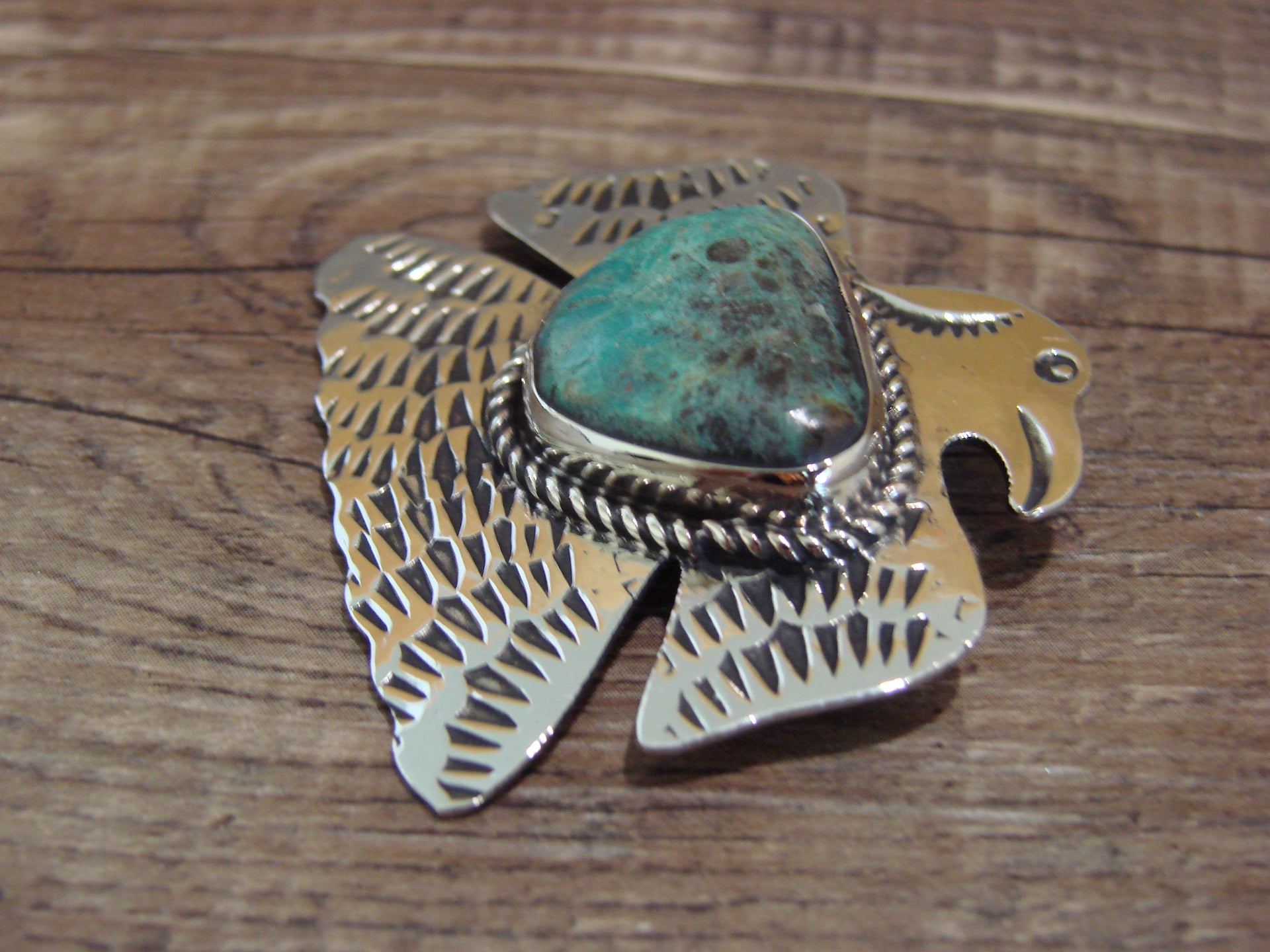 Navajo Indian Nickel Silver & Turquoise Eagle Pendant - Cleveland