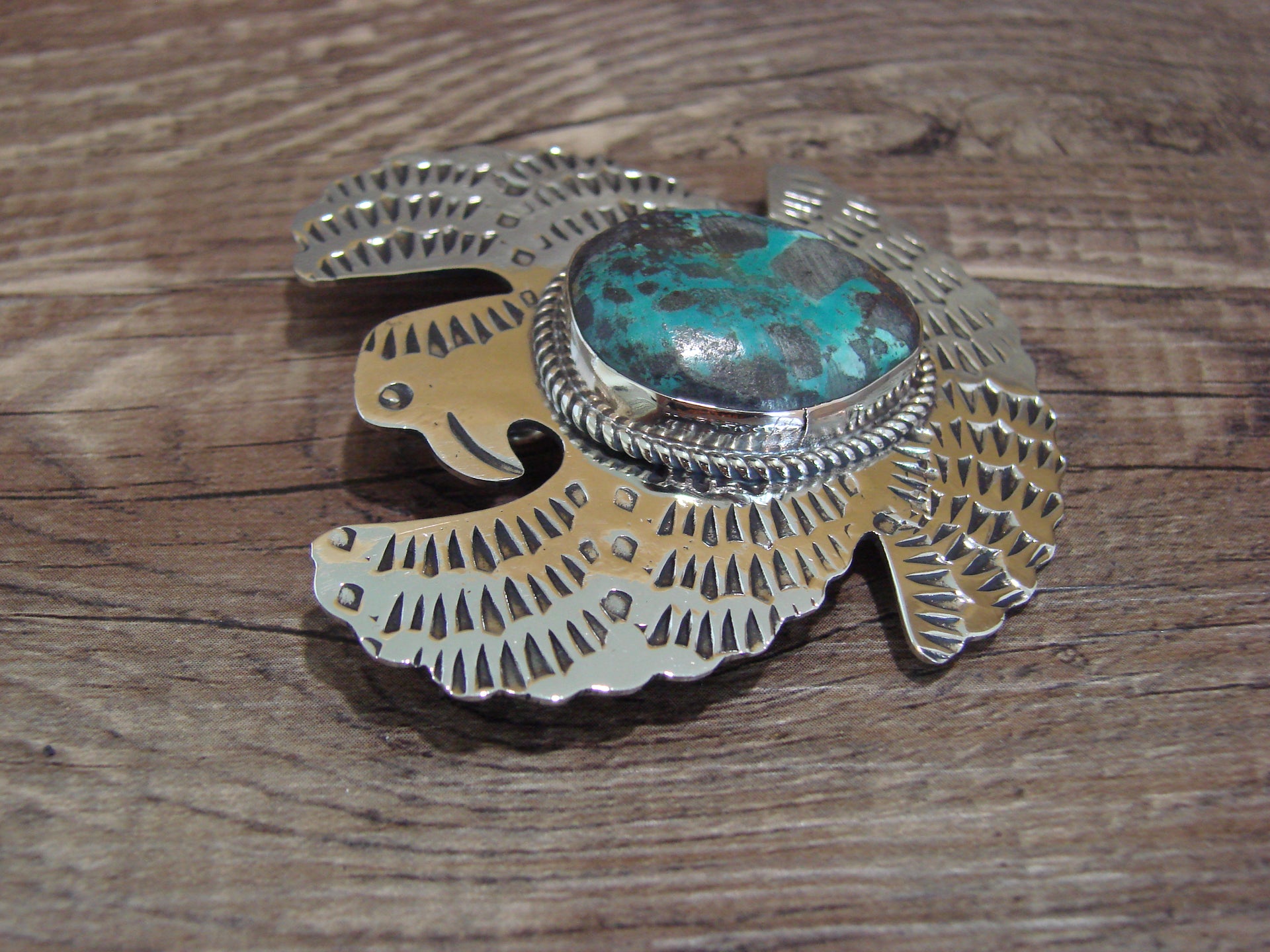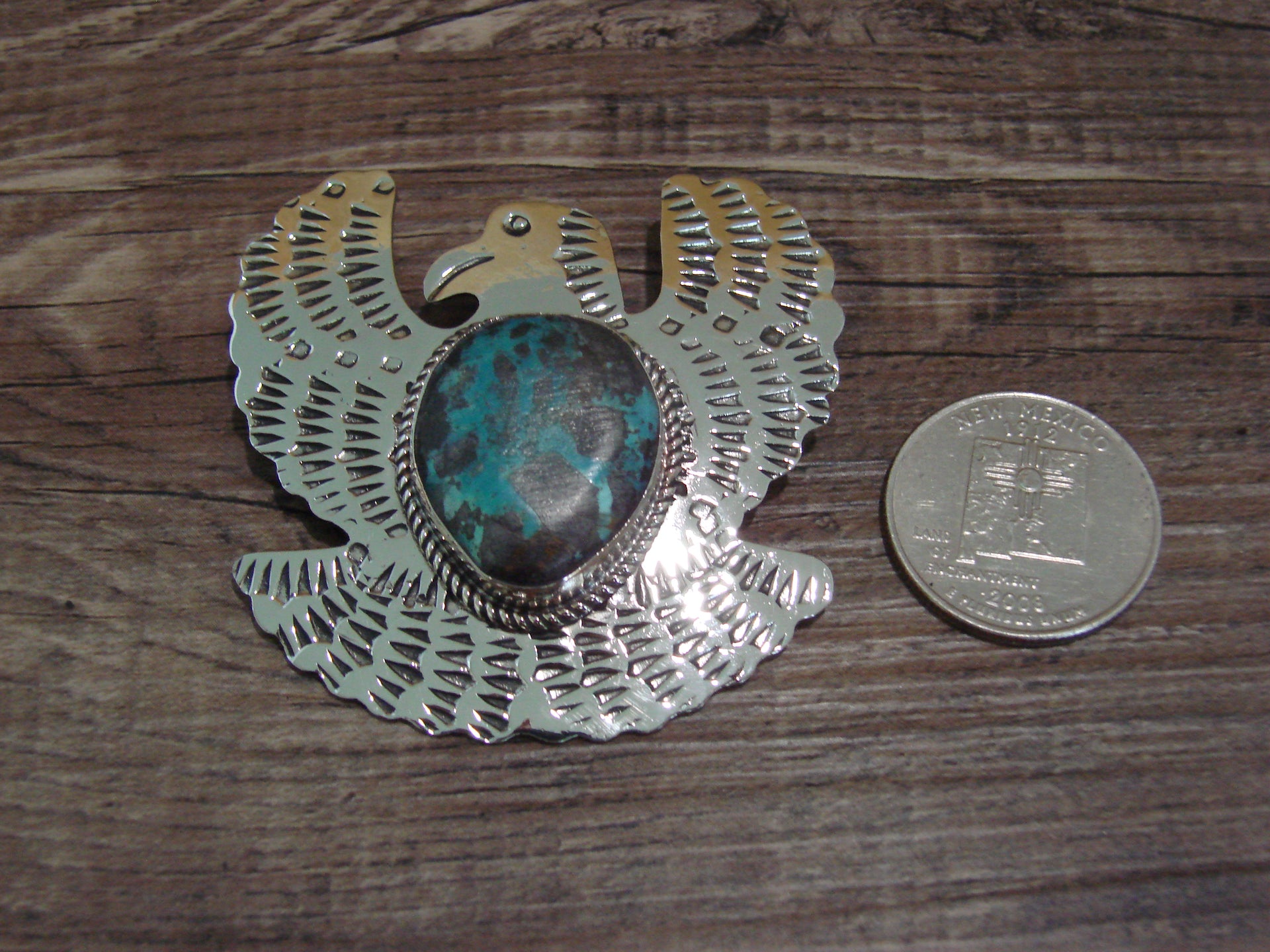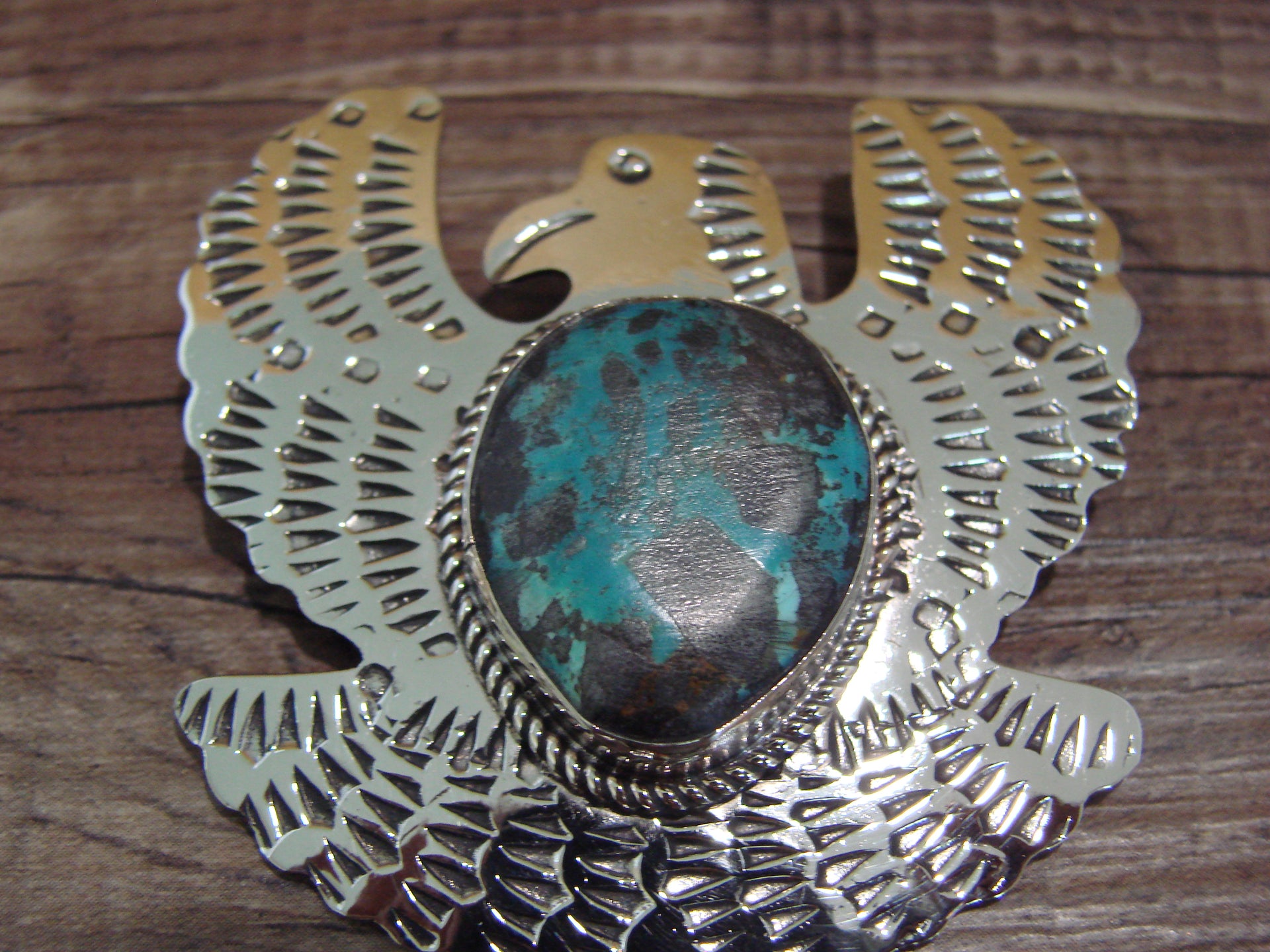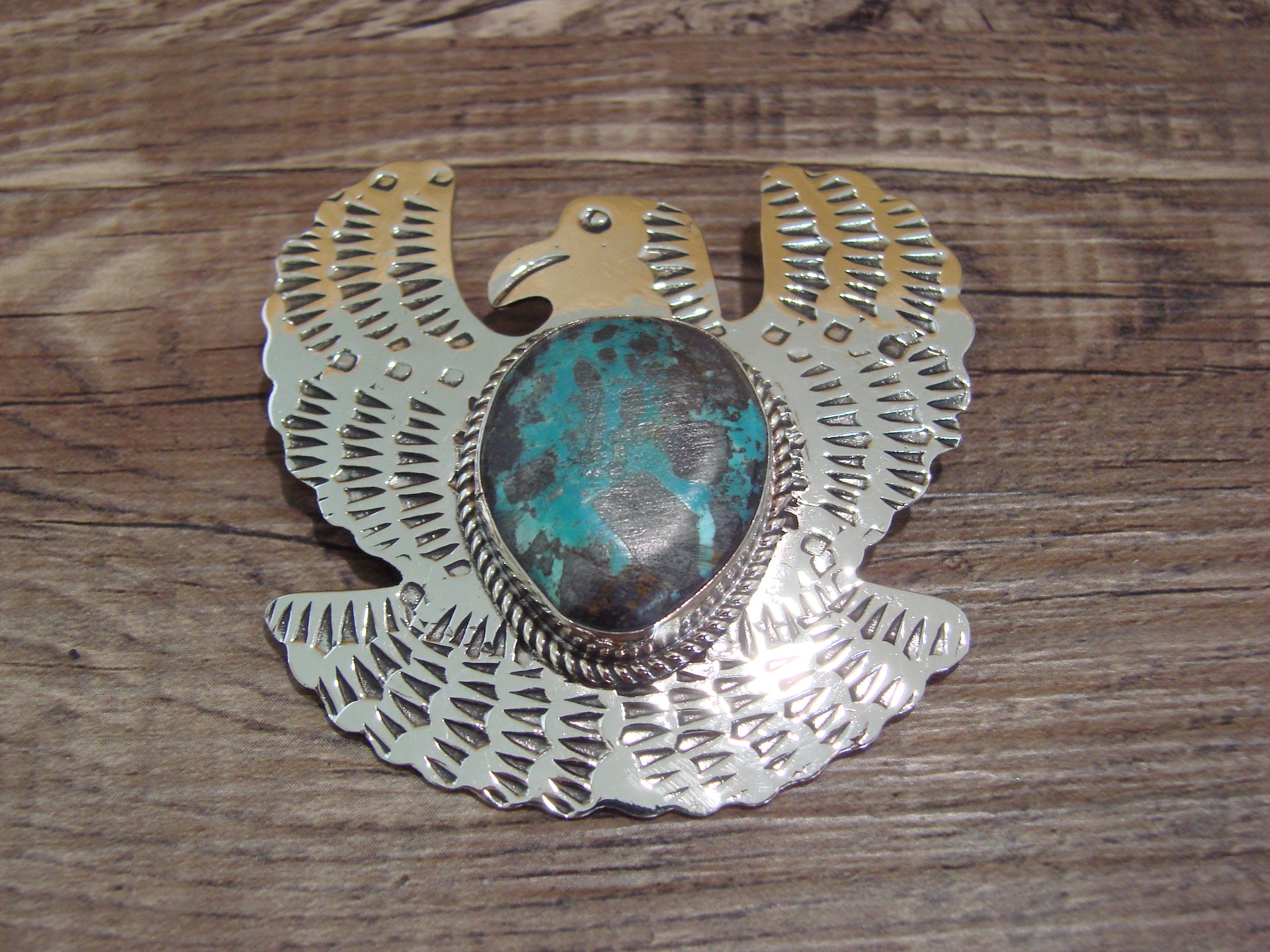 Navajo Indian Nickel Silver & Turquoise Eagle Pendant - Cleveland