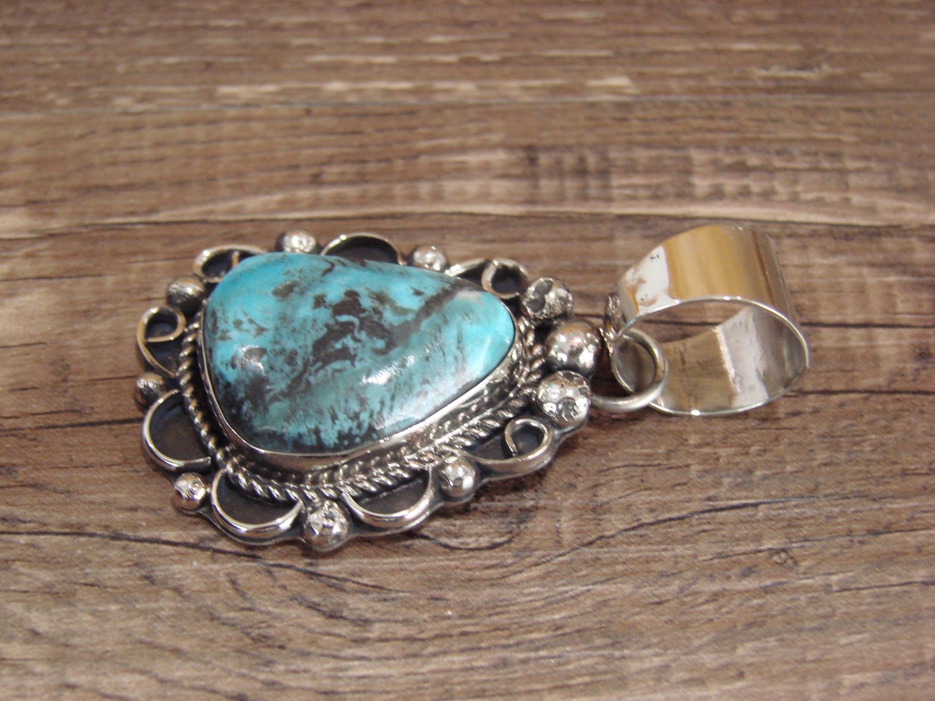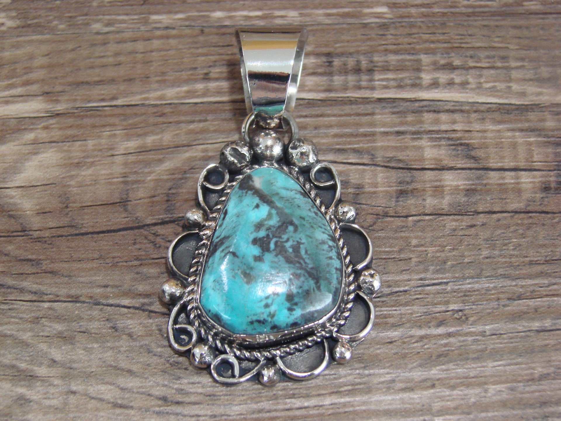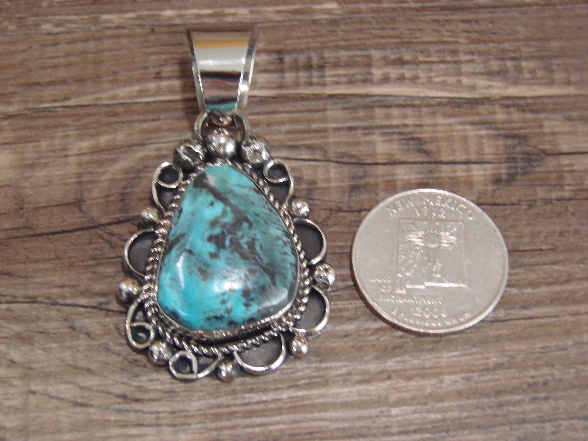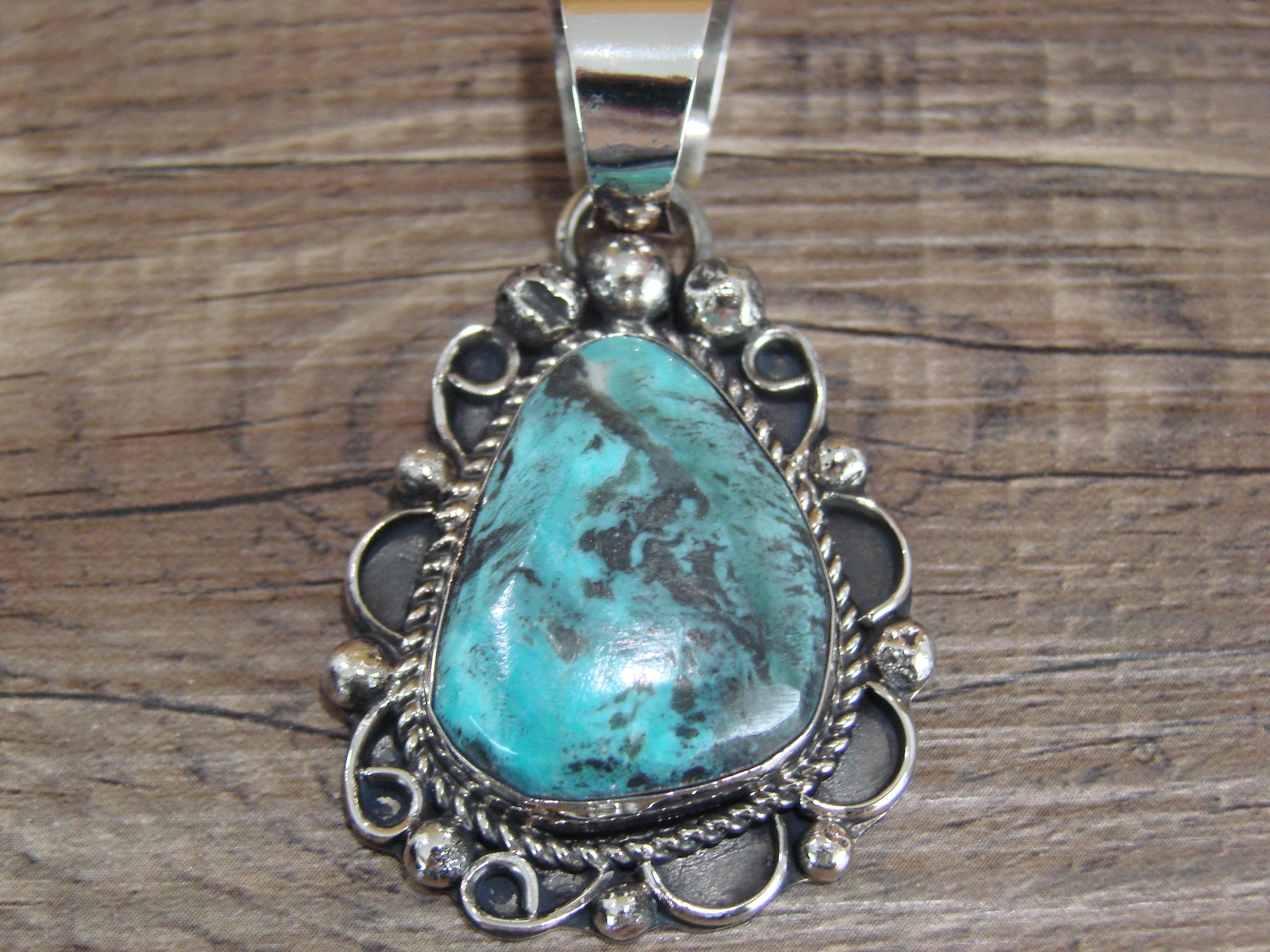 Navajo Indian Nickel Silver & Turquoise Pendant - Cleveland