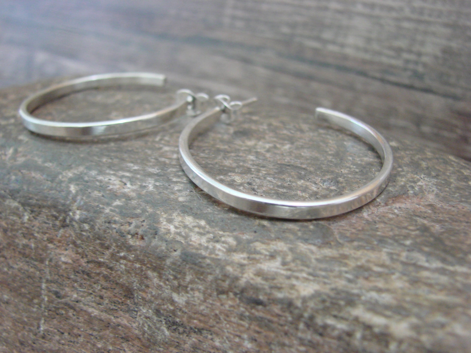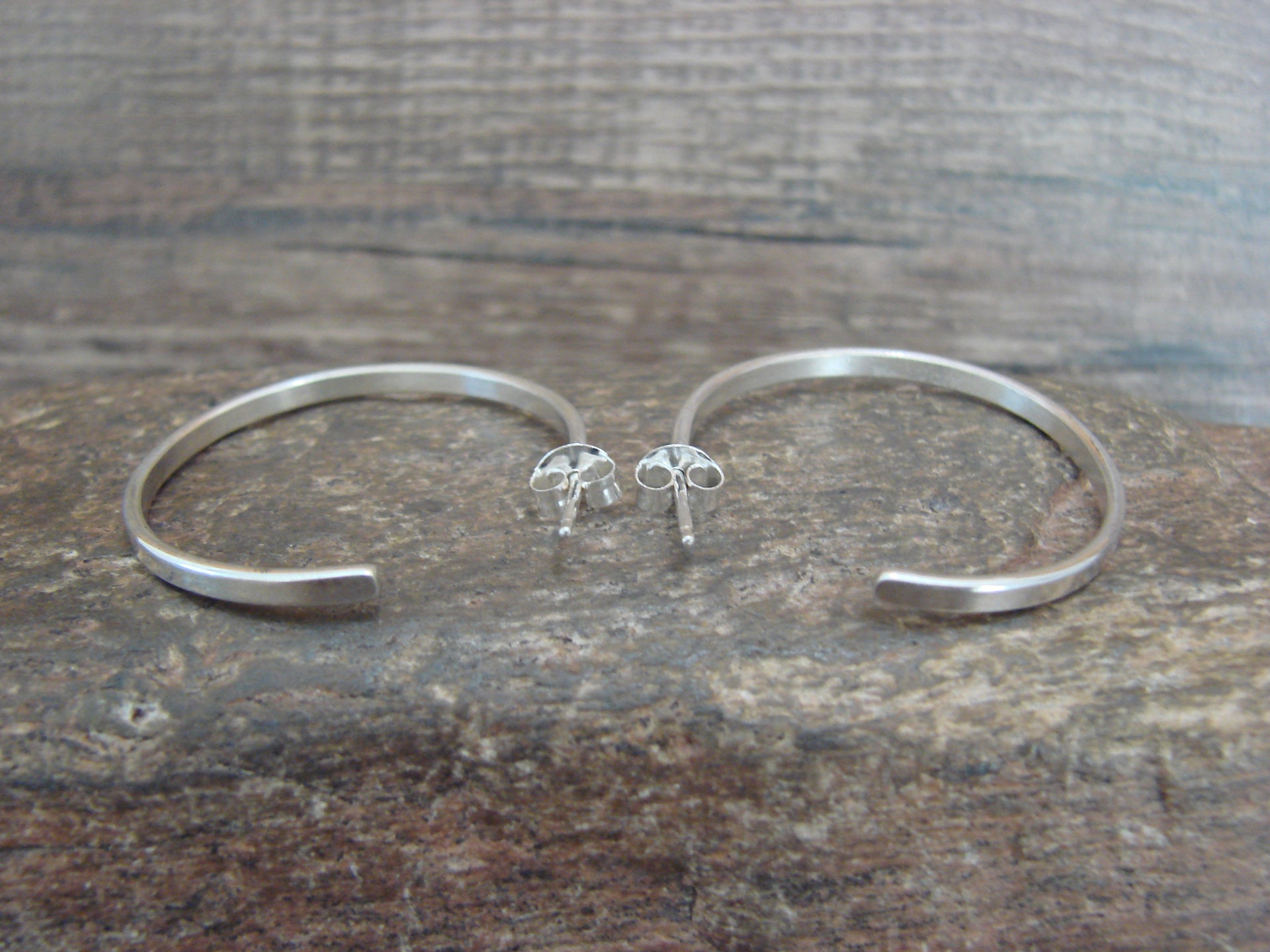 Native American Navajo Indian Sterling Silver Hoop Post Earrings from Western New Mexico. These post earrings feature beautiful, smooth sterling silver throughout. Handmade by Navajo artist Elaine Tahe. Unsigned. Free shipping with a gift box included!