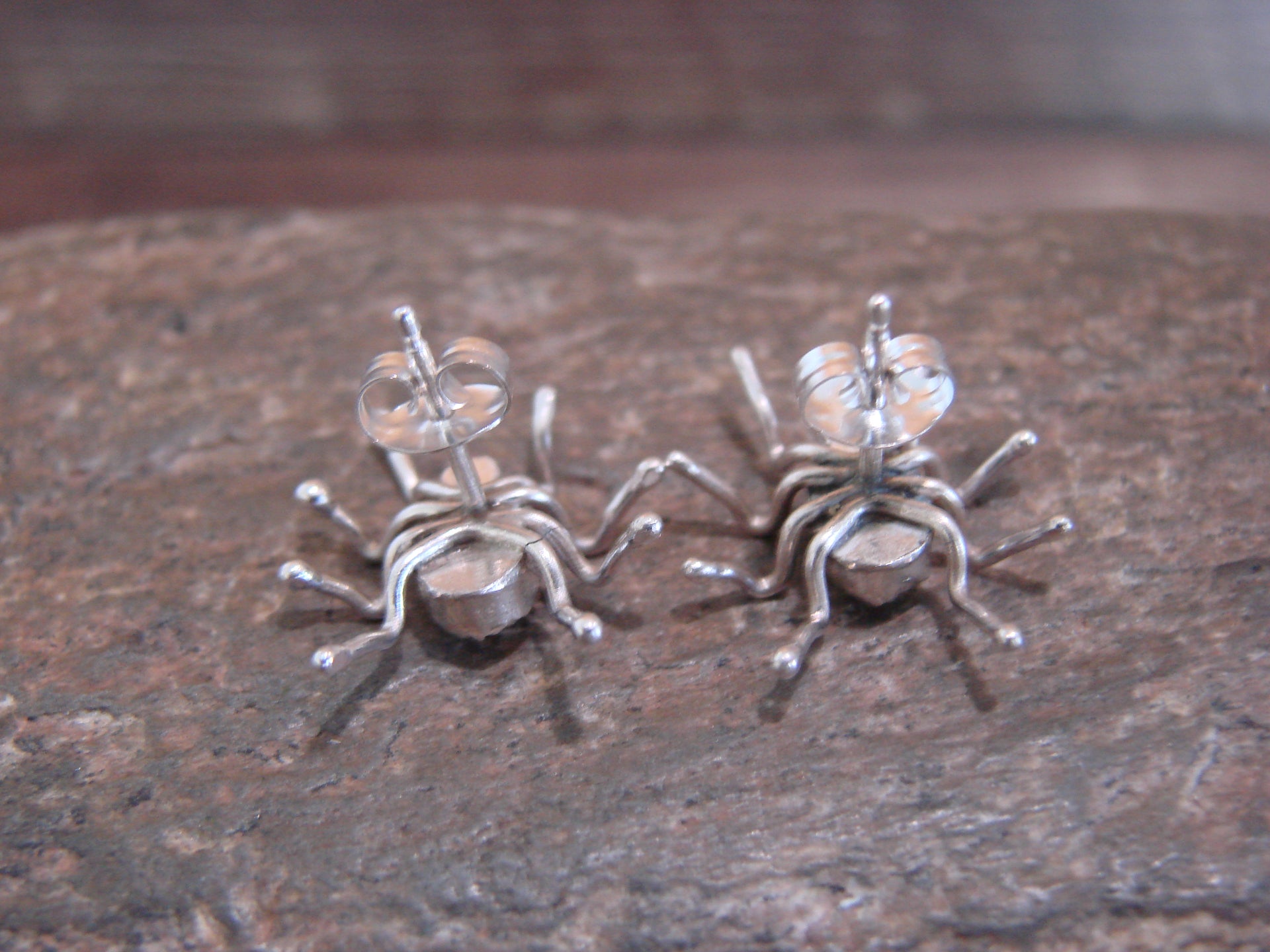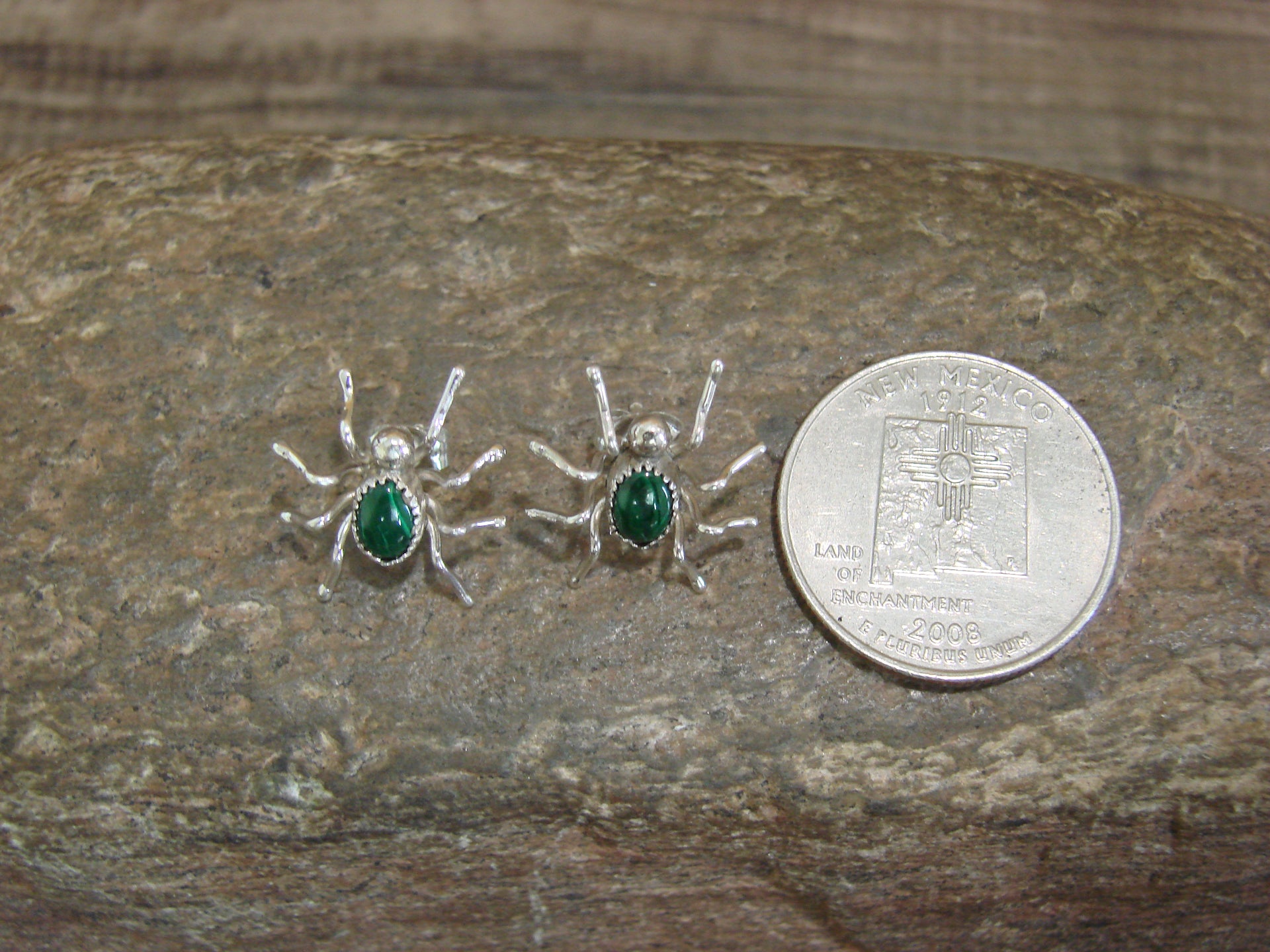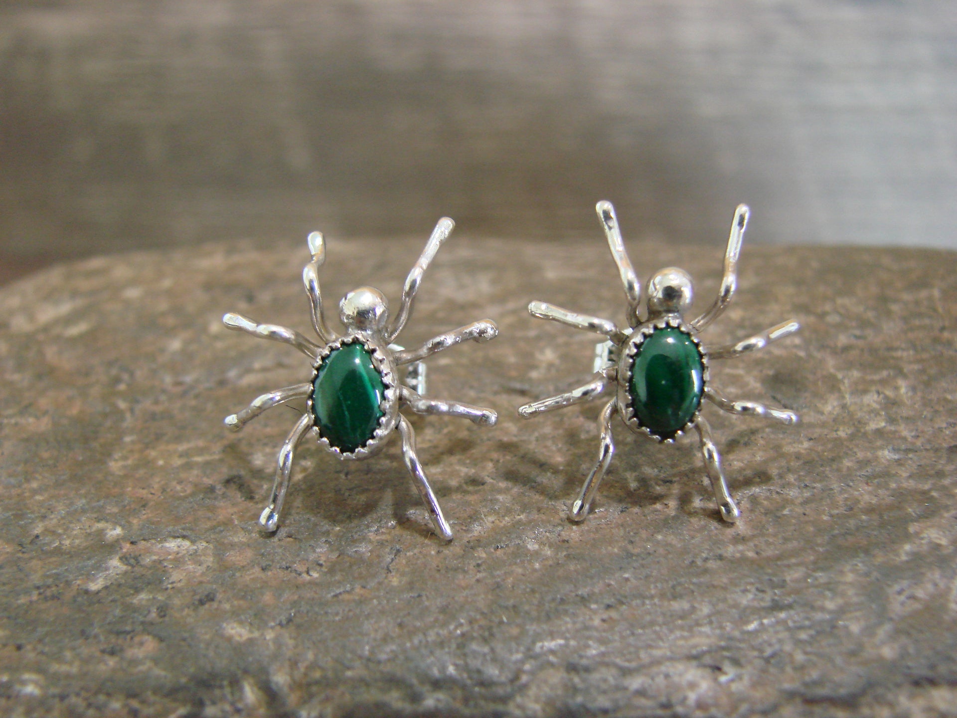 Navajo Indian Sterling Silver & Malachite Spider Post Earrings - Garfield