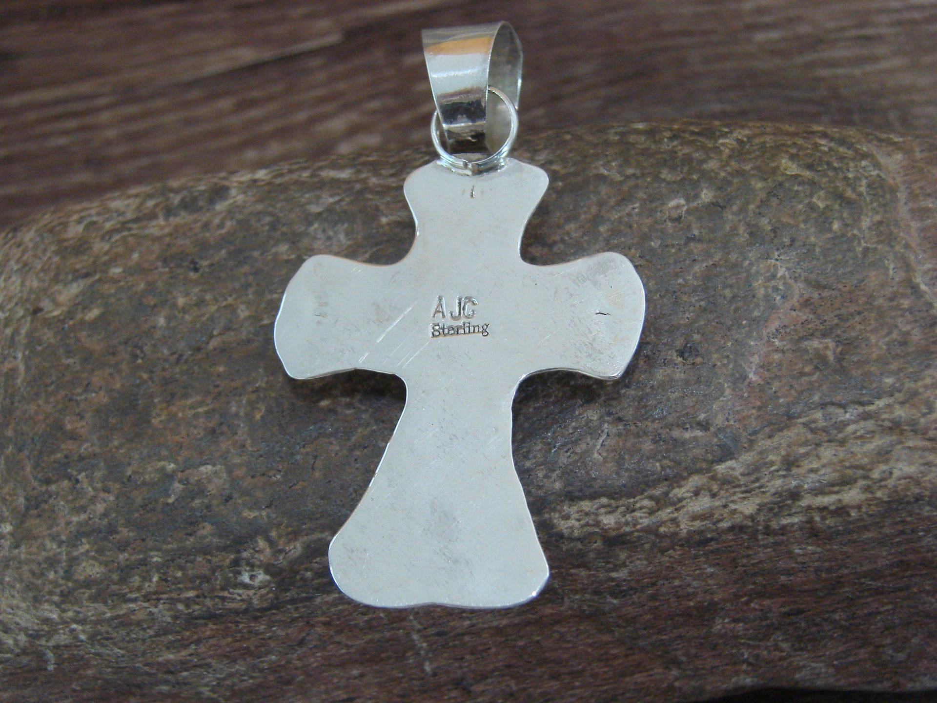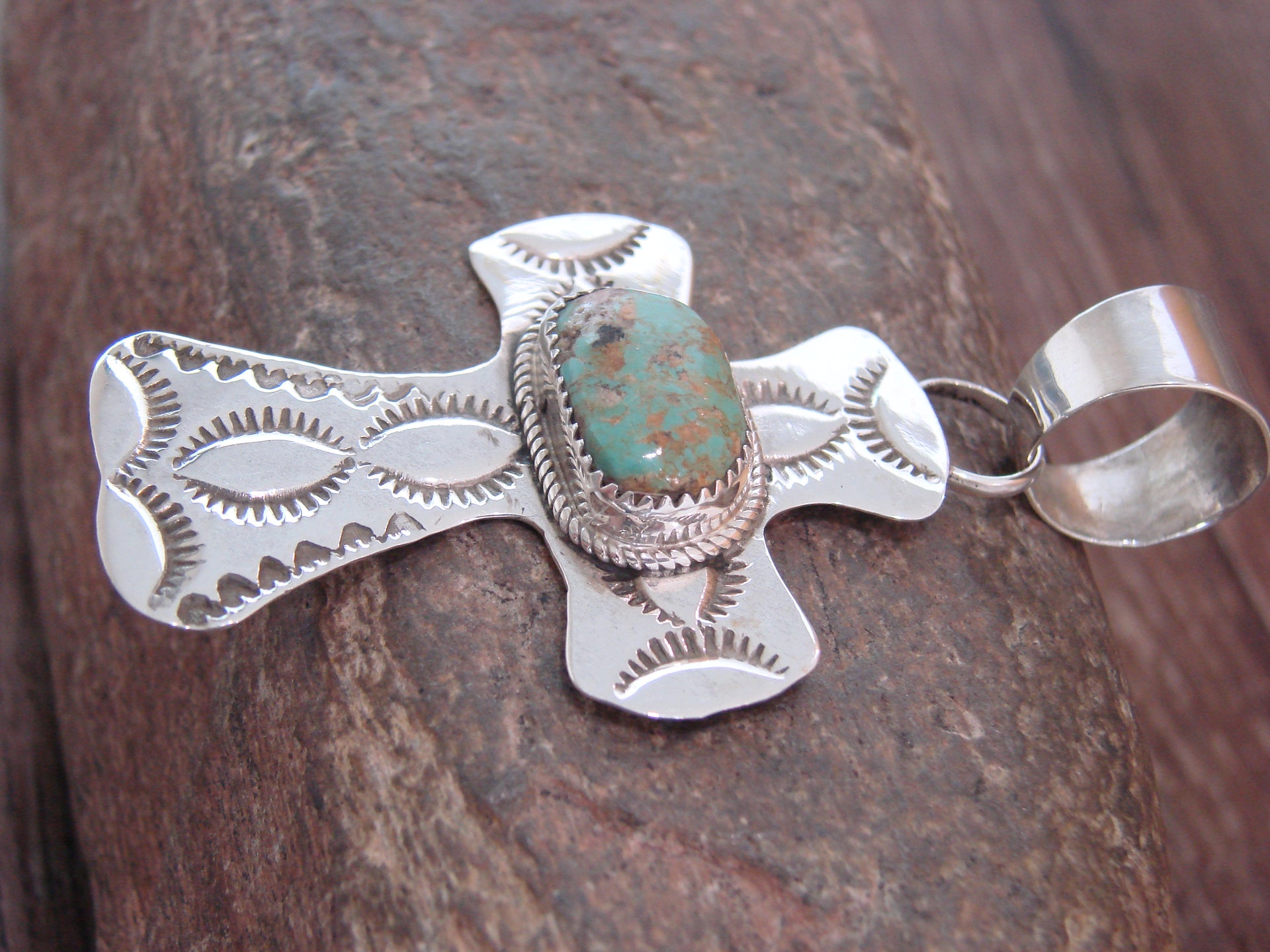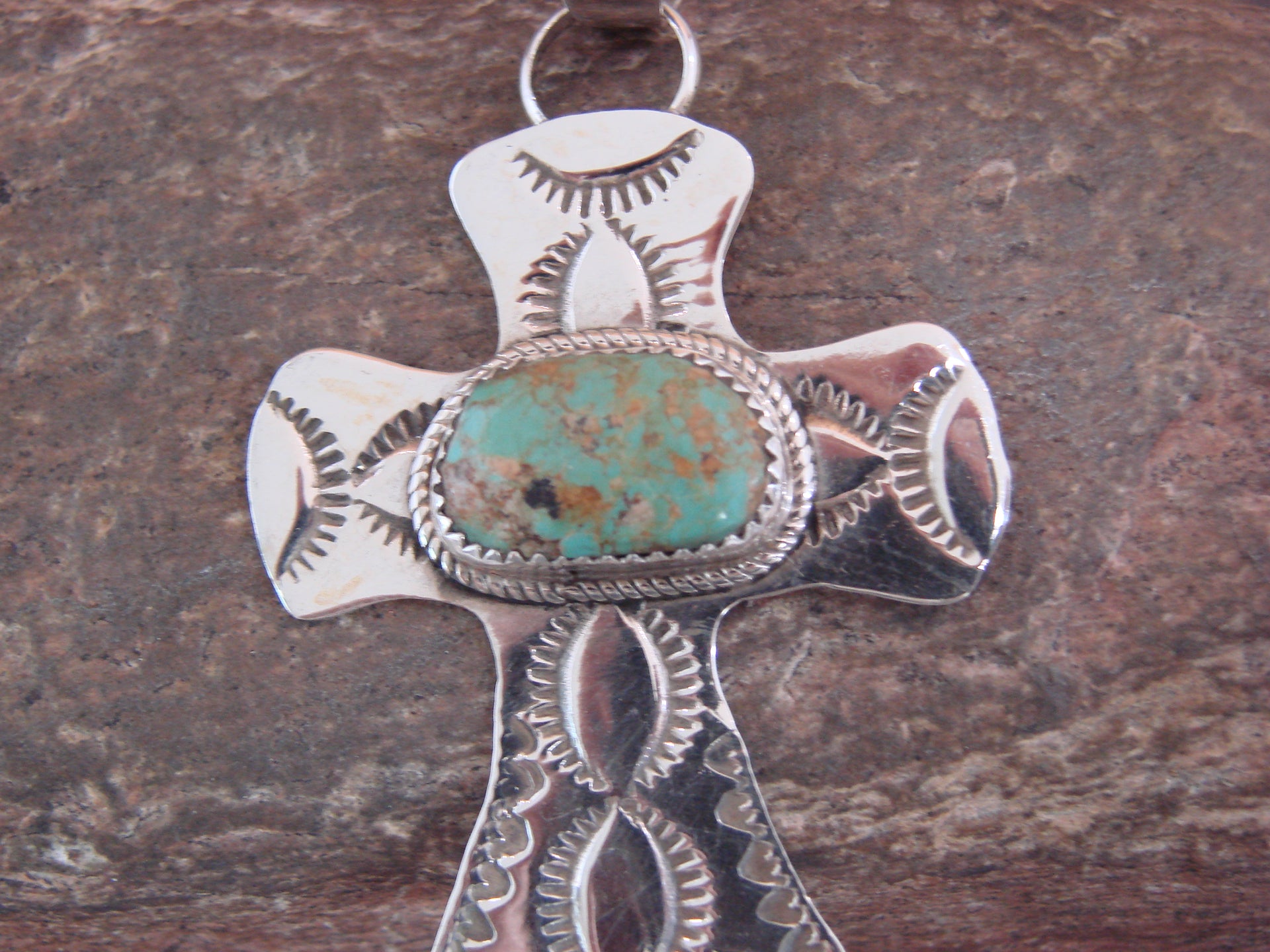 Navajo Indian Sterling Silver & Turquoise Cross Pendant Signed Cleveland