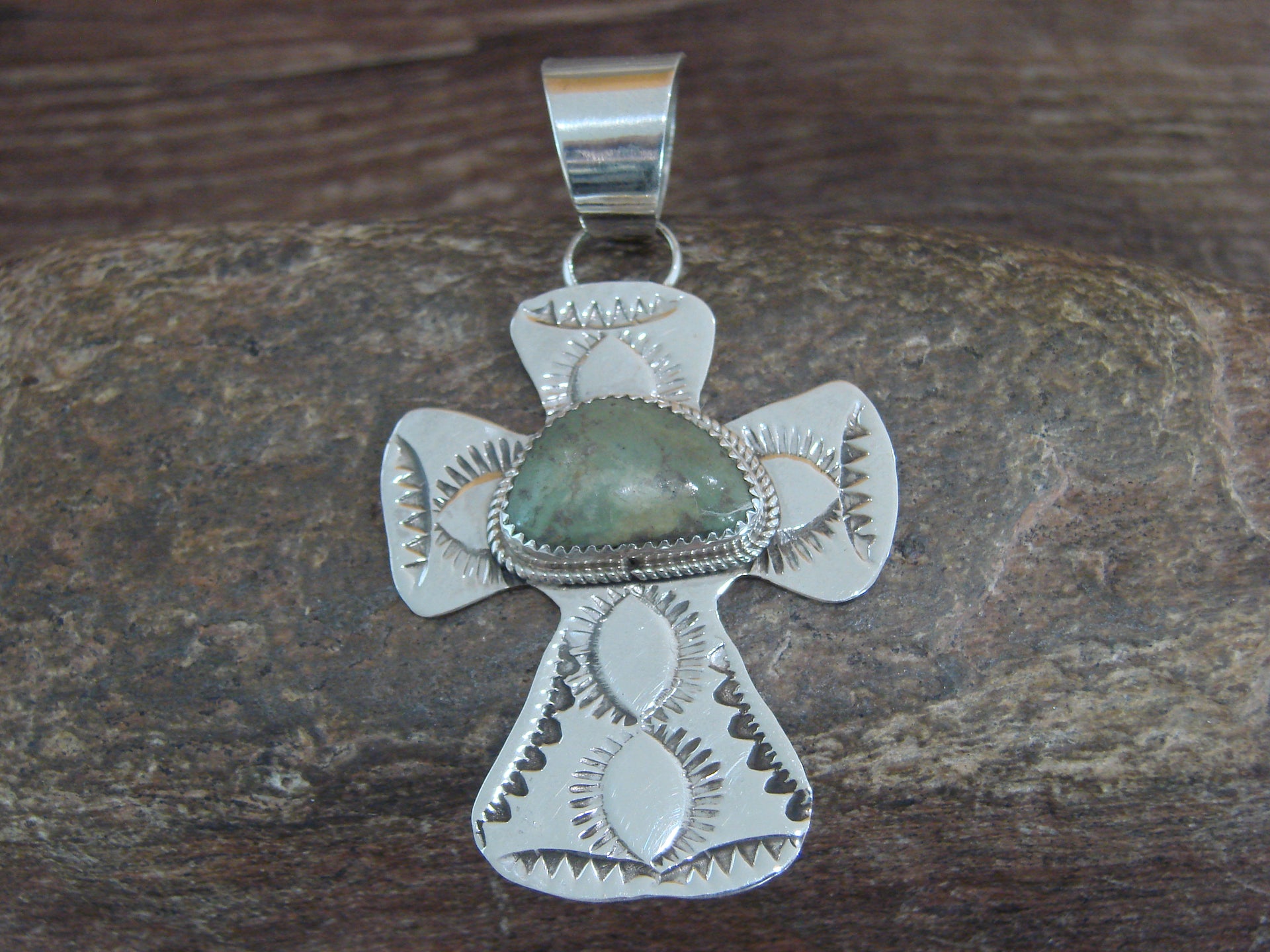Navajo Indian Sterling Silver & Turquoise Cross Pendant Signed Cleveland