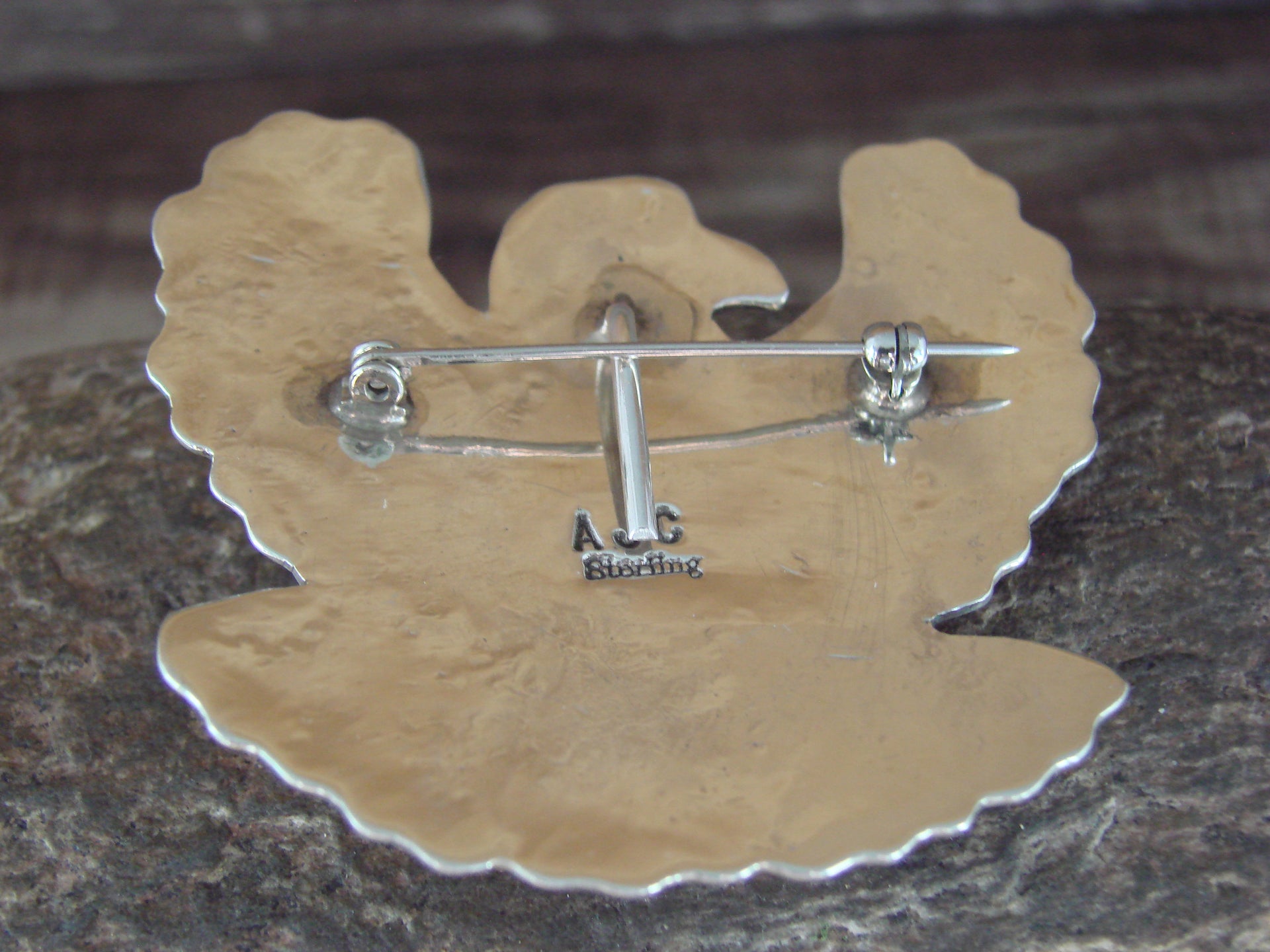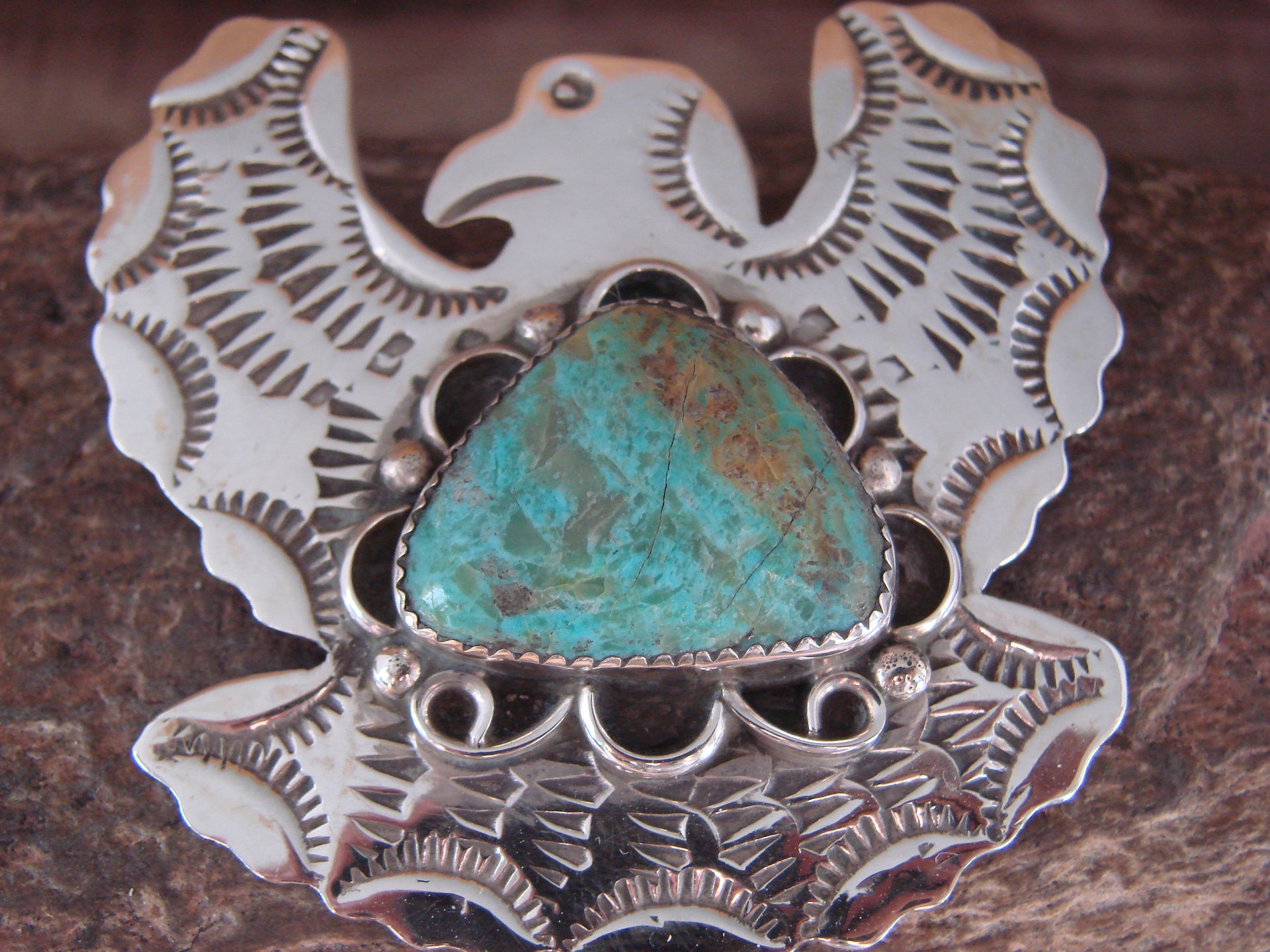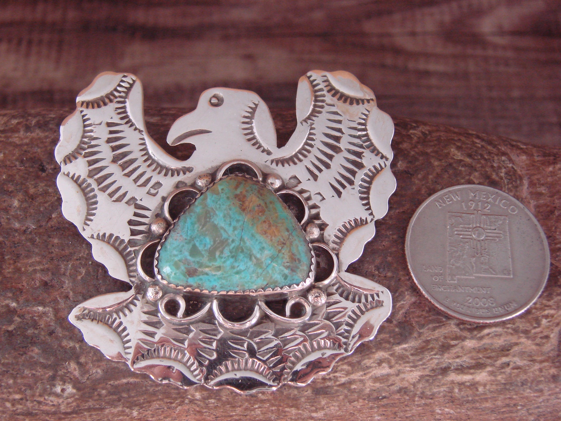 Navajo Indian Sterling Silver & Turquoise Eagle Pin Pendant - Cleveland