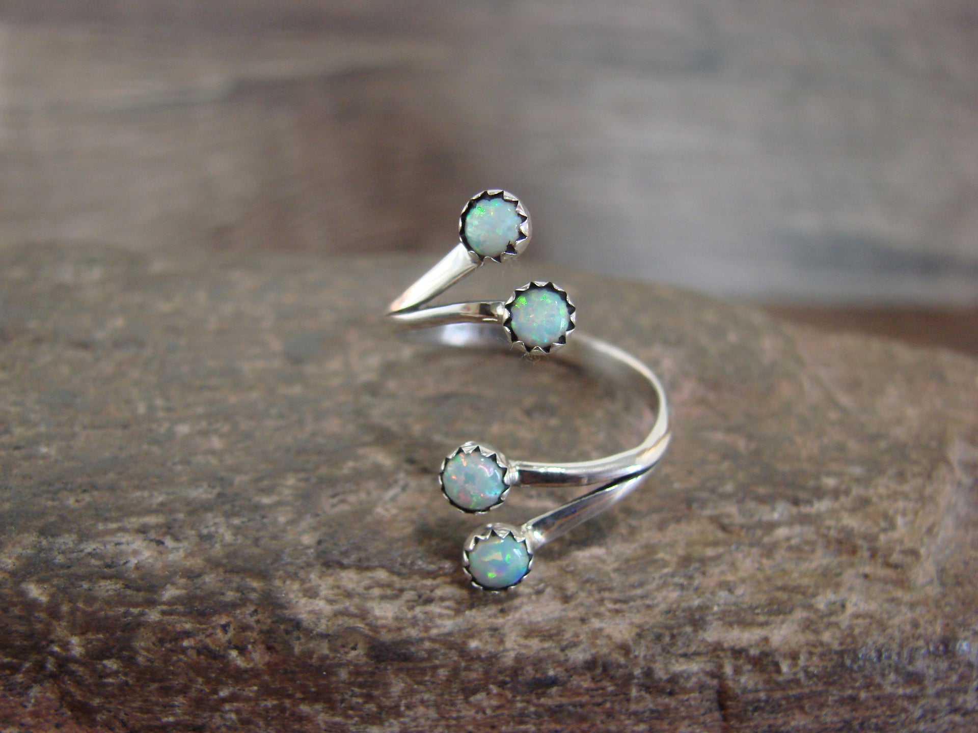 Native American Sterling Silver & White Opal Adjustable Ring - Largo
