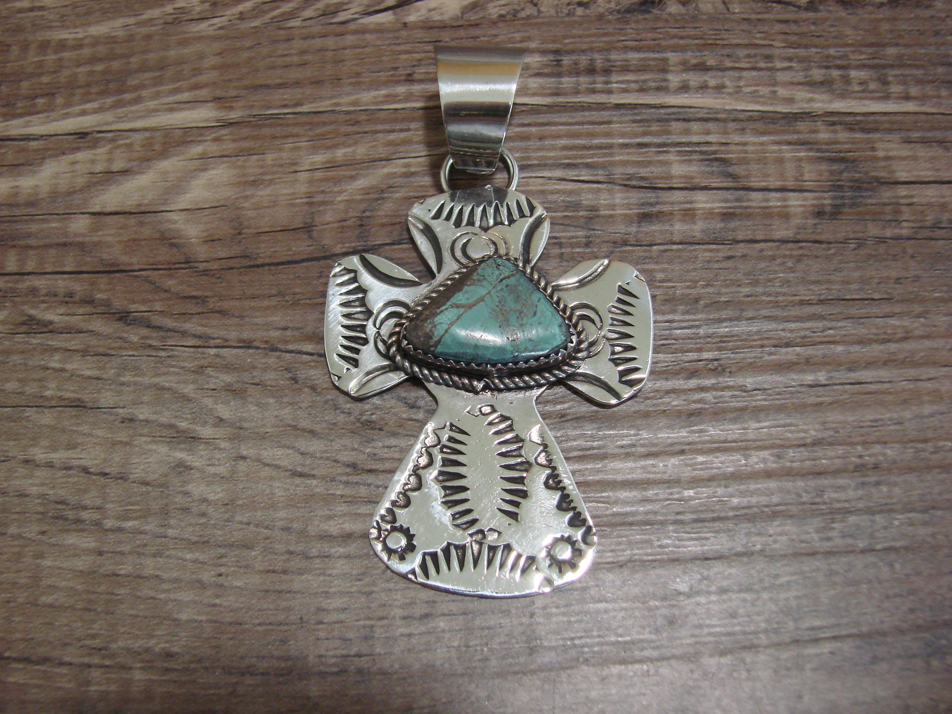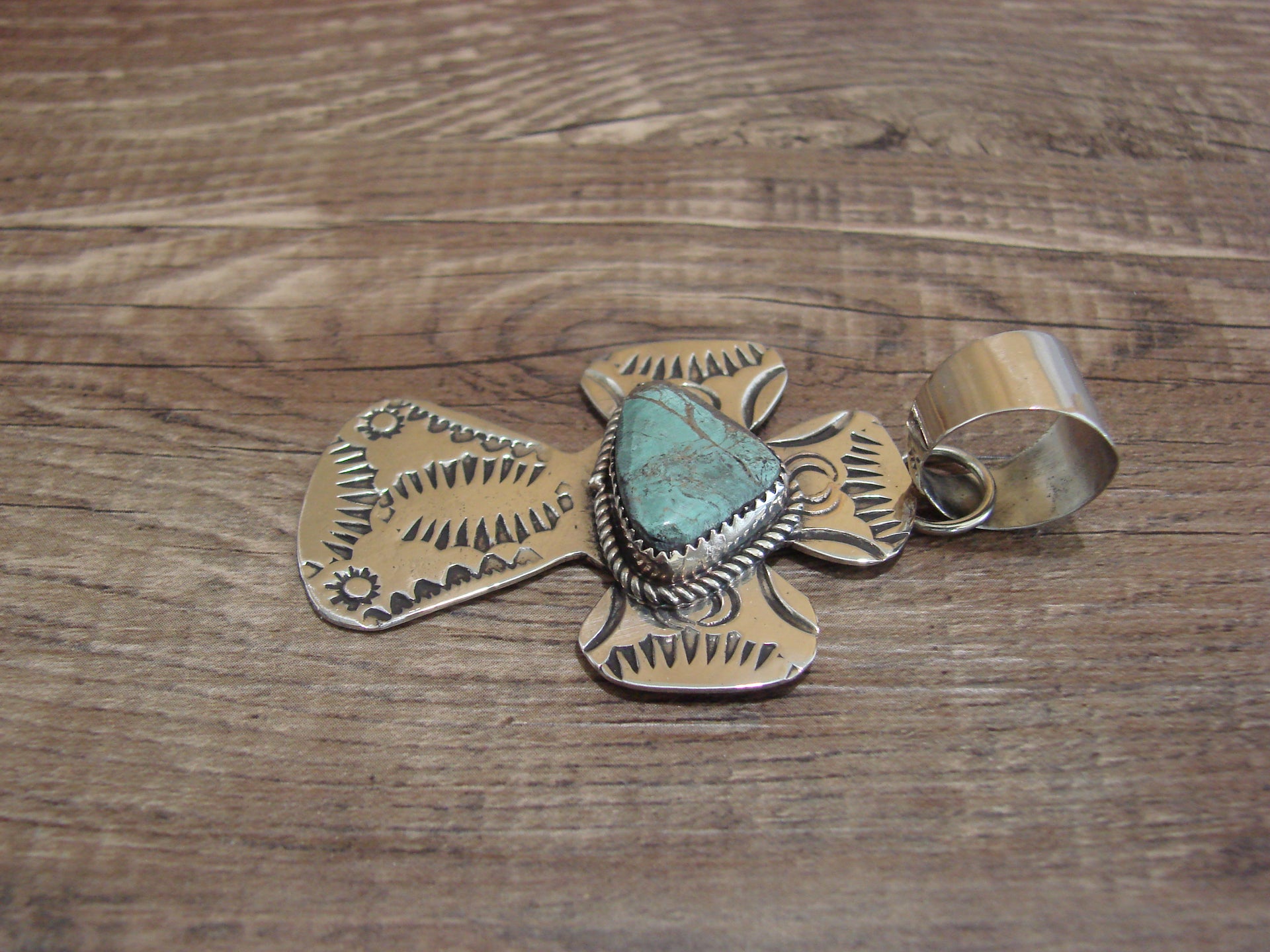 Navajo Nickel Silver & Turquoise Cross Pendant - Cleveland