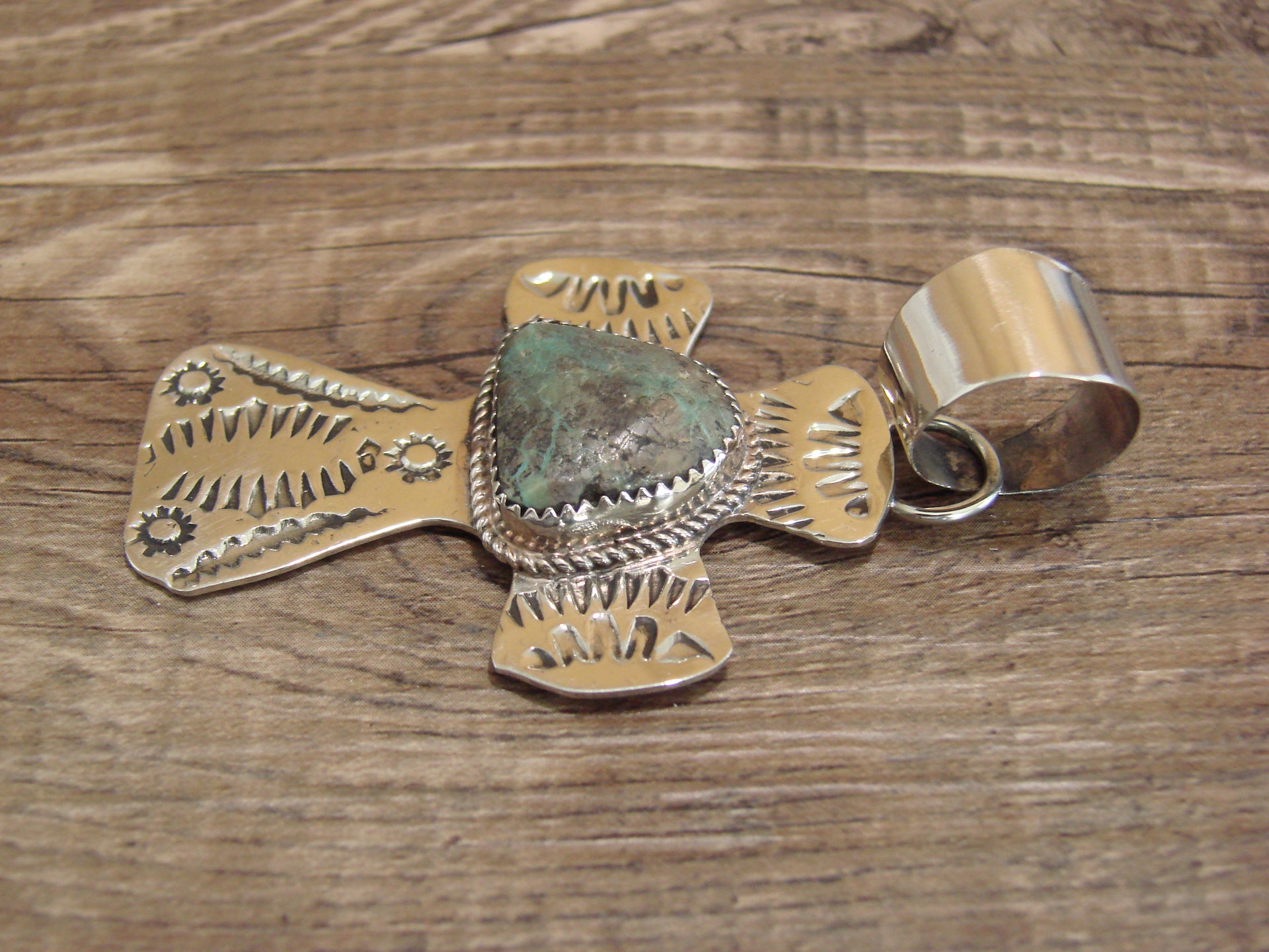 Navajo Nickel Silver & Turquoise Cross Pendant - Cleveland