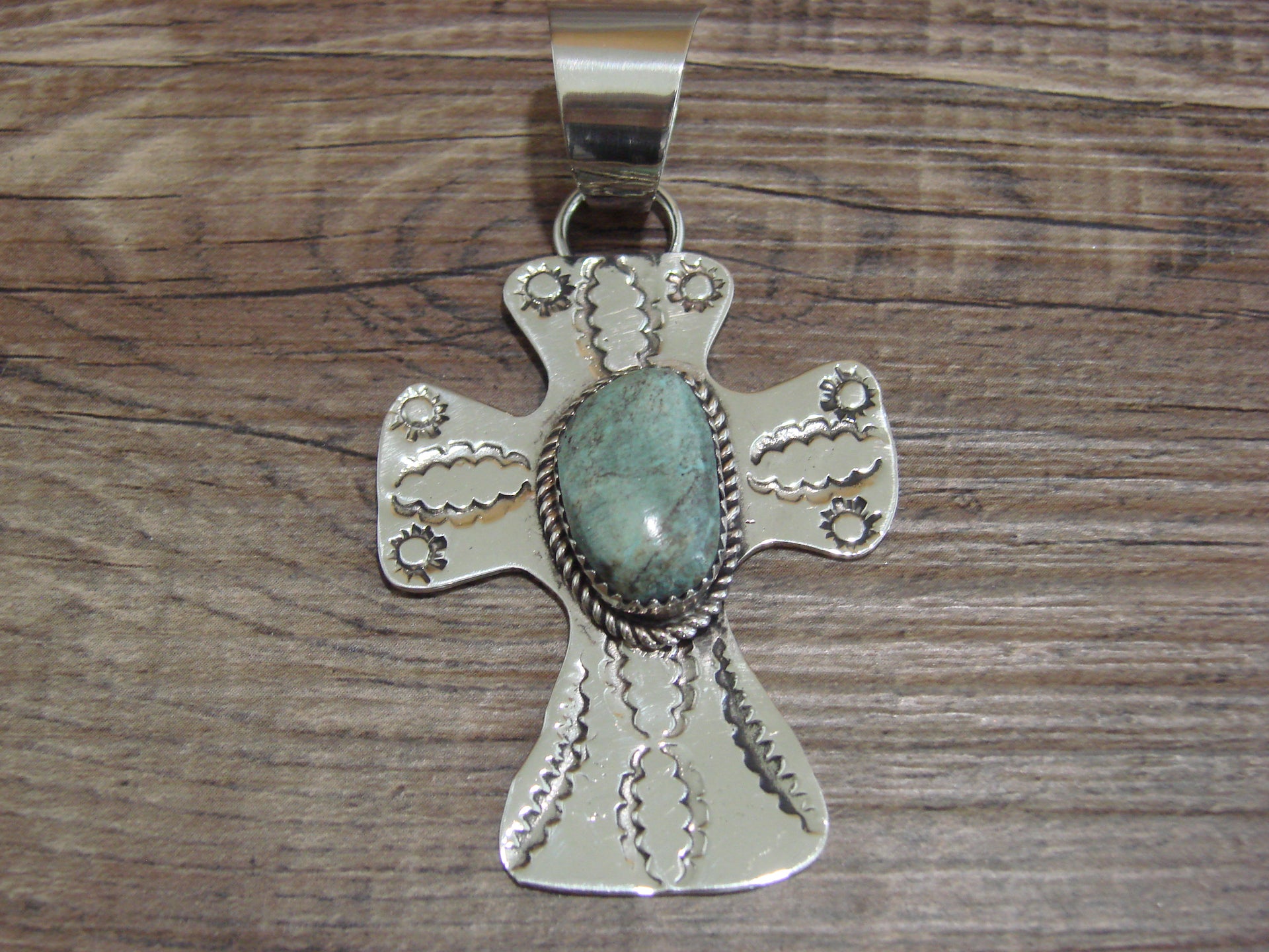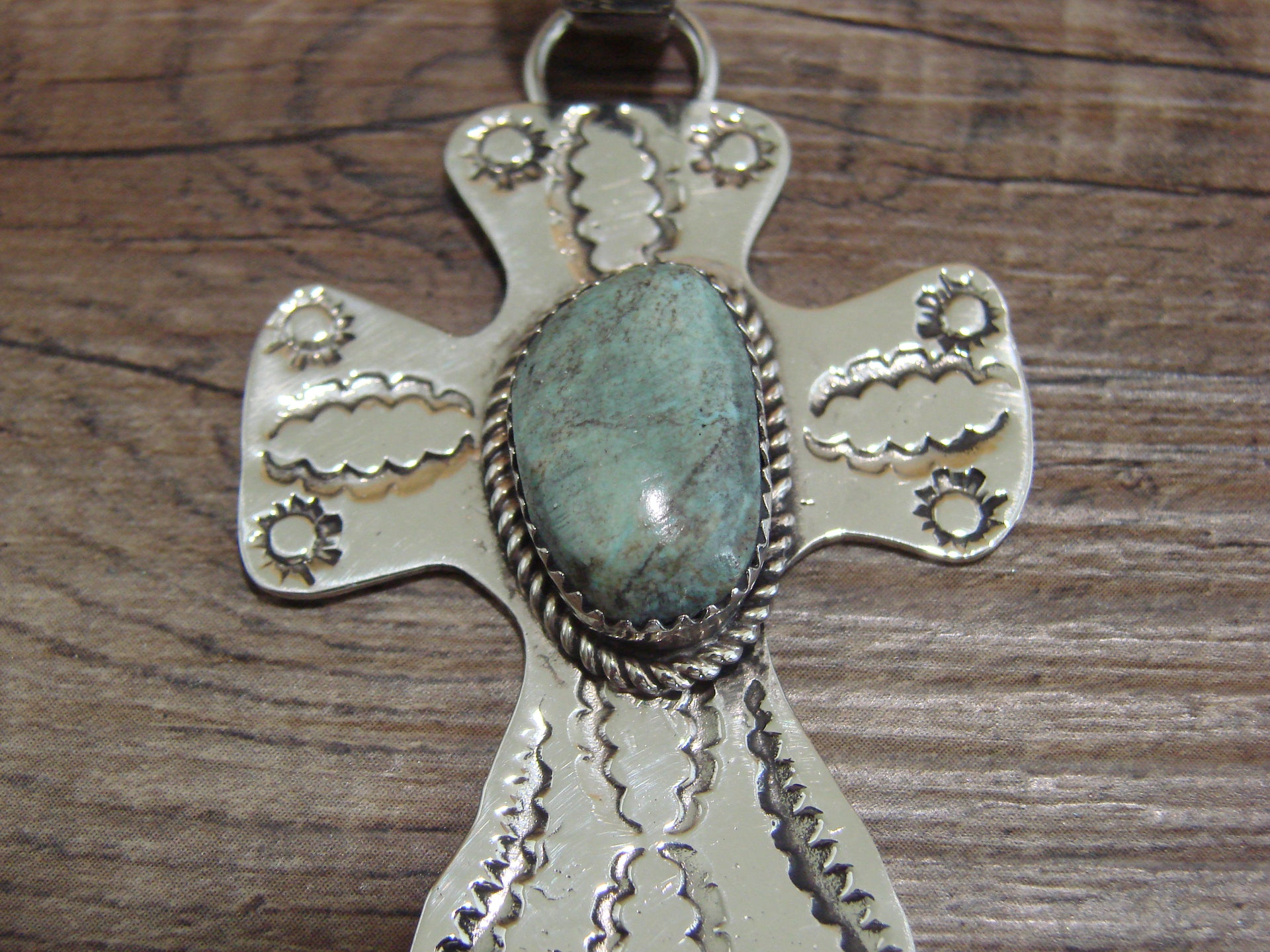 Navajo Nickel Silver & Turquoise Cross Pendant - Cleveland