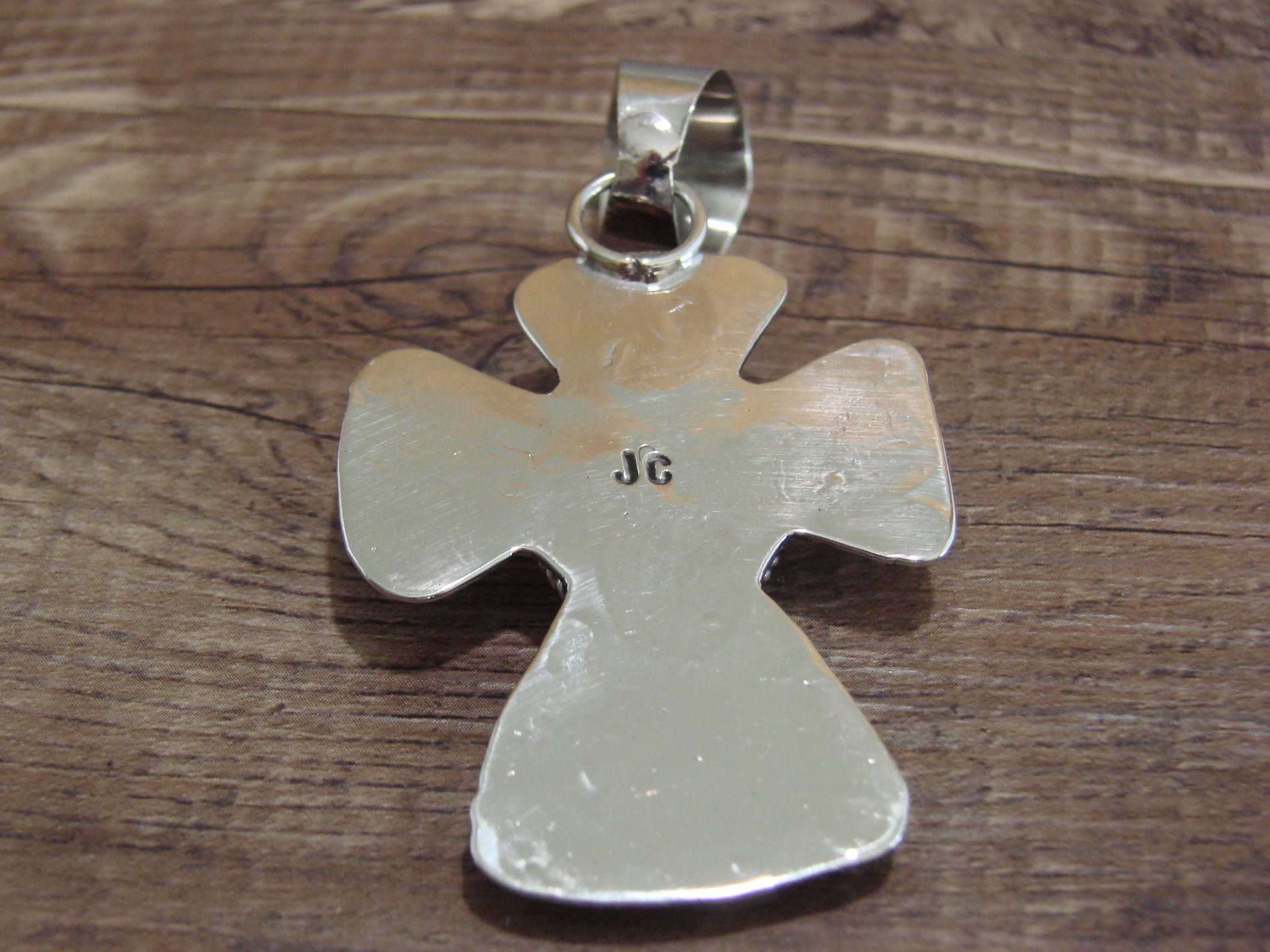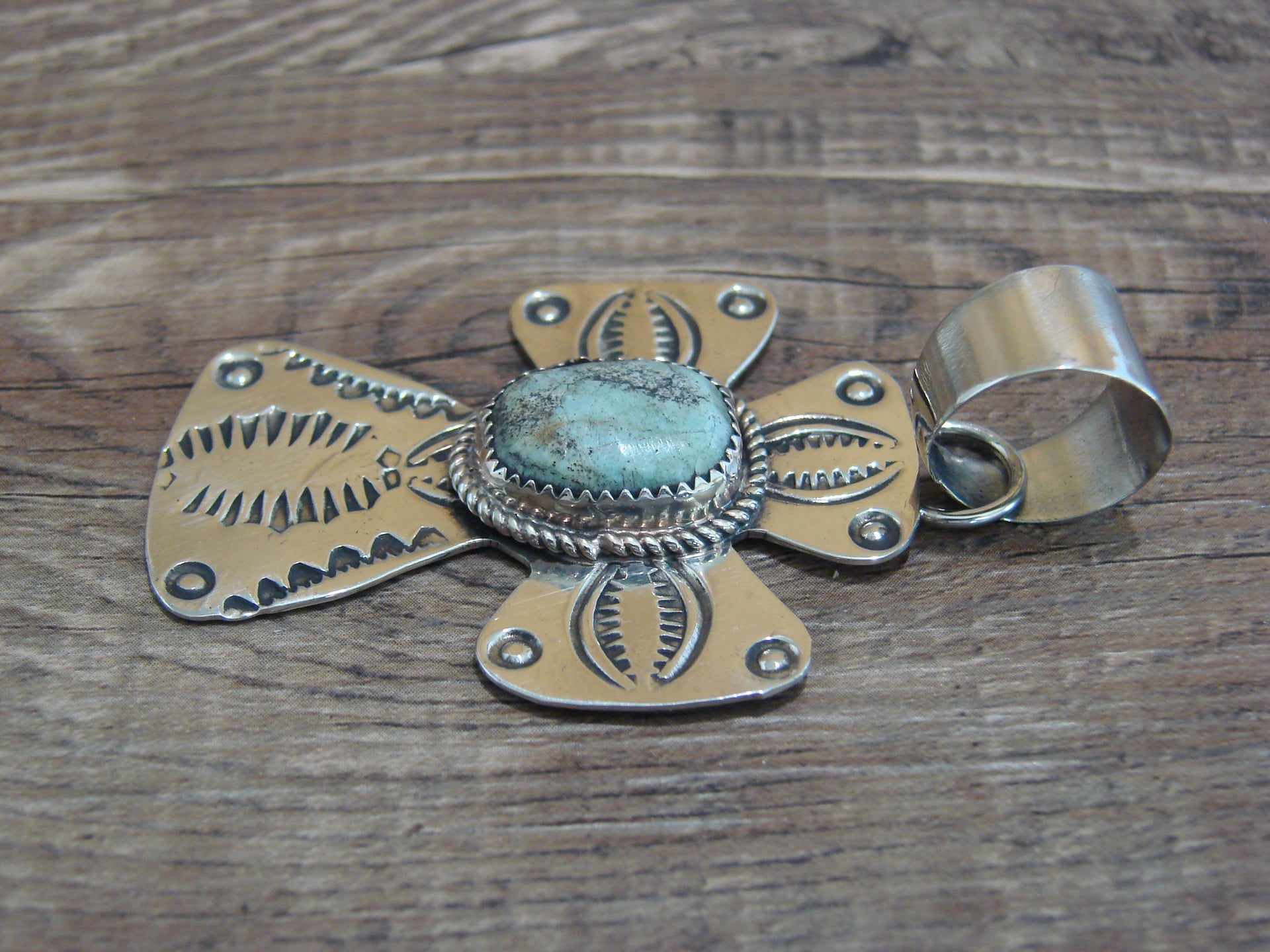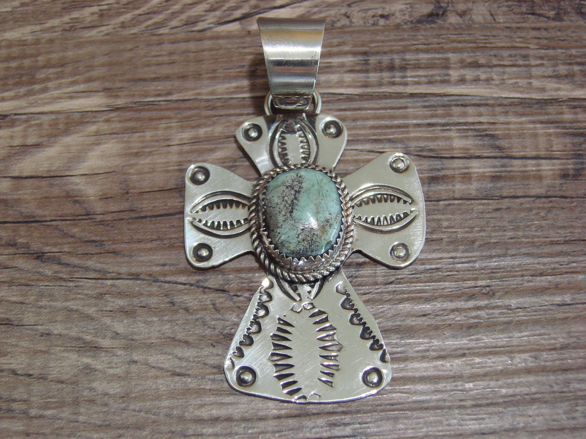 Navajo Nickel Silver & Turquoise Cross Pendant - Cleveland