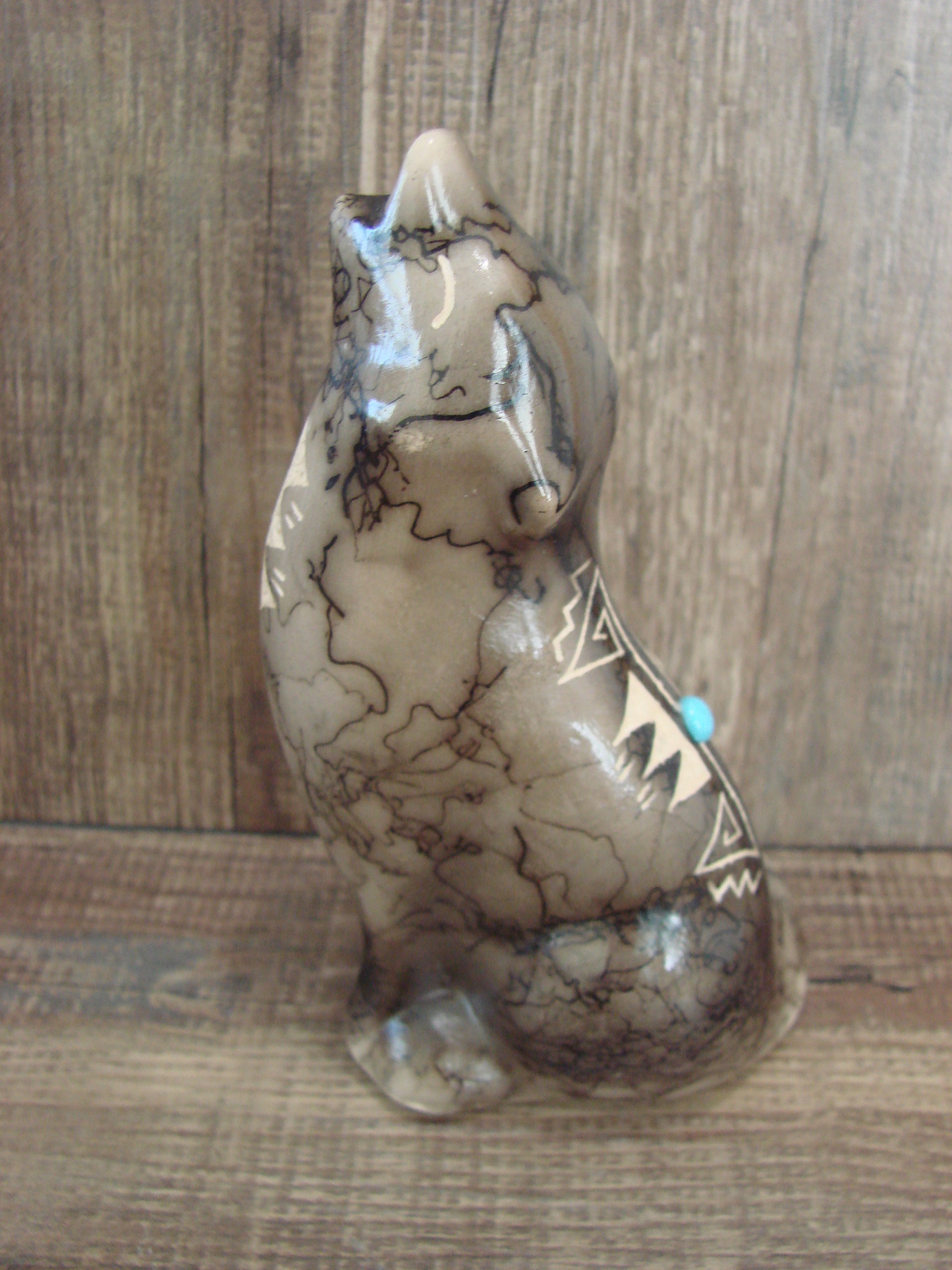 Navajo Pottery Horse Hair Howling Wolf Sculpture by Vail