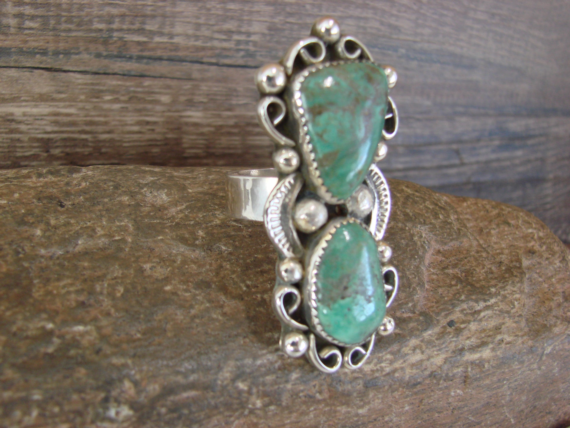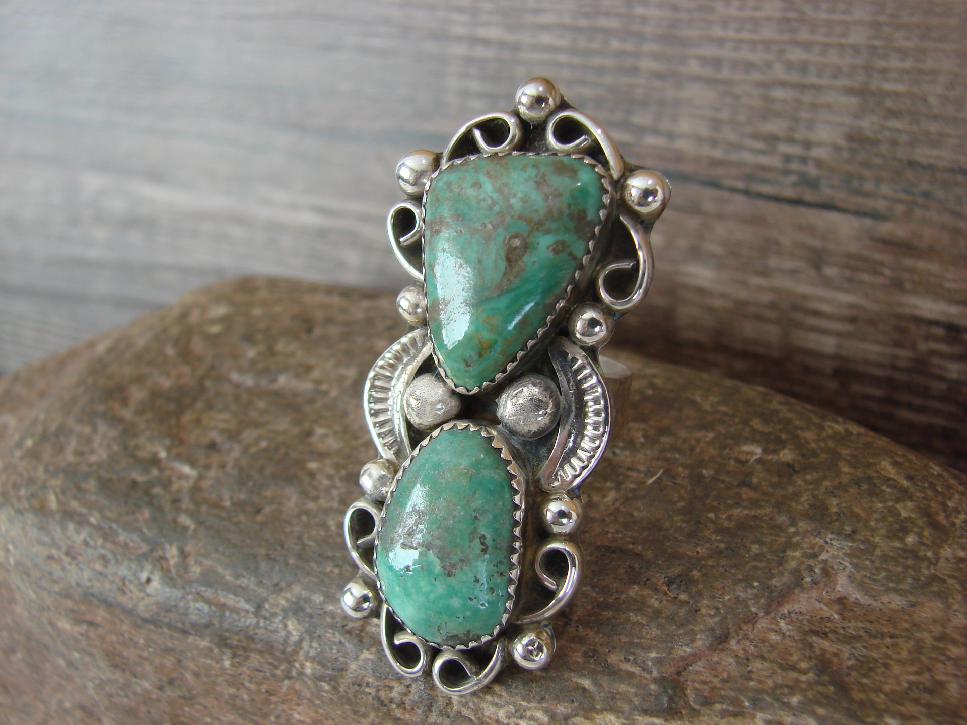 Navajo Sterling Silver Turquoise Adjustable Ring Size 9 to 11 by Cleveland