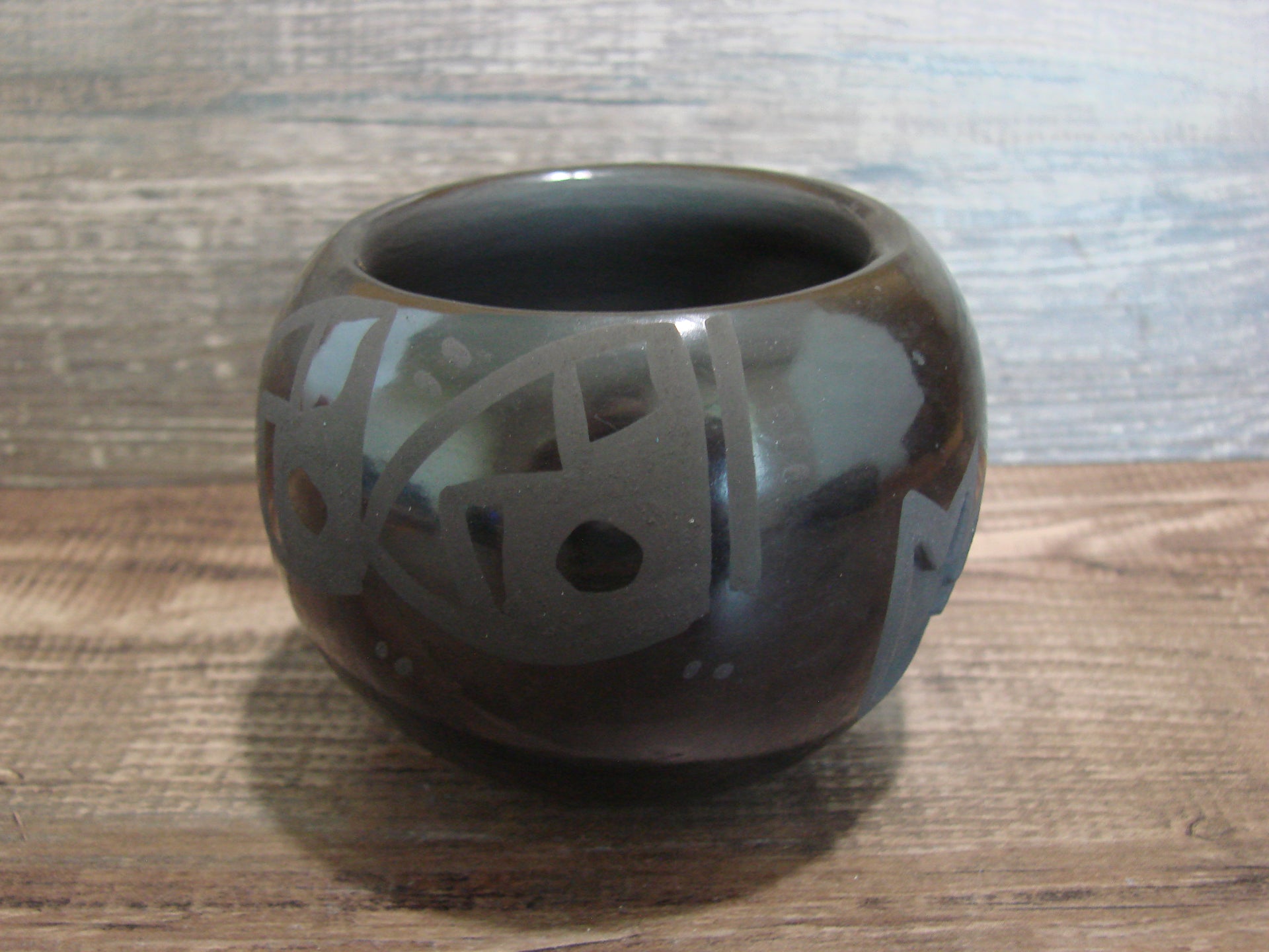 Native American Santa Clara Indian Hand Made Clay Pottery from Northern New Mexico. This Stunning piece of Pottery is Hand Coiled and Hand Made to perfecttion! This small piece is handmade with Santa Clara Clay. Handmade by Birdell Vine Flower. Signed on the bottom. Free shipping included!