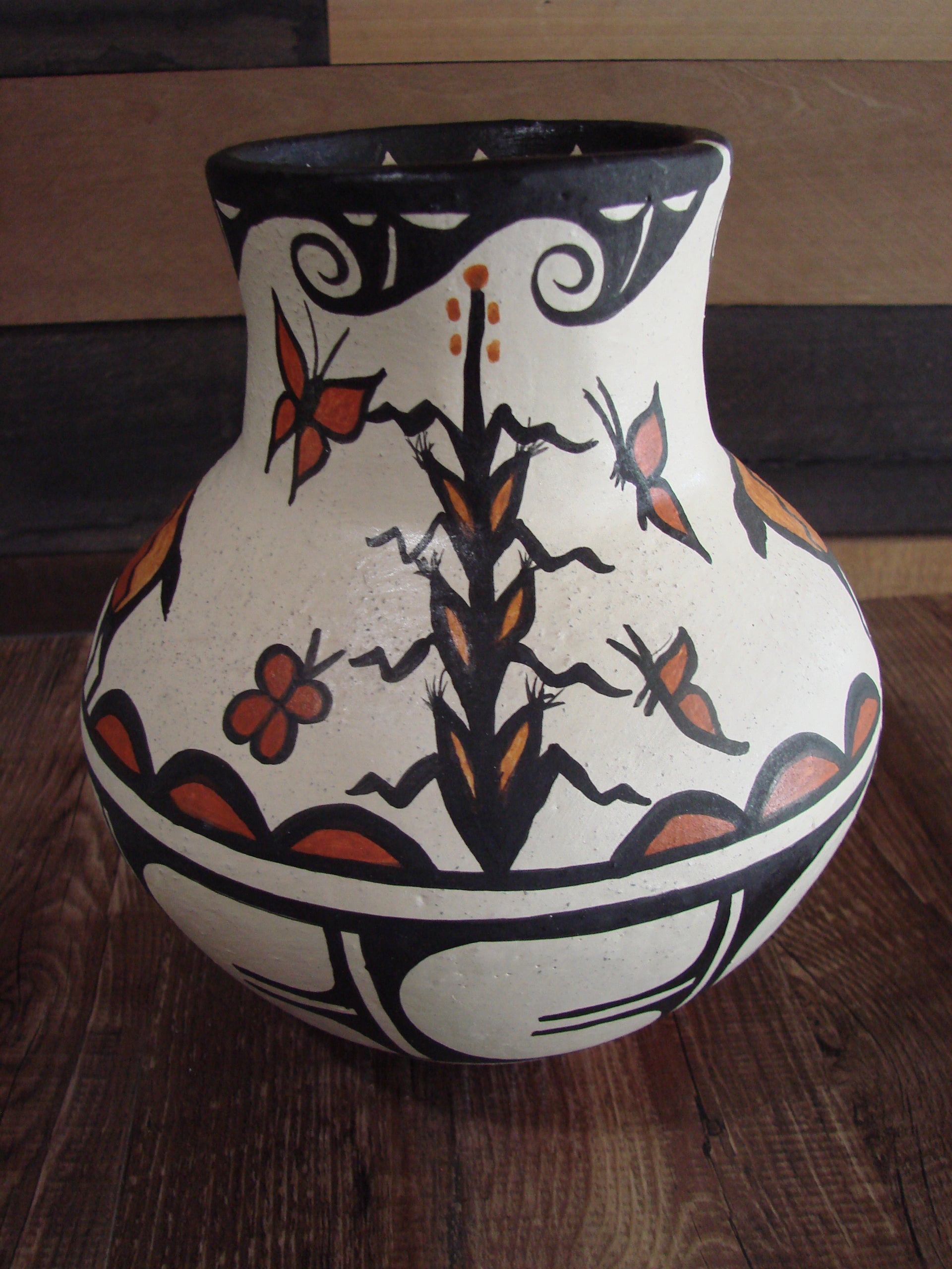 Genuine Native American Santo Domingo Pueblo Indian Handmade Clay Pottery from Northern New Mexico. This Stunning piece of Pottery features unique hand painting and detail throughout. The hand painting has a unique one of a kind look! This piece is handmade from Clay. Handmade by Santo Domingo artist Billy Veale. Signed on the bottom. Free Shipping included!