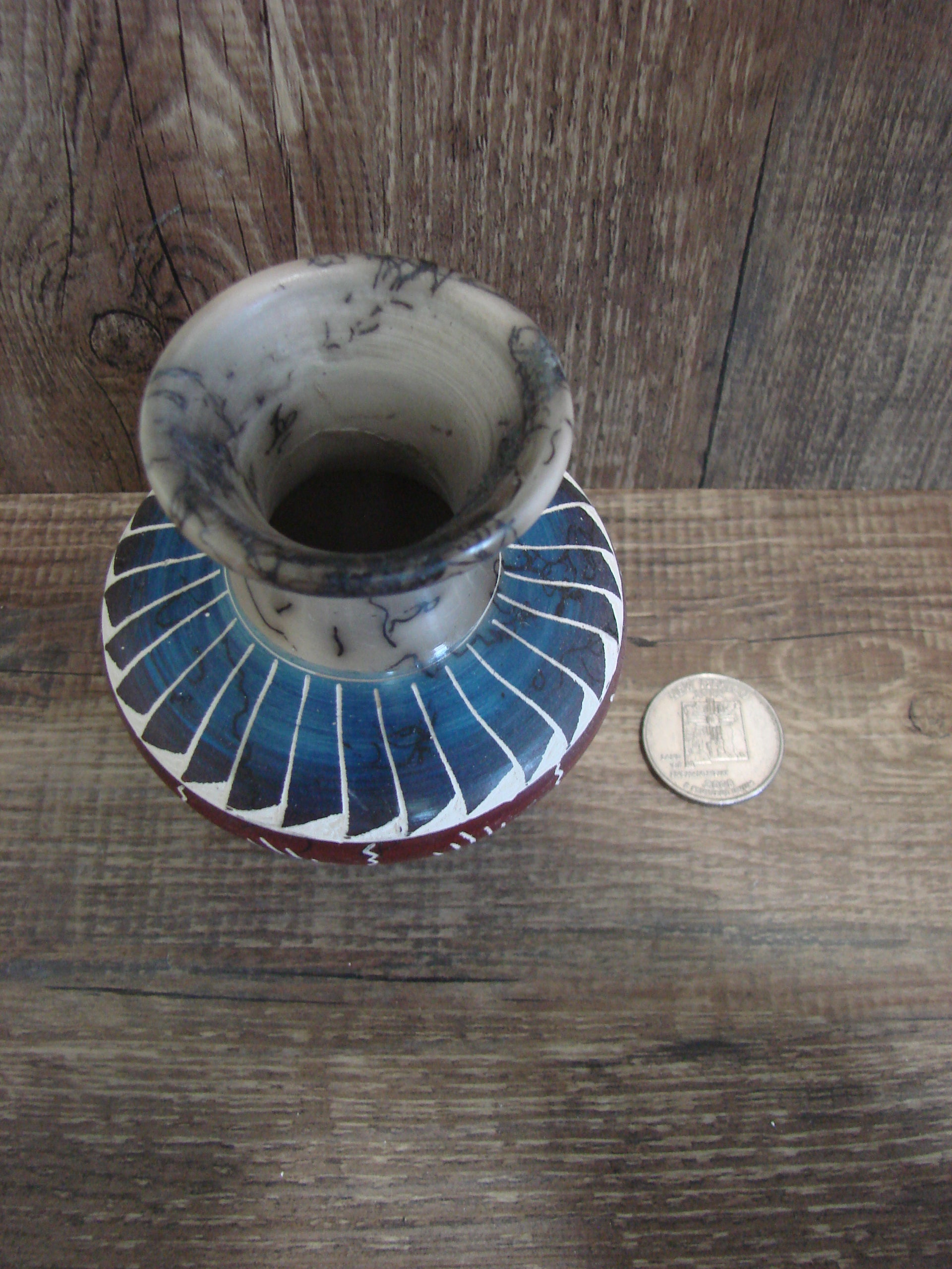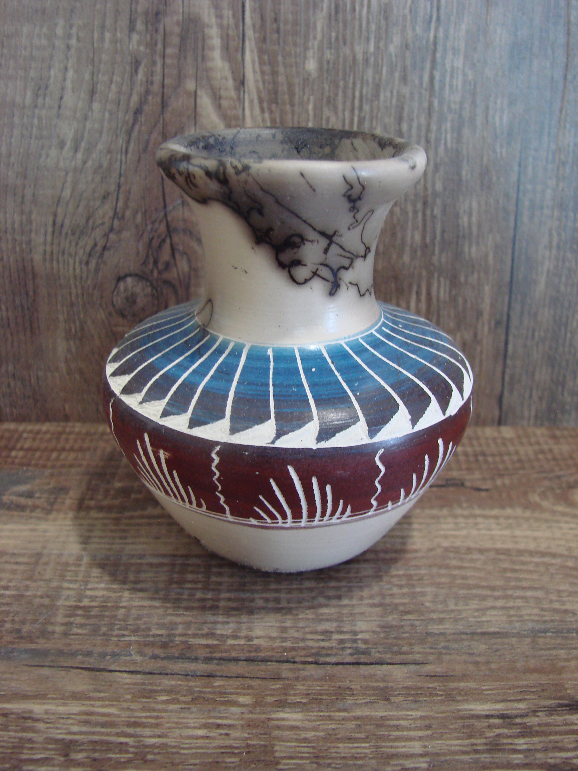 Small Native American Hand Etched Horse Hair Pottery - Benally