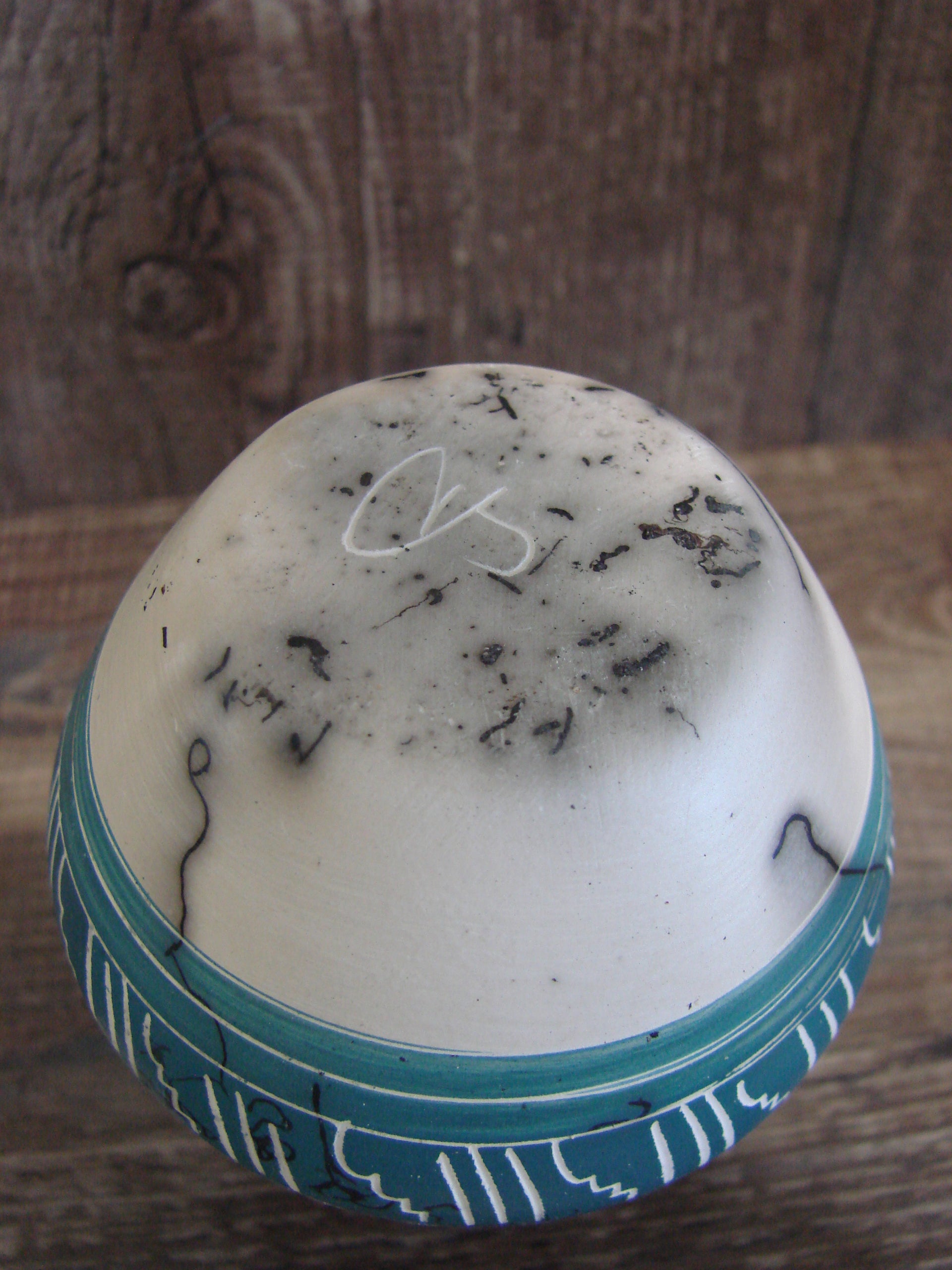 Small Native American Hand Etched Horse Hair Pottery - Benally