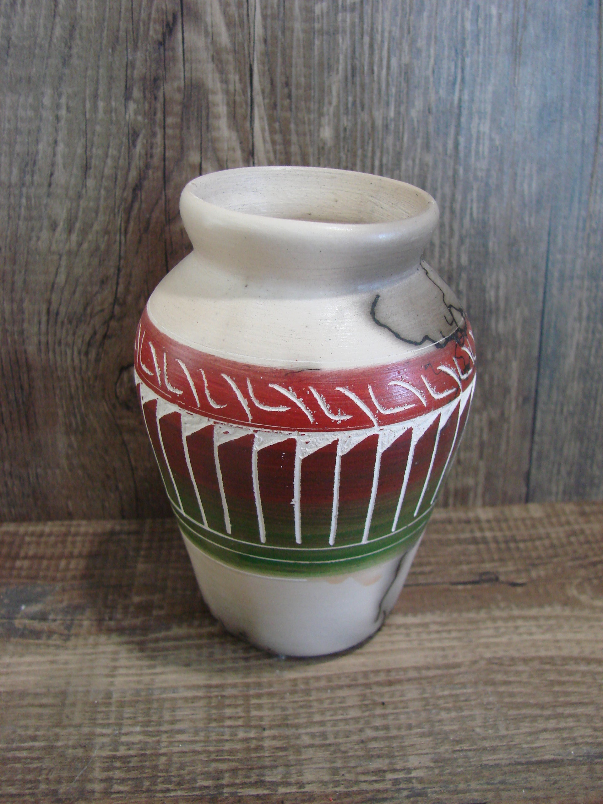 Small Native American Hand Etched Horse Hair Pottery - Benally