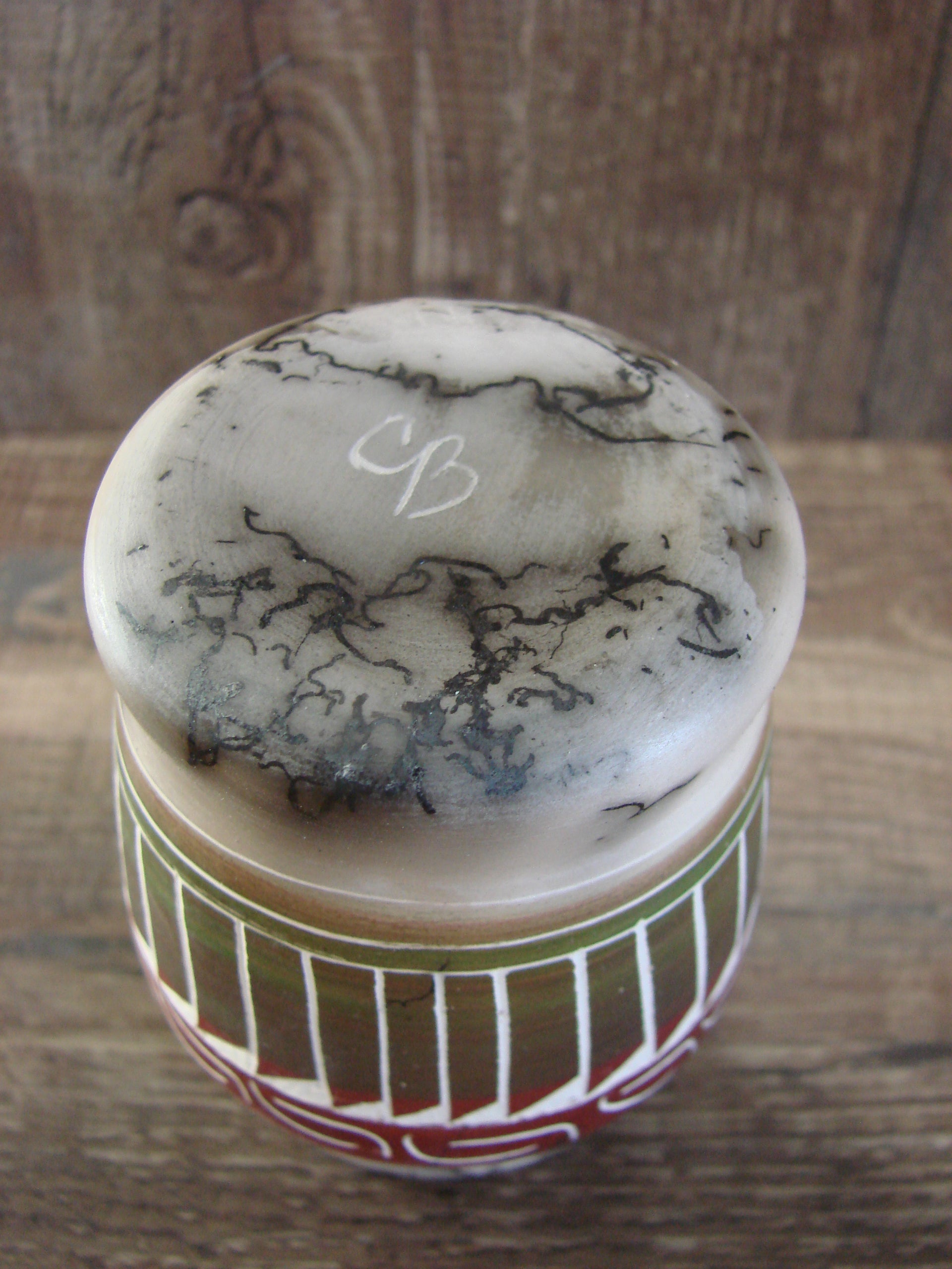 Small Native American Hand Etched Horse Hair Pottery - Benally