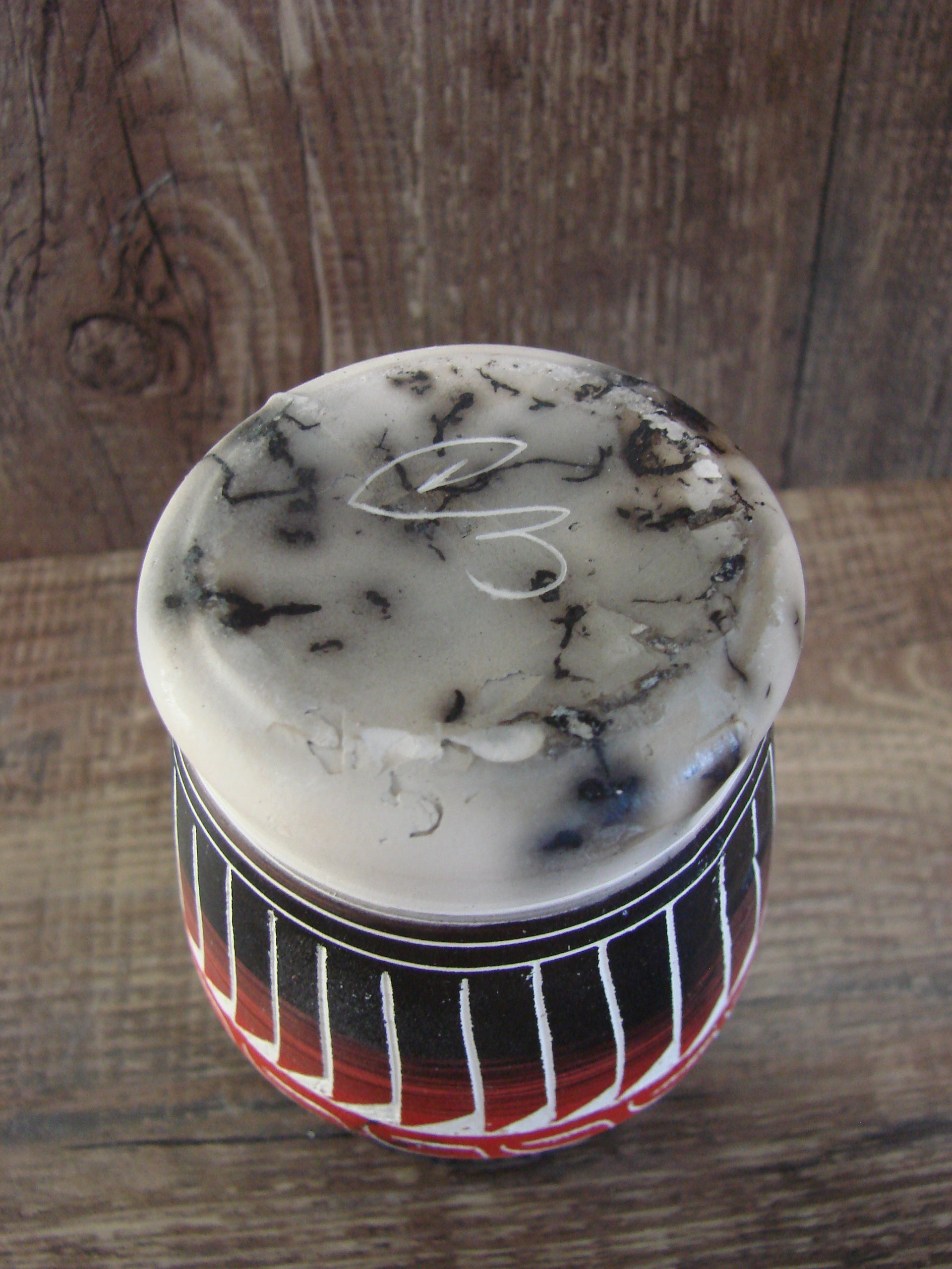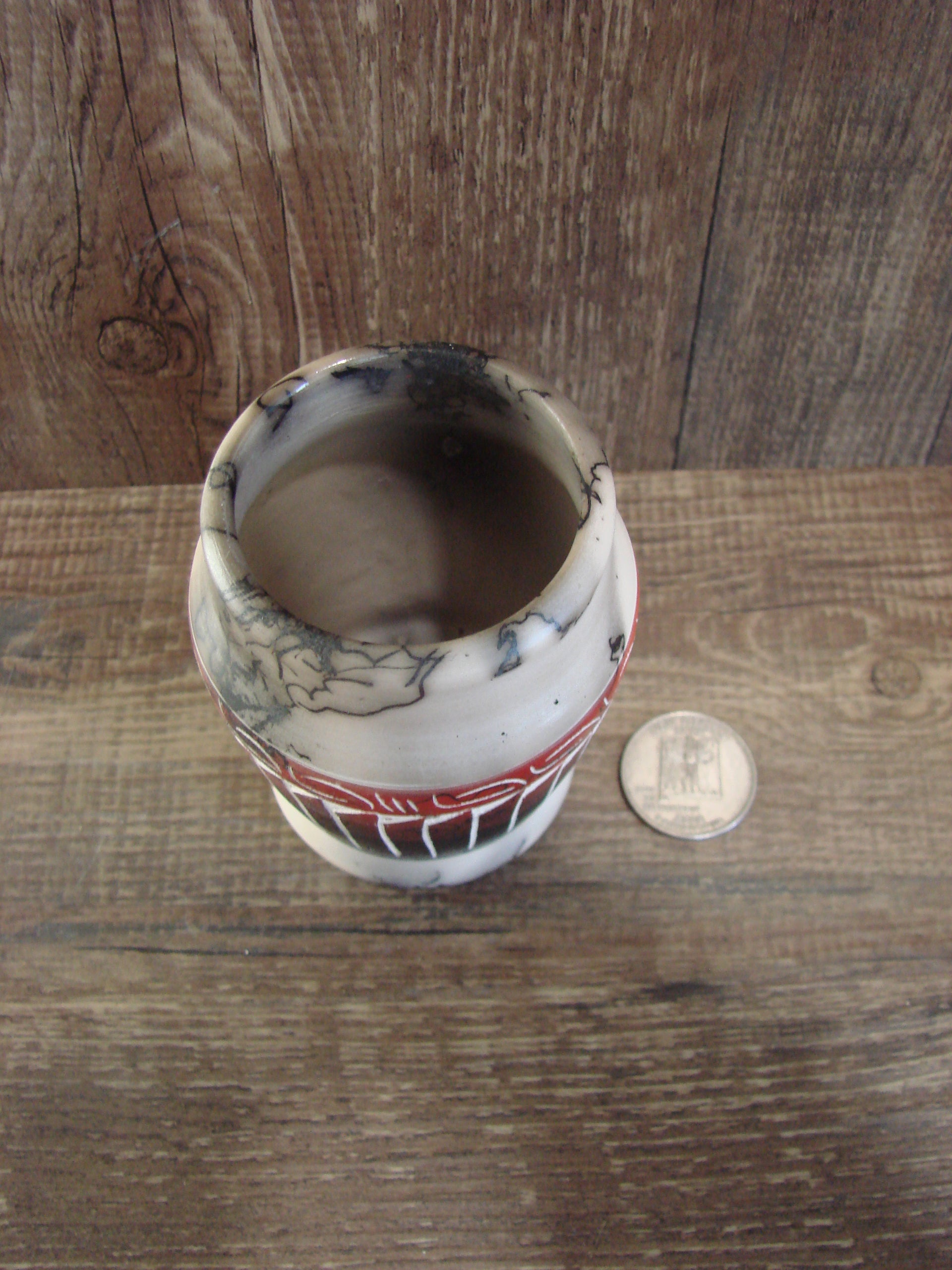 Small Native American Hand Etched Horse Hair Pottery - Benally