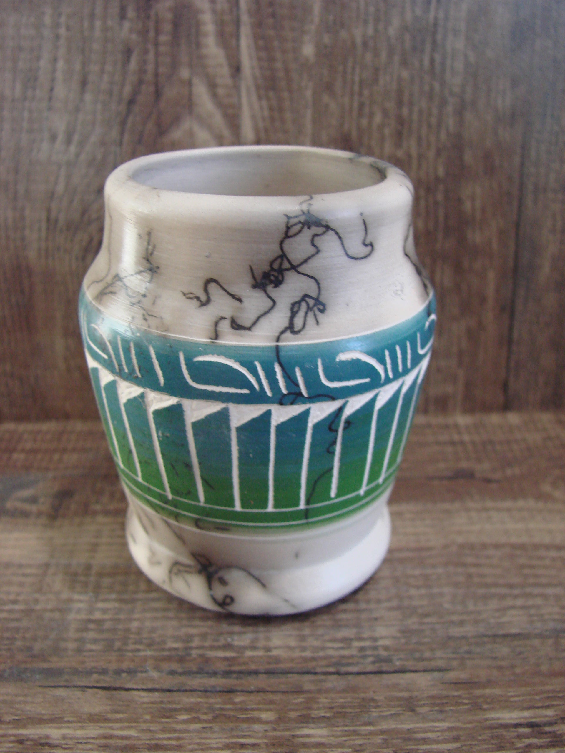 Small Native American Hand Etched Horse Hair Pottery - Benally