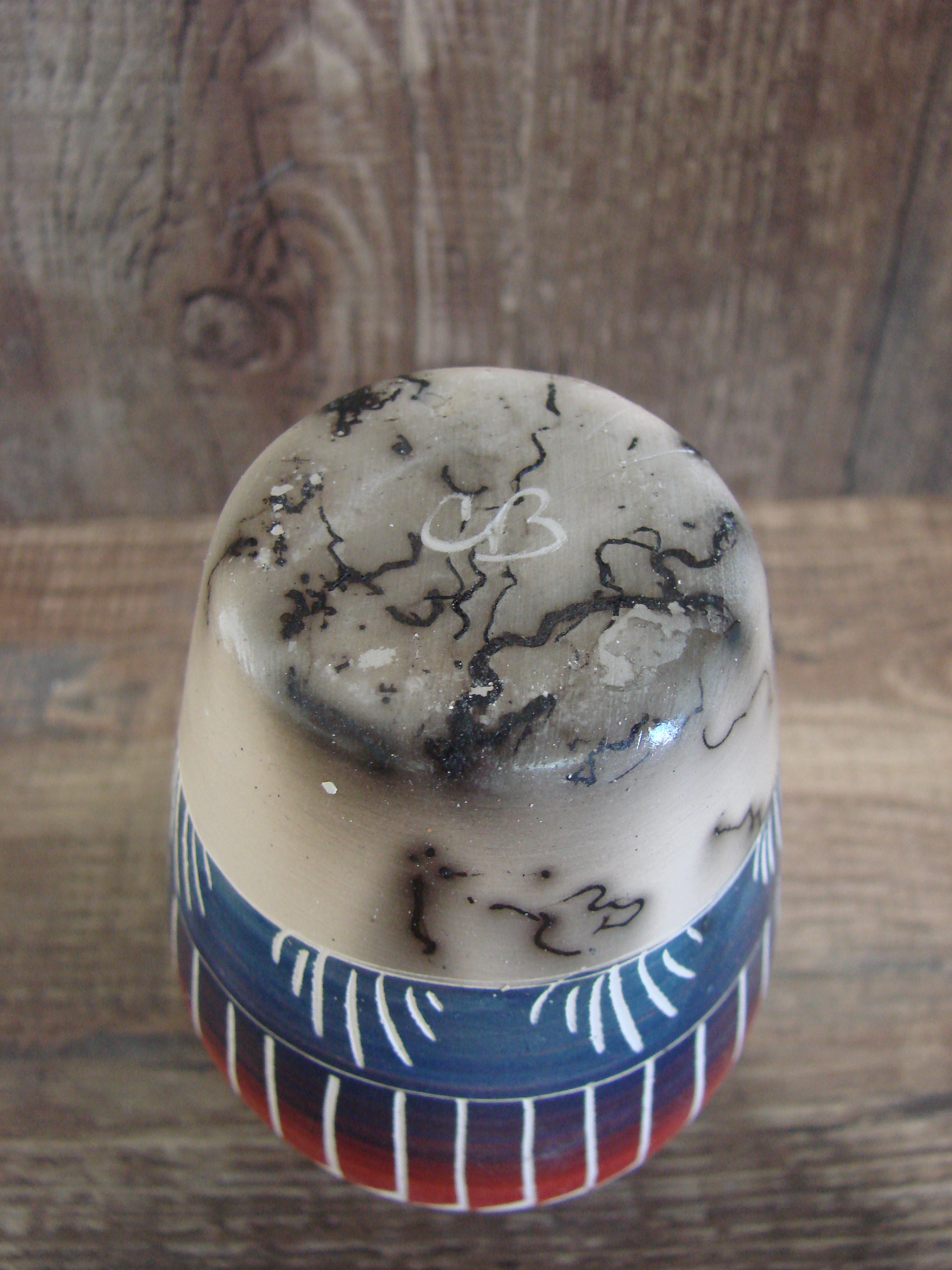 Small Genuine Native American Navajo Indian Hand Etched and Hand Painted Horse Hair Pottery Vase from Western New Mexico. This Small piece of pottery features stunning Hand Painted and traditional Hand Etched Navajo patterns throughout. Horse Hair is laid over this piece during firing to create a unique, one of a kind look! Hand etched and painted by Cecilia Benally. Signed "CB" on the bottom. Free shipping included!
