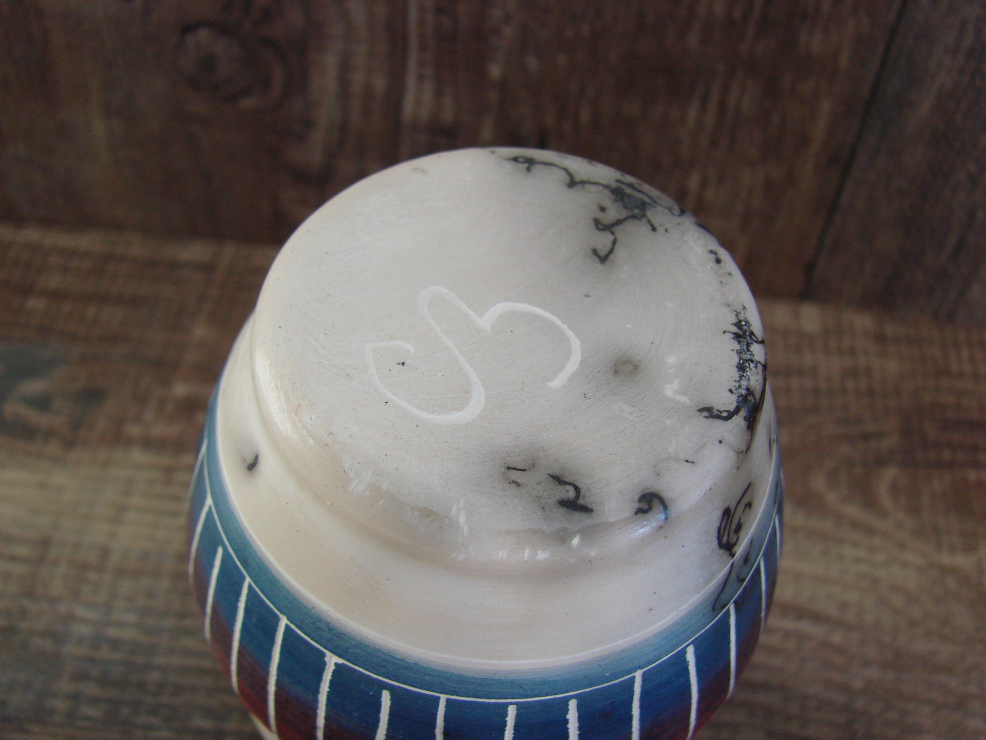 Small Native American Hand Etched Horse Hair Pottery - Benally
