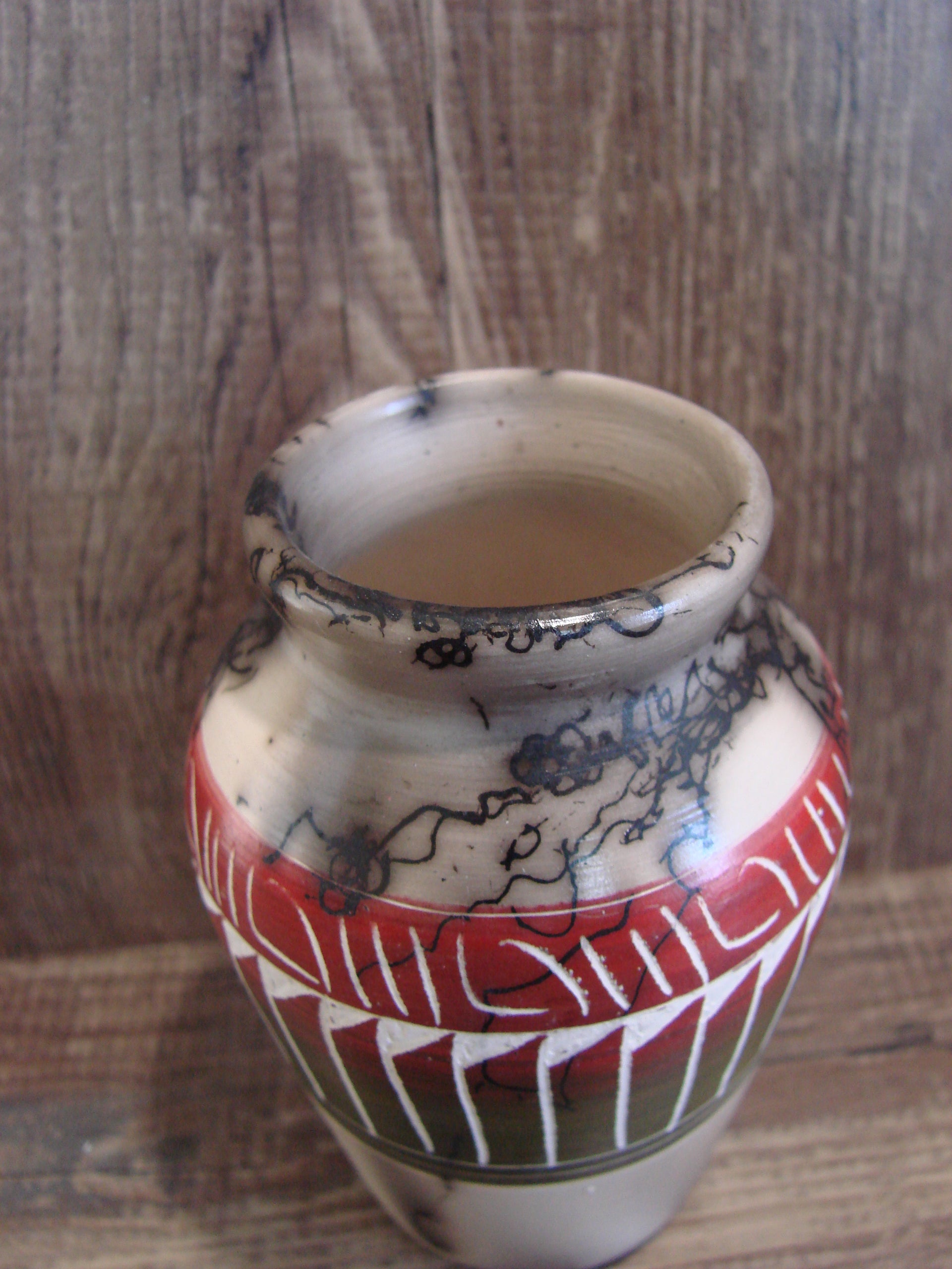 Small Native American Hand Etched Horse Hair Pottery - Benally