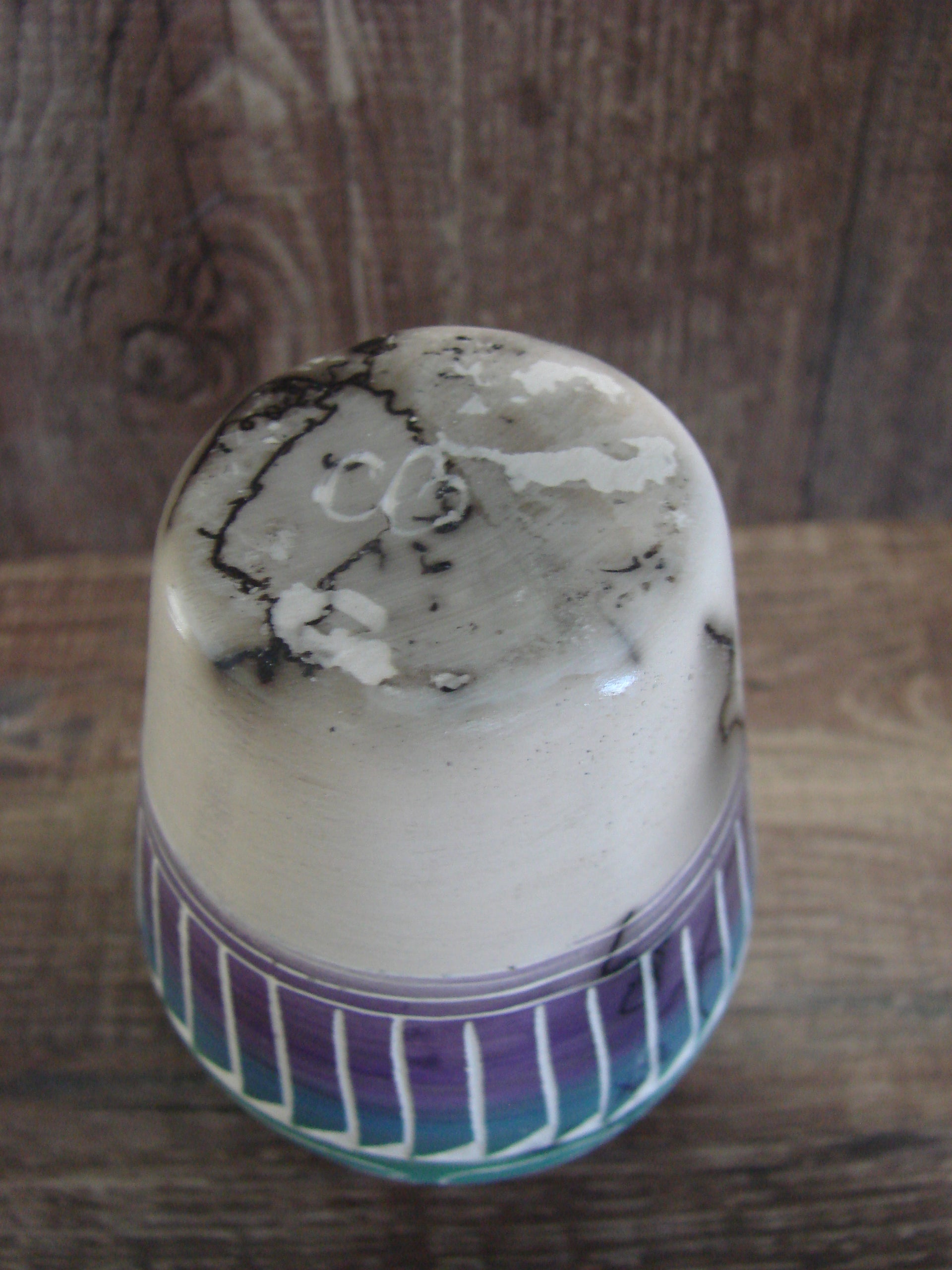 Small Native American Hand Etched Horse Hair Pottery - Benally