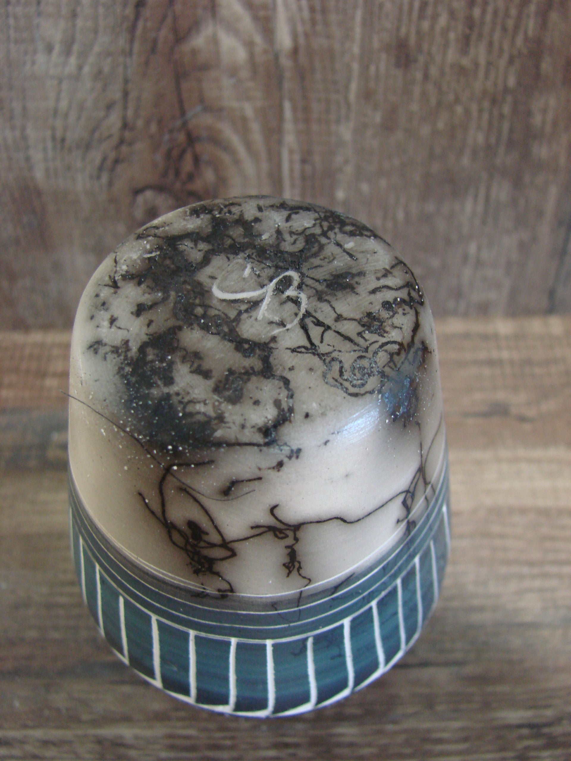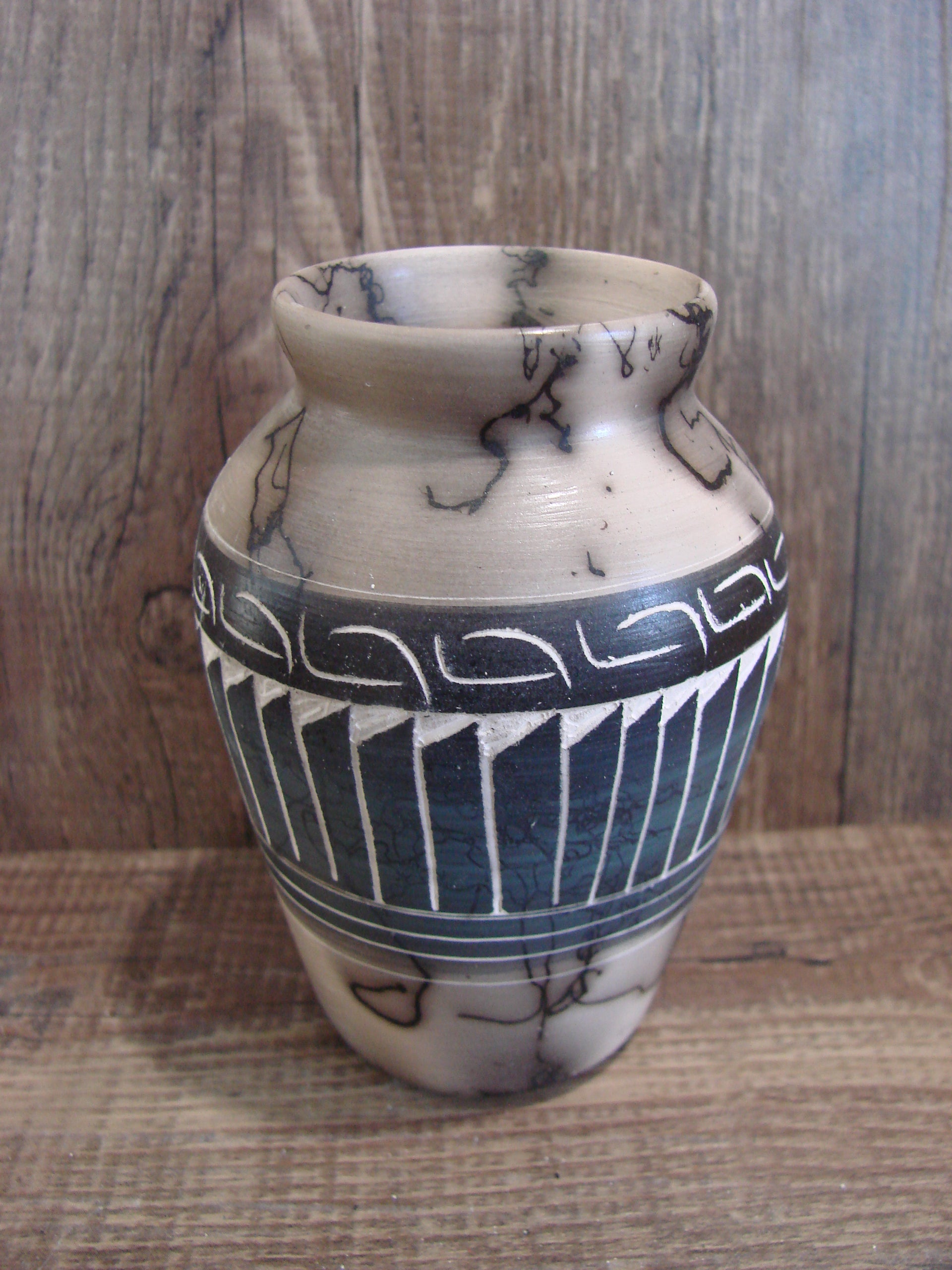 Small Native American Hand Etched Horse Hair Pottery - Benally