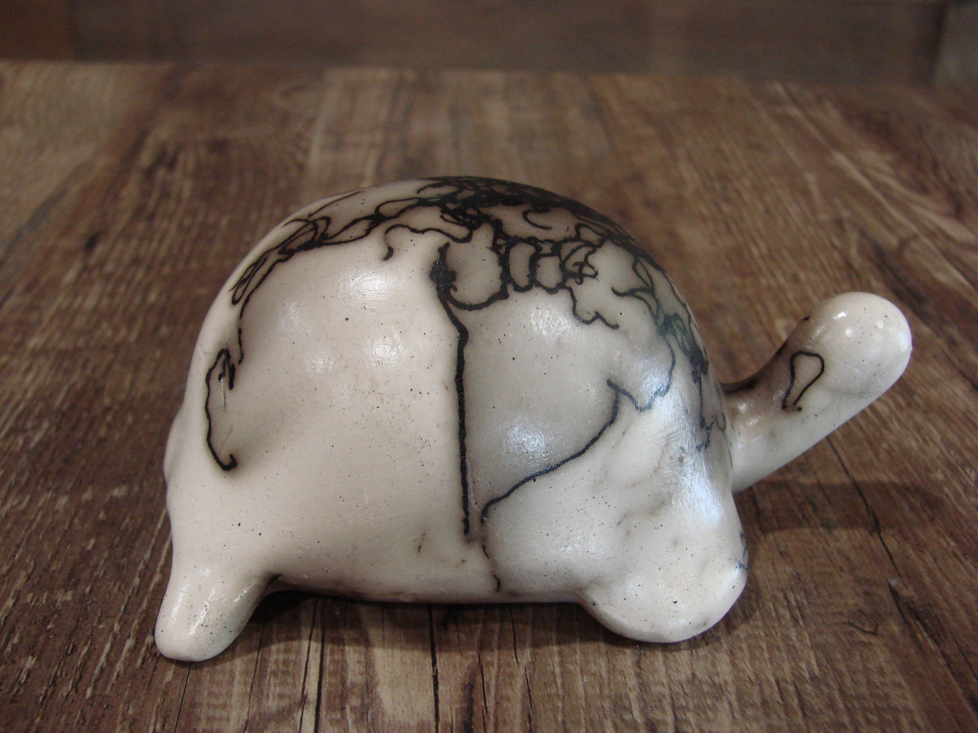 Small Native American Horse Hair Turtle Pottery Sculpture by Vail