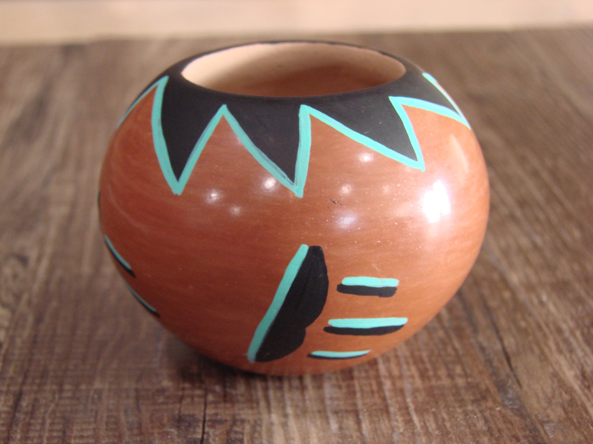 Genuine Native American Jemez Indian Hand Coiled and Hand Painted Clay Pottery from Northern New Mexico. This Stunning Pottery is beautifully Hand Coiled and Hand Made to perfection! This small piece is handmade with Jemez Clay. Handmade by L. Yepa. Signed on the bottom. Free shipping included!