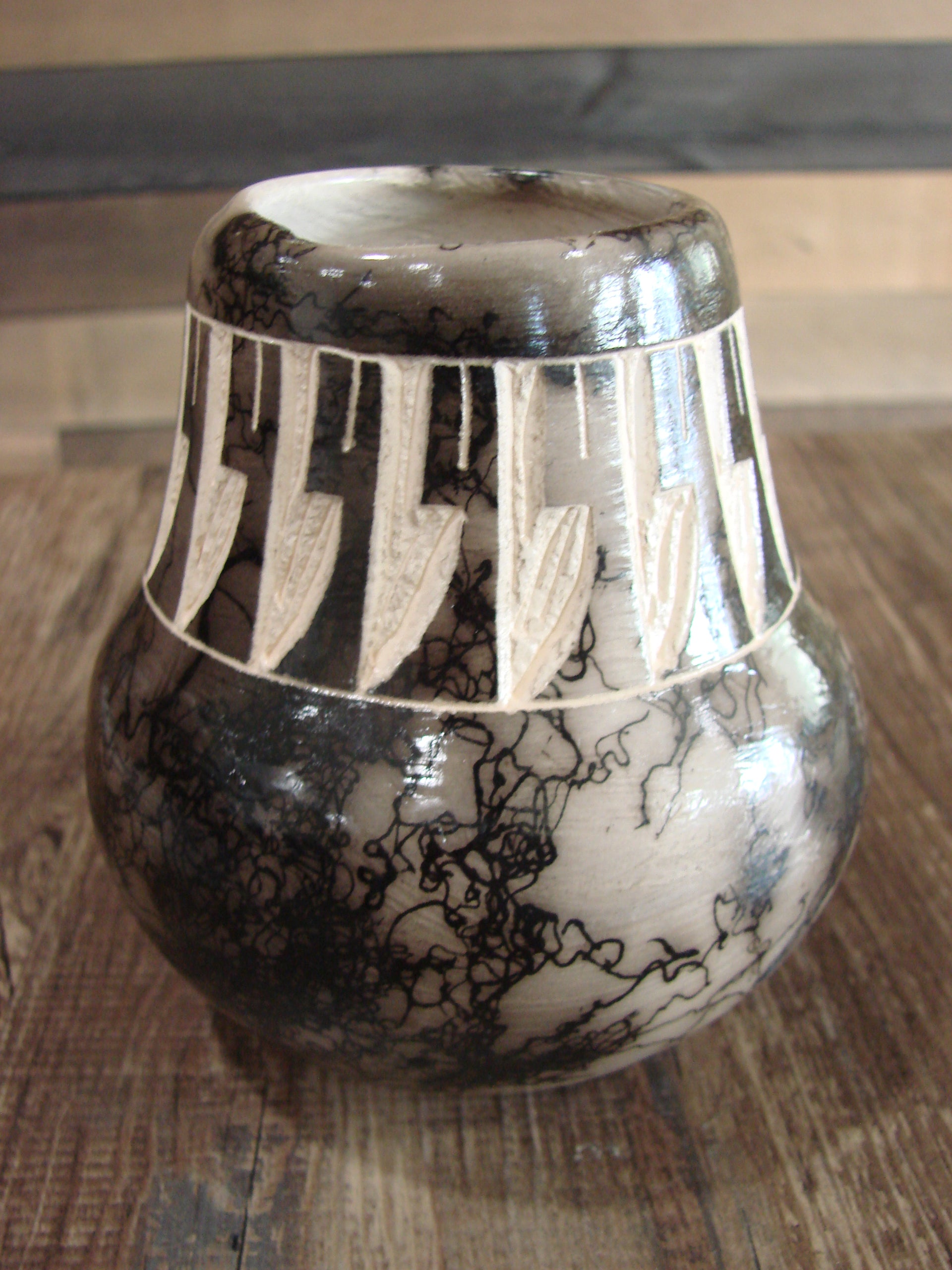 Small Native American Navajo Indian Horse Hair Pottery by Vail